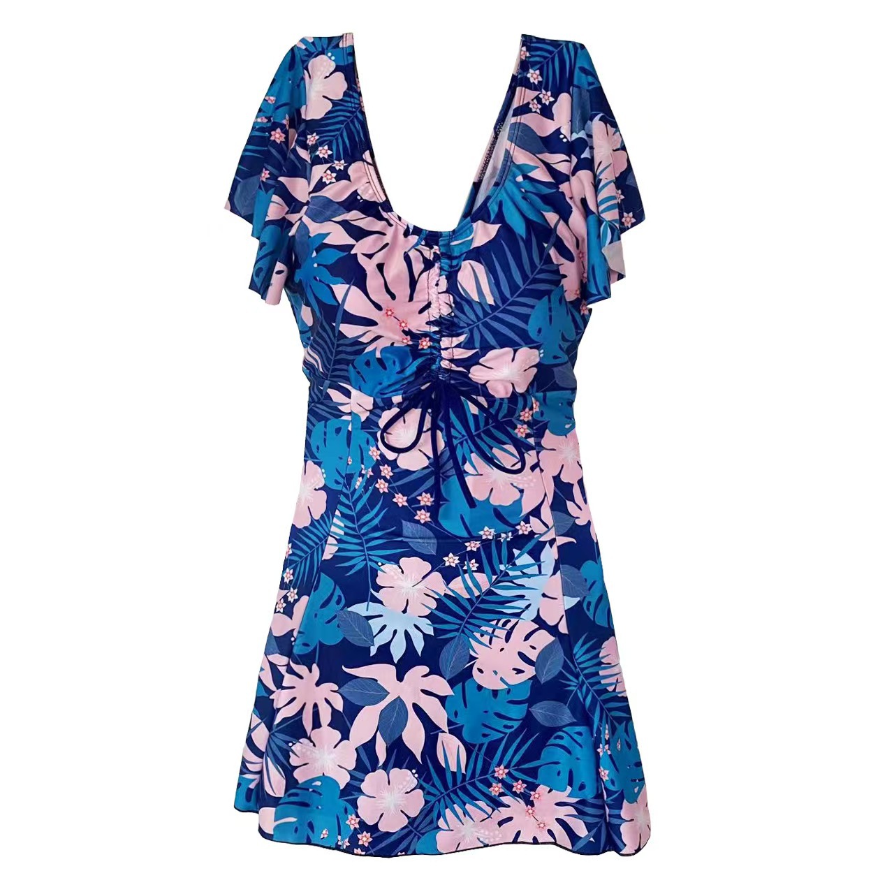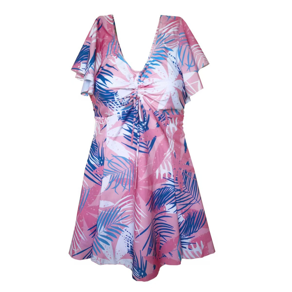 여성용 수영복 플러스 사이즈 중년 어머니 스타일 원피스 보수적이고 세련된 프린트 배 커버 슬리밍 수영복 뚱뚱한 소녀 도매스토어 가기