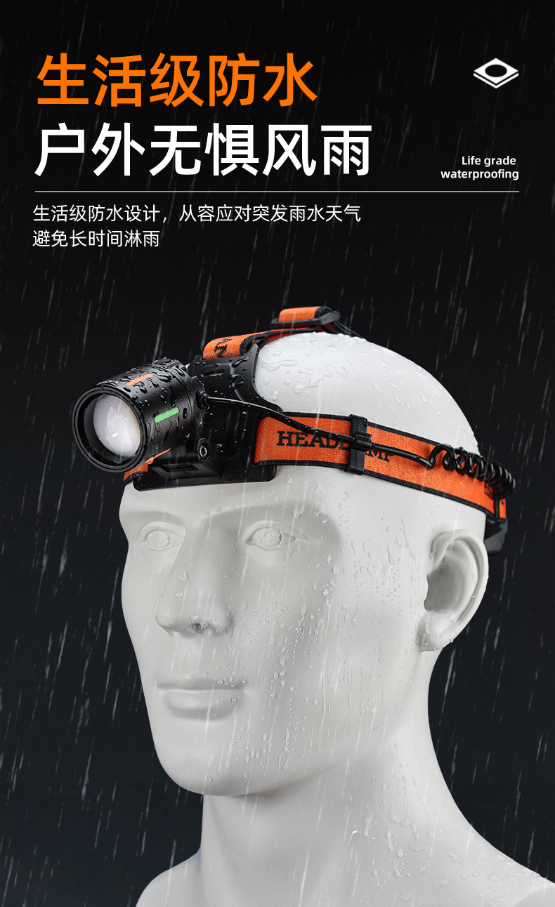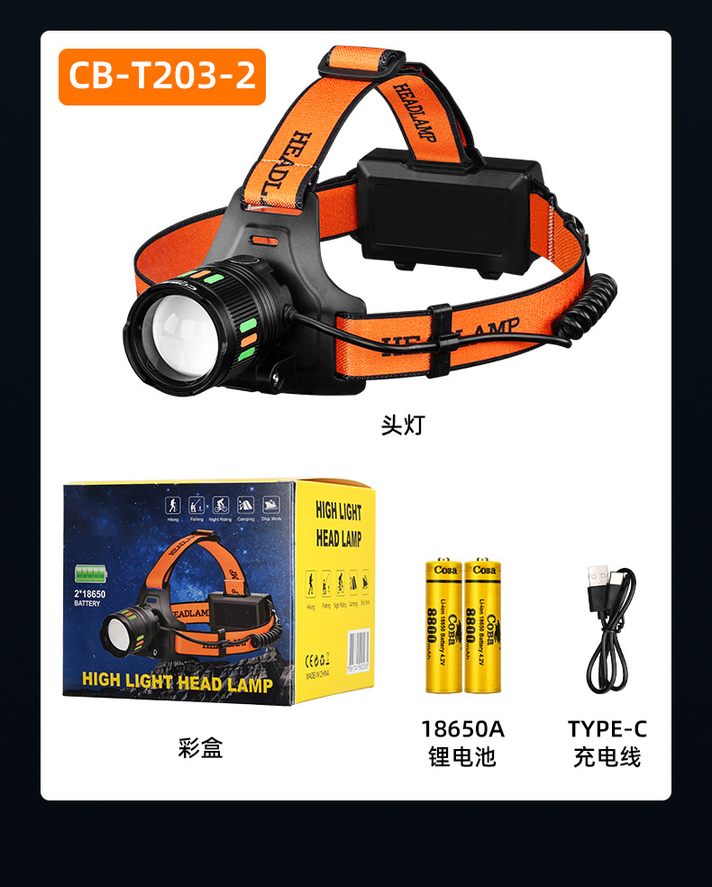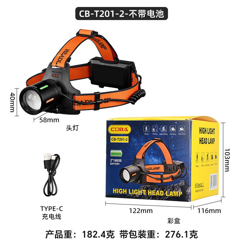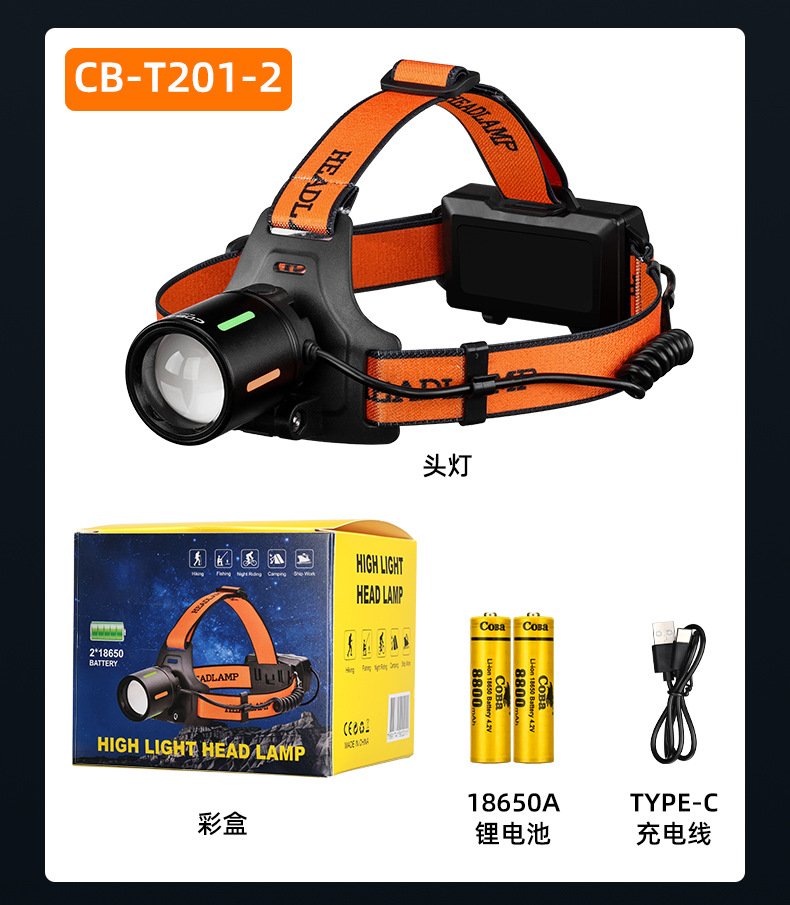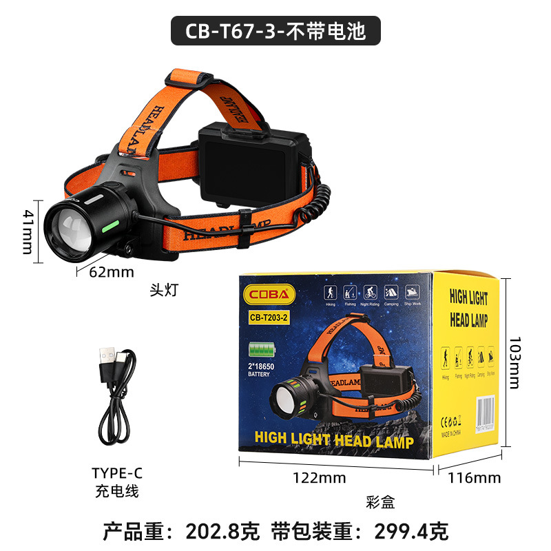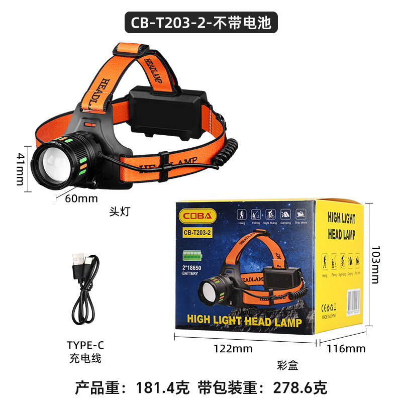 야외 알루미늄 합금 고출력 광부의 램프, 밝은 장거리 리튬 배터리 줌 낚시 및 사이클링 서치라이트, 헤드 장착형 헤드라이트