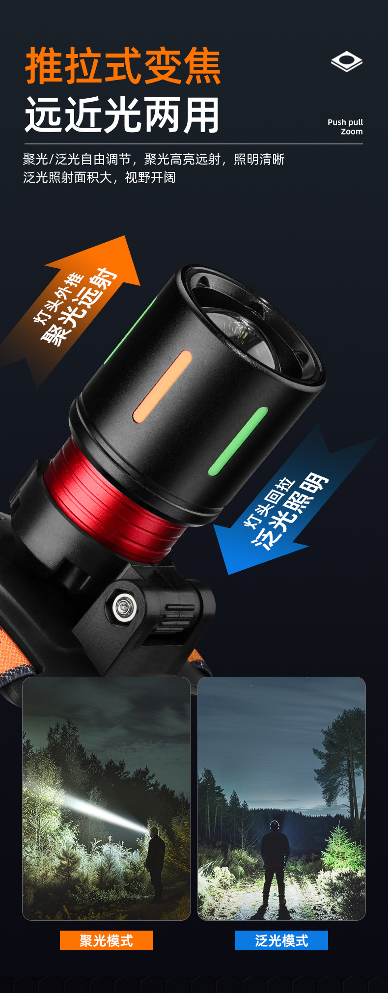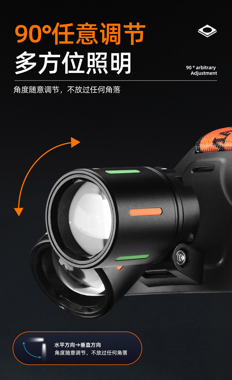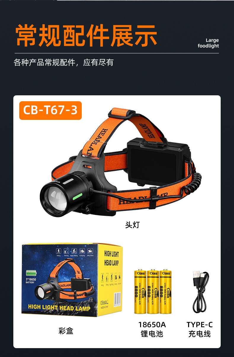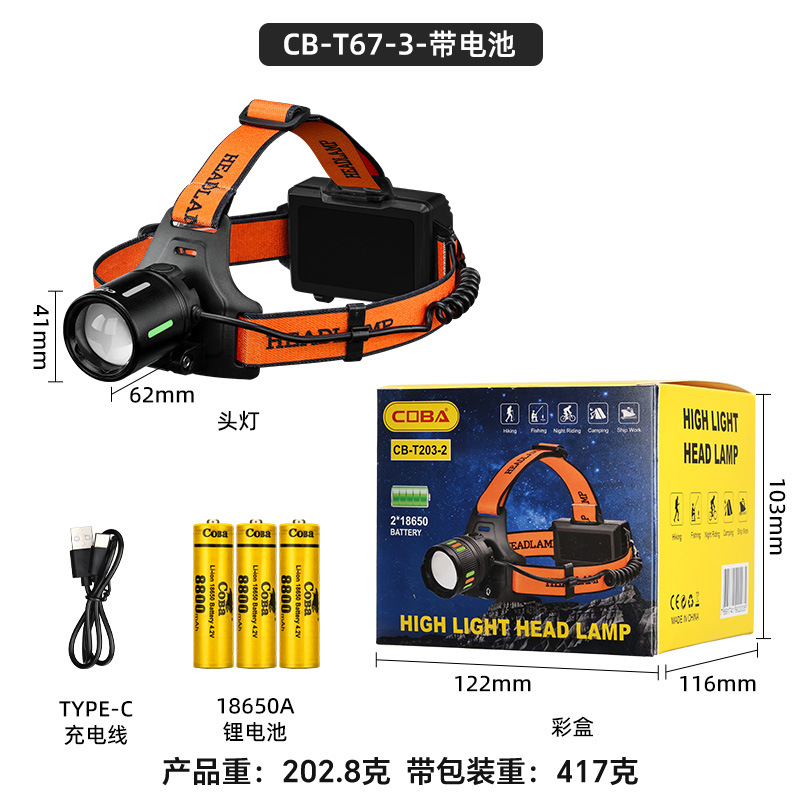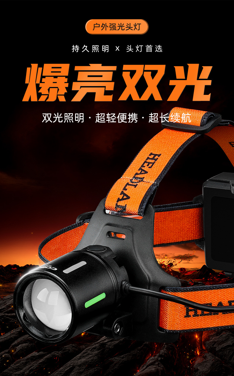 야외 알루미늄 합금 고출력 광부의 램프, 밝은 장거리 리튬 배터리 줌 낚시 및 사이클링 서치라이트, 헤드 장착형 헤드라이트