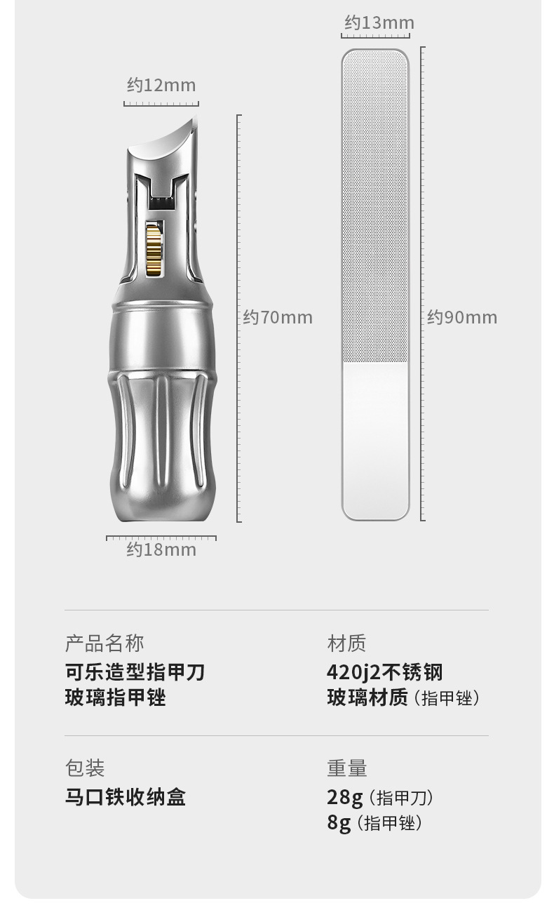 • 콜라병 경사 손톱깎이 + 유리줄 [철상자 2개 세트]