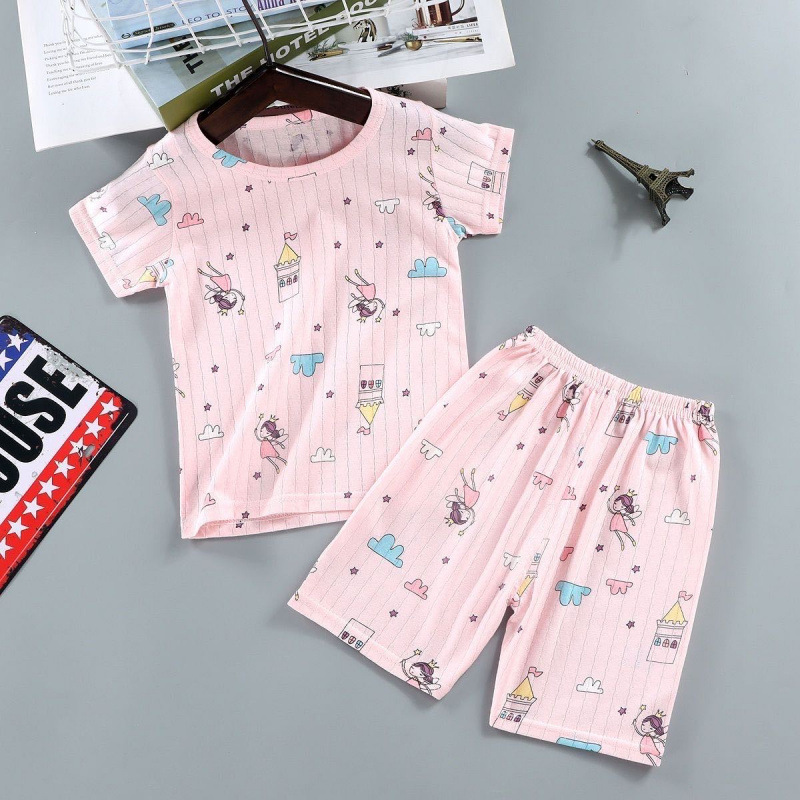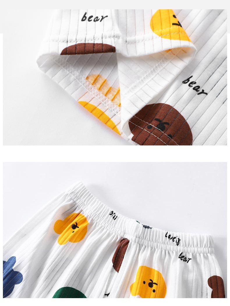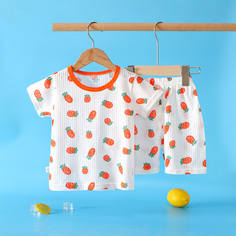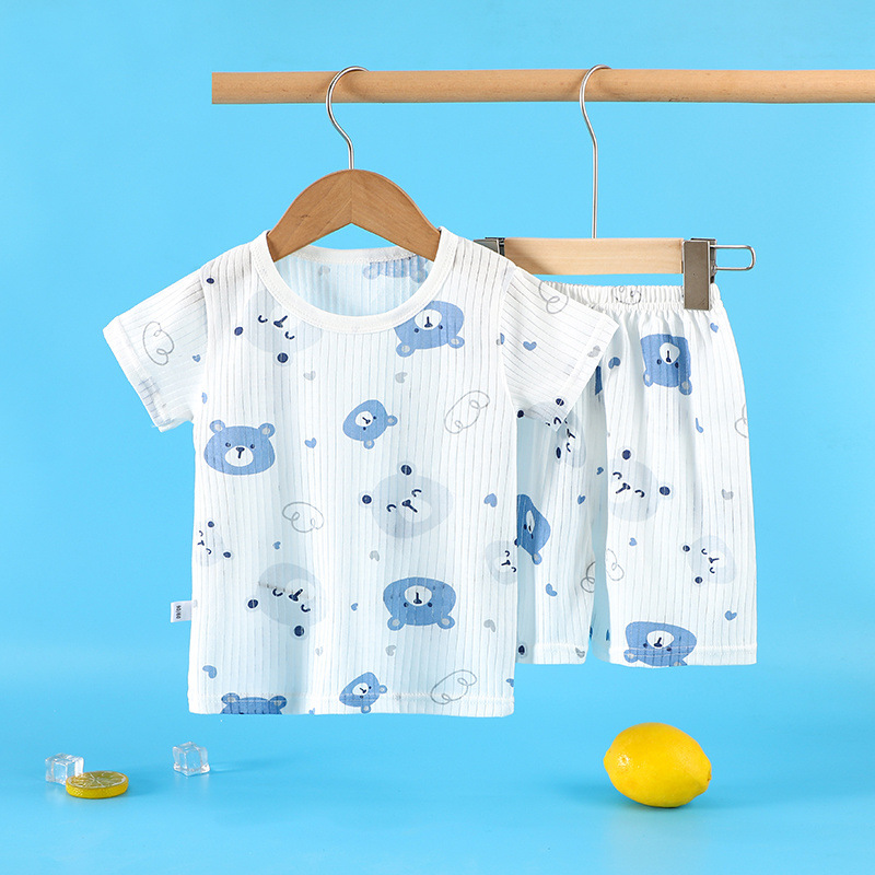 여름 어린이 순면 잠옷 반팔 양복 얇은 티셔츠 소년과 소녀 반바지 가정 의류 아기 에어컨 옷 6