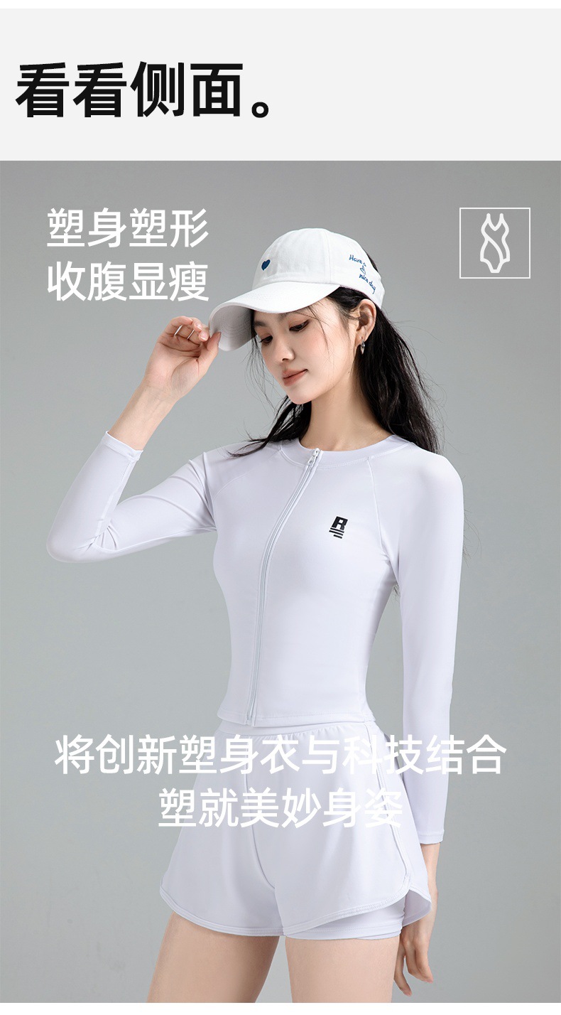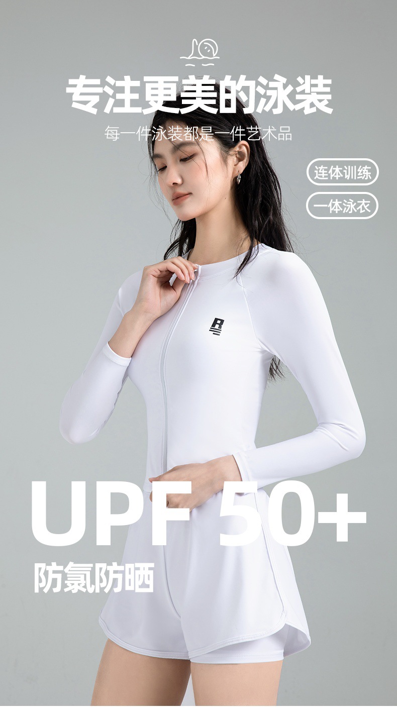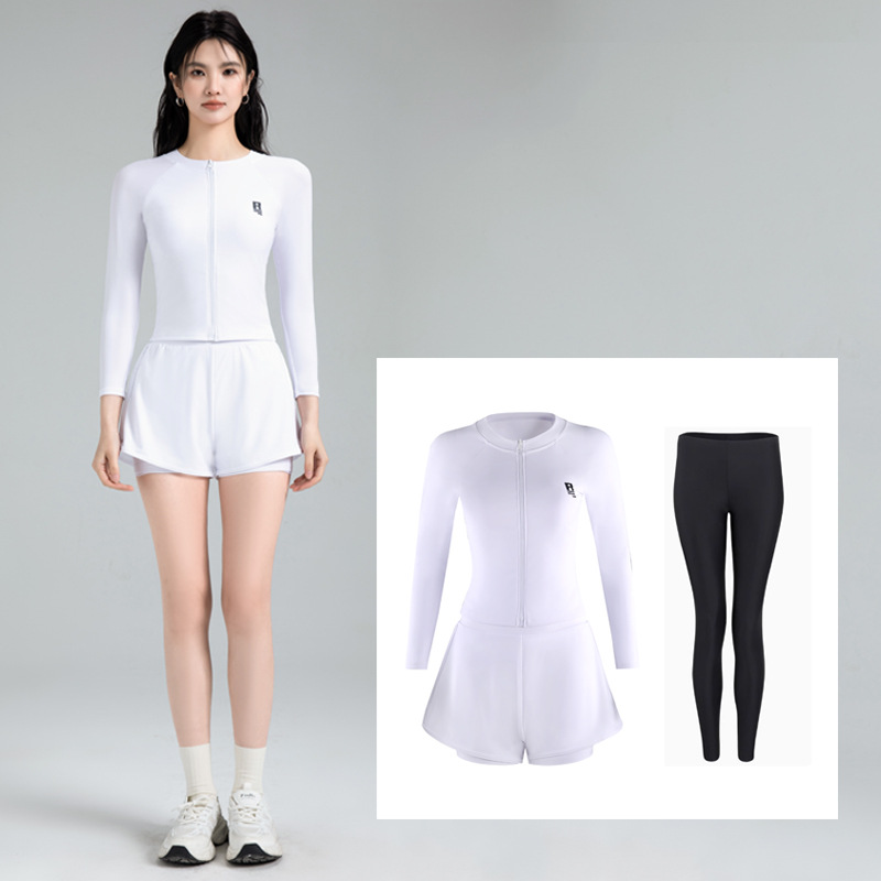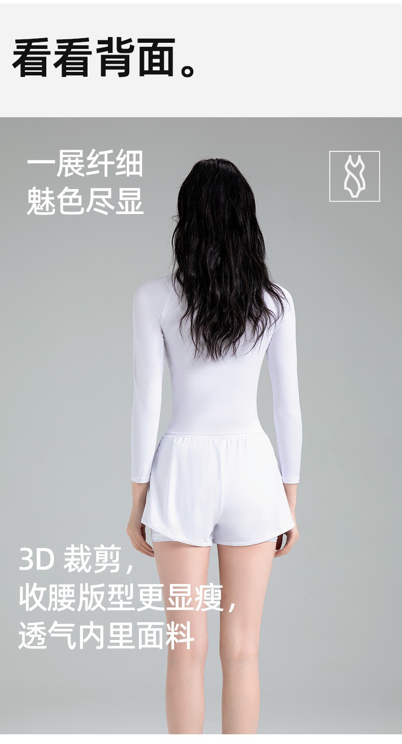 한국 신작 수영복 여성용 흰색 스플릿 긴팔 자외선 차단제 속건성 스노클링 서핑 슈트 해파리 수영복 수영복 복서 팬티