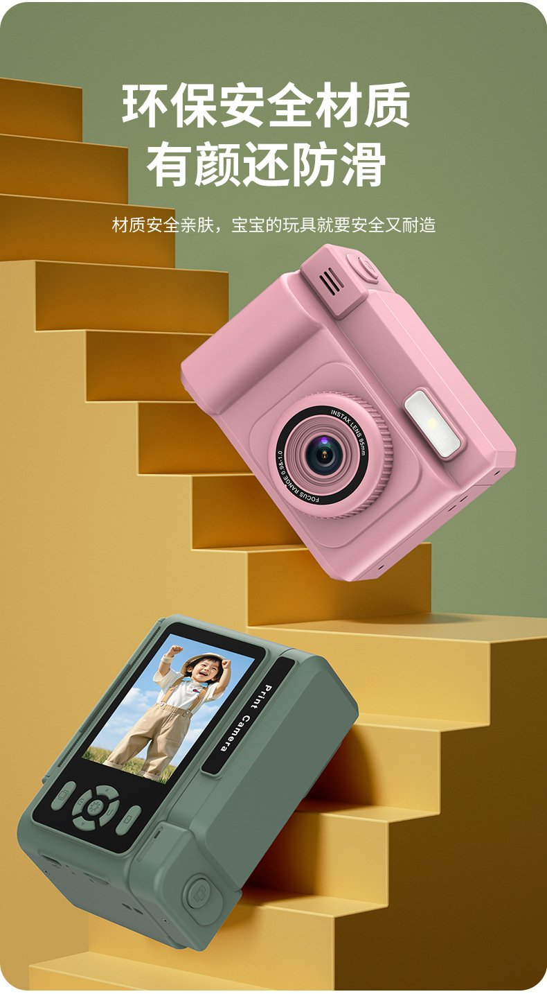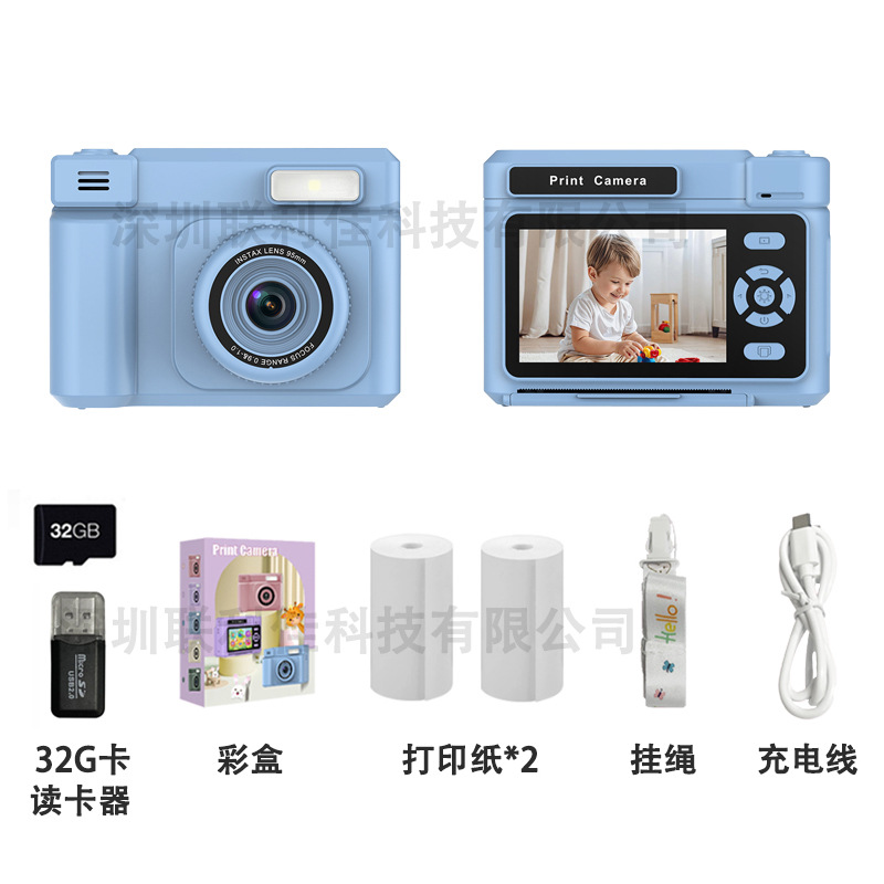 신제품 국경 간 어린이 폴라로이드 카메라 반 컬러 인쇄 사진 및 비디오 ccd 고가 어린이 만화 카메라
