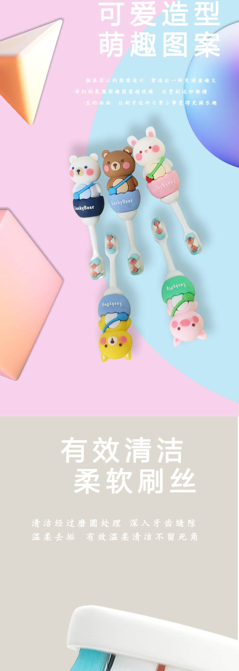 어린이 칫솔 부드러운 모발 작은 머리 개별 포장 동물 칫솔 팬더 돼지 토끼 짧은 만화 칫솔