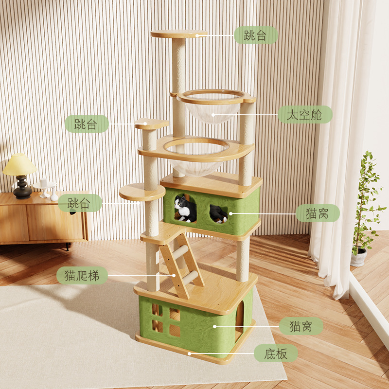 Weilai 고양이 클라이밍 프레임, 고양이 둥지, 고양이 트리, 일체형 우주 캡슐, 트랜스포머, 가정용 사이잘 고양이 클라이밍 프레임, 공간 절약형, 소형스토어 가기