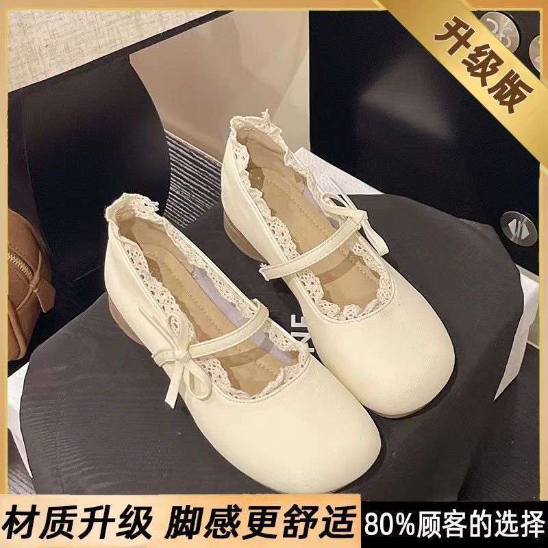 프랑스 스타일 메리 제인 신발 여성의 2025 봄과 가을 새로운 부드러운 우아한 치마 신발 두꺼운 힐링 얕은 여성 신발