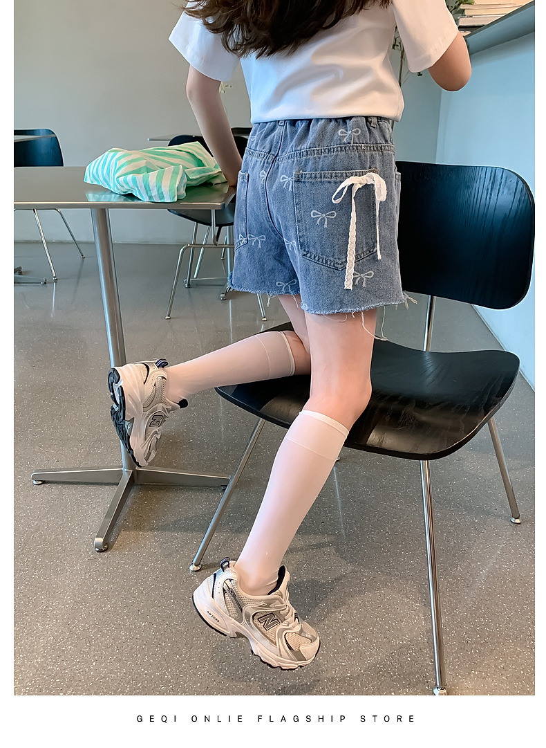 여아 데님 반바지 2025 새로운 여름 여아 중대형 아동복 서양식 바지 얇은 겉옷 도매스토어 가기