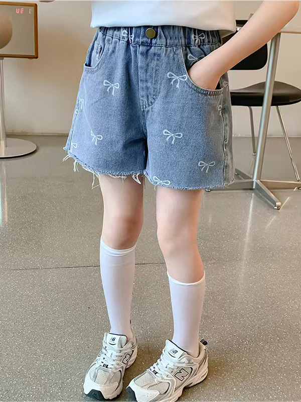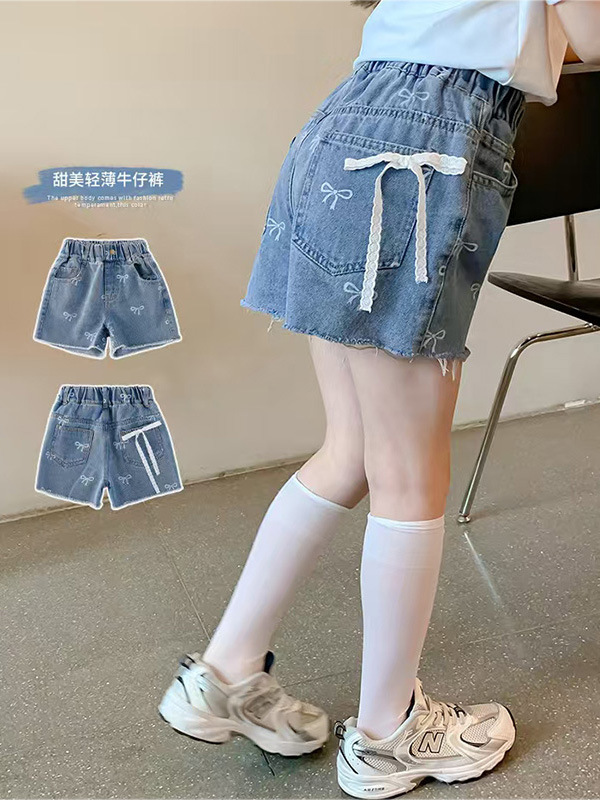 여아 데님 반바지 2025 새로운 여름 여아 중대형 아동복 서양식 바지 얇은 겉옷 도매