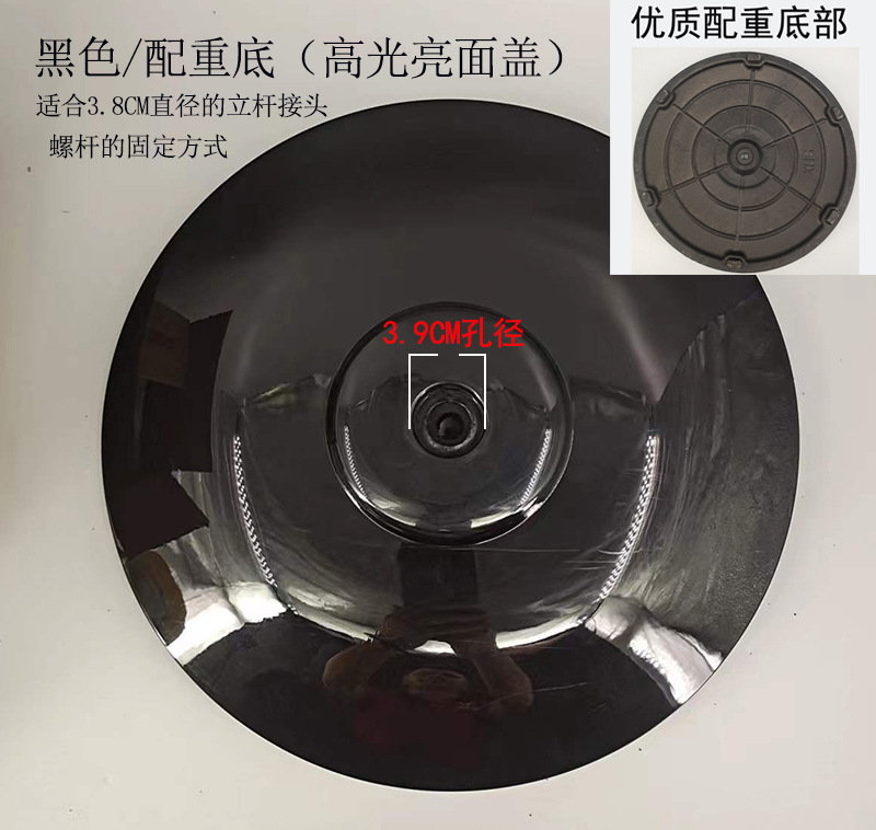 • 고품질] 검정색/둥근 무게 바닥 + 폴 25mm, 나사 및 와셔 포함