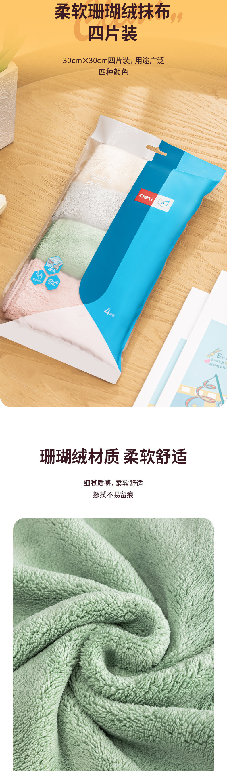 델리 LQ391 걸레 가정용 주방 극세사 수건 식기 세척용 천으로 테이블을 닦아 물을 많이 흡수하고 보풀이 잘 생기지 않습니다.스토어 가기