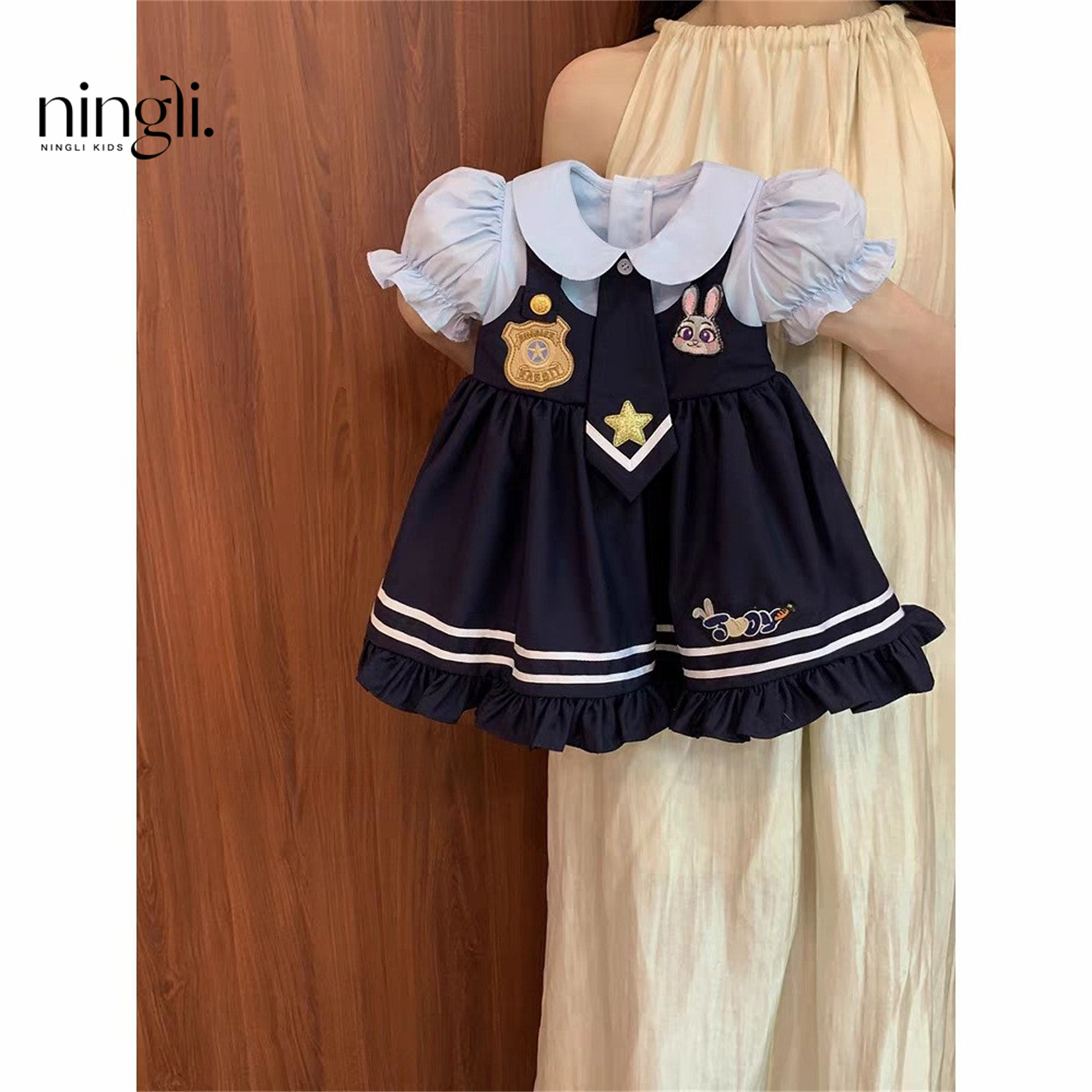 라임 소녀 로리타 공주 스커트 서양식 2025 새로운 여름 소녀 아기 토끼 경찰관 원피스 조수