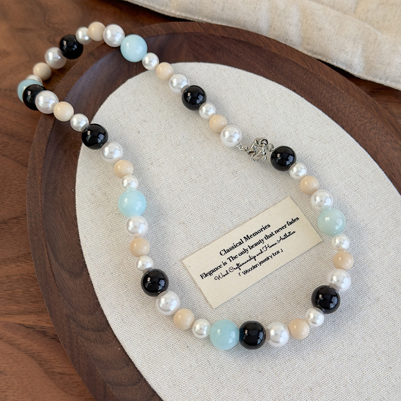 여성을 위한 아쿠아마린 진주 비즈 목걸이, 가벼운 럭셔리 틈새 시장, 고급 도파민 기질, 복고풍 목걸이
