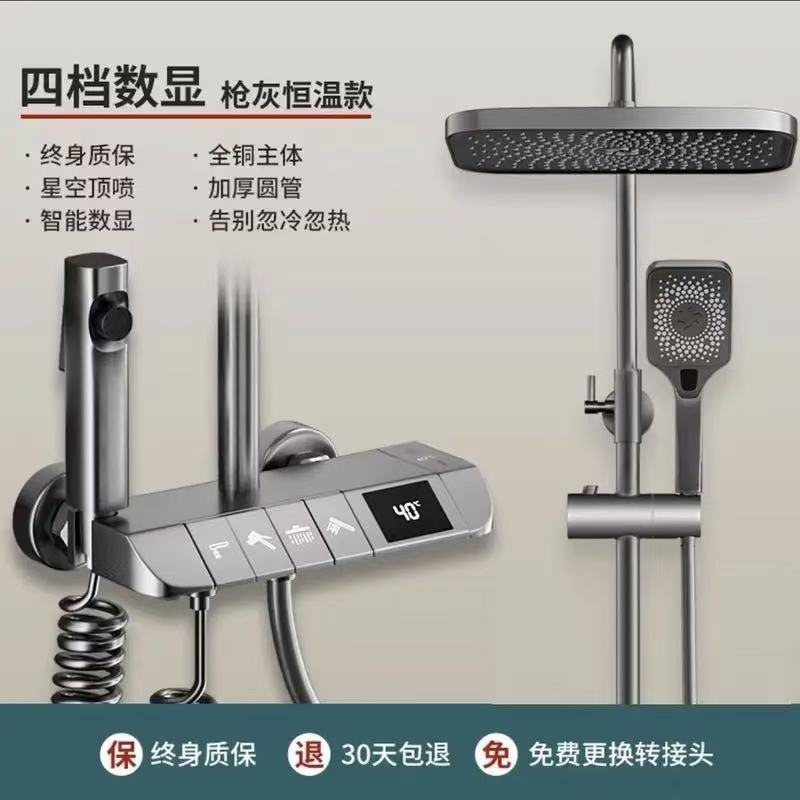 JMONWV 정품 구리 바디 샤워 키트 가정용 샤워기 항온 욕실 리프팅 욕실 피아노 키