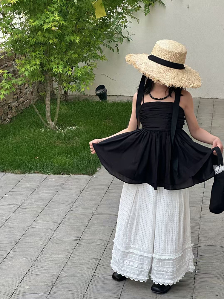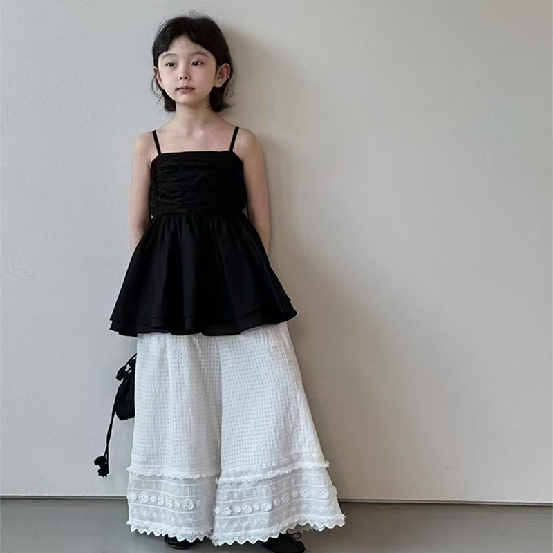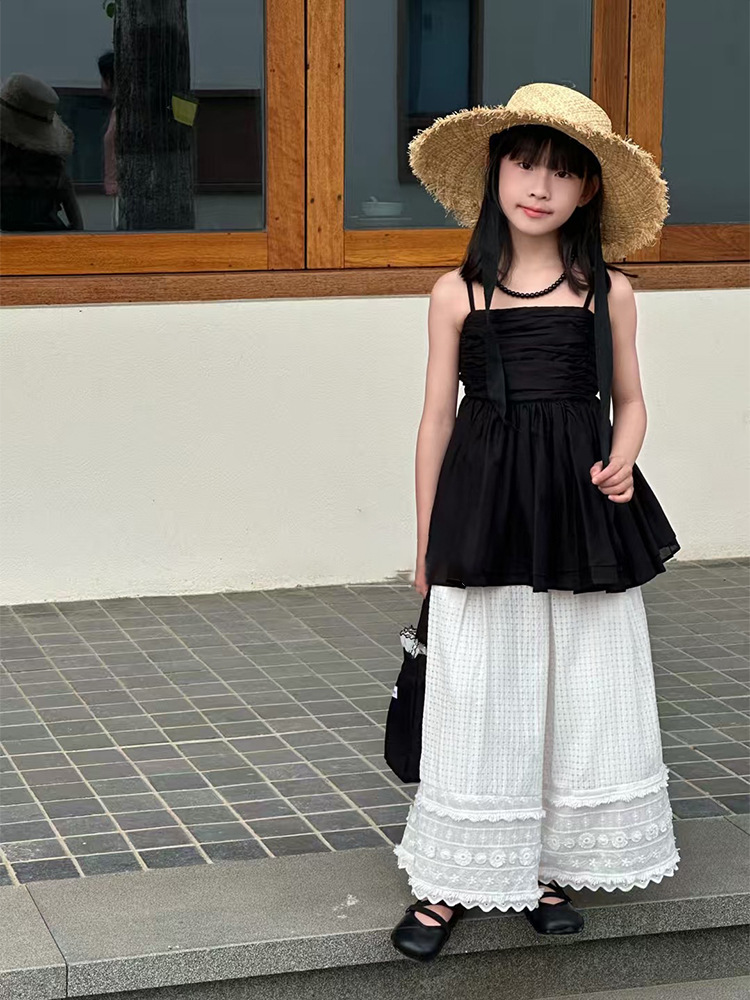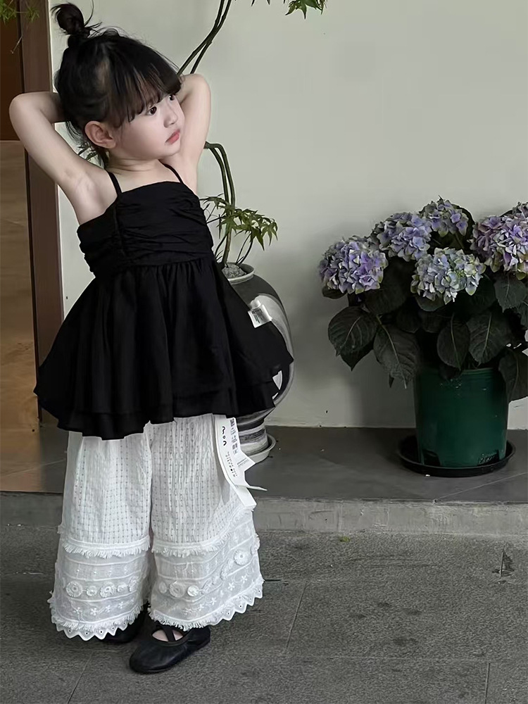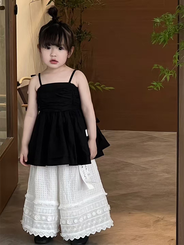 여자 한국 스타일 여름 새로운 도착 슬링 톱 원피스 2025 올 매치 솔리드 컬러 느슨한 캐주얼 레이스 바지 투피스 세트 트렌디스토어 가기