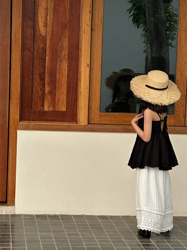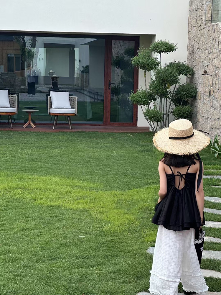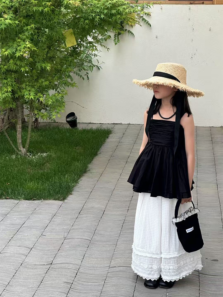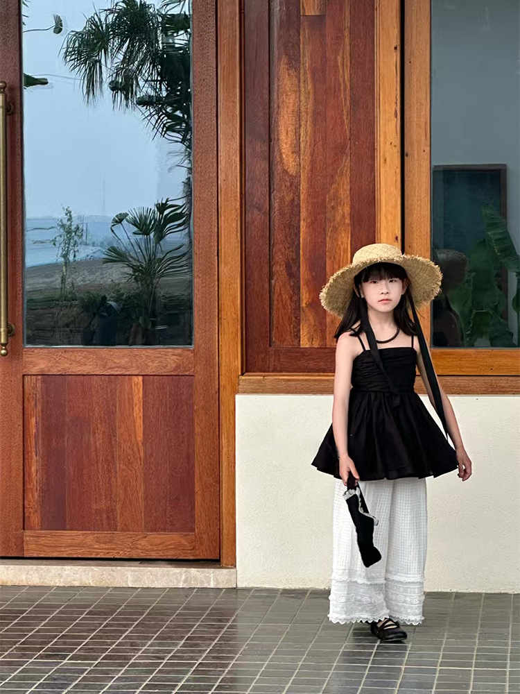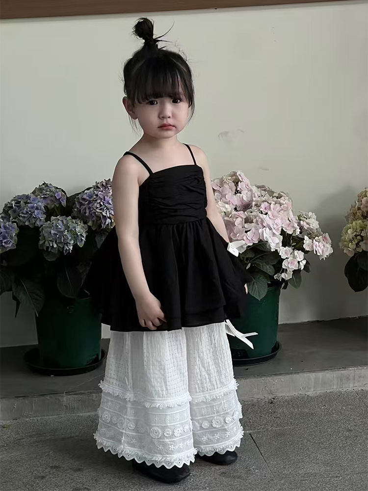 여자 한국 스타일 여름 새로운 도착 슬링 톱 원피스 2025 올 매치 솔리드 컬러 느슨한 캐주얼 레이스 바지 투피스 세트 트렌디스토어 가기
