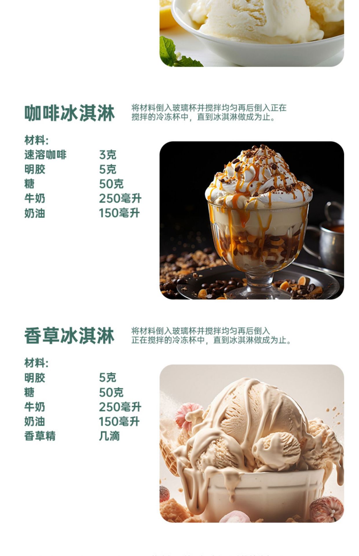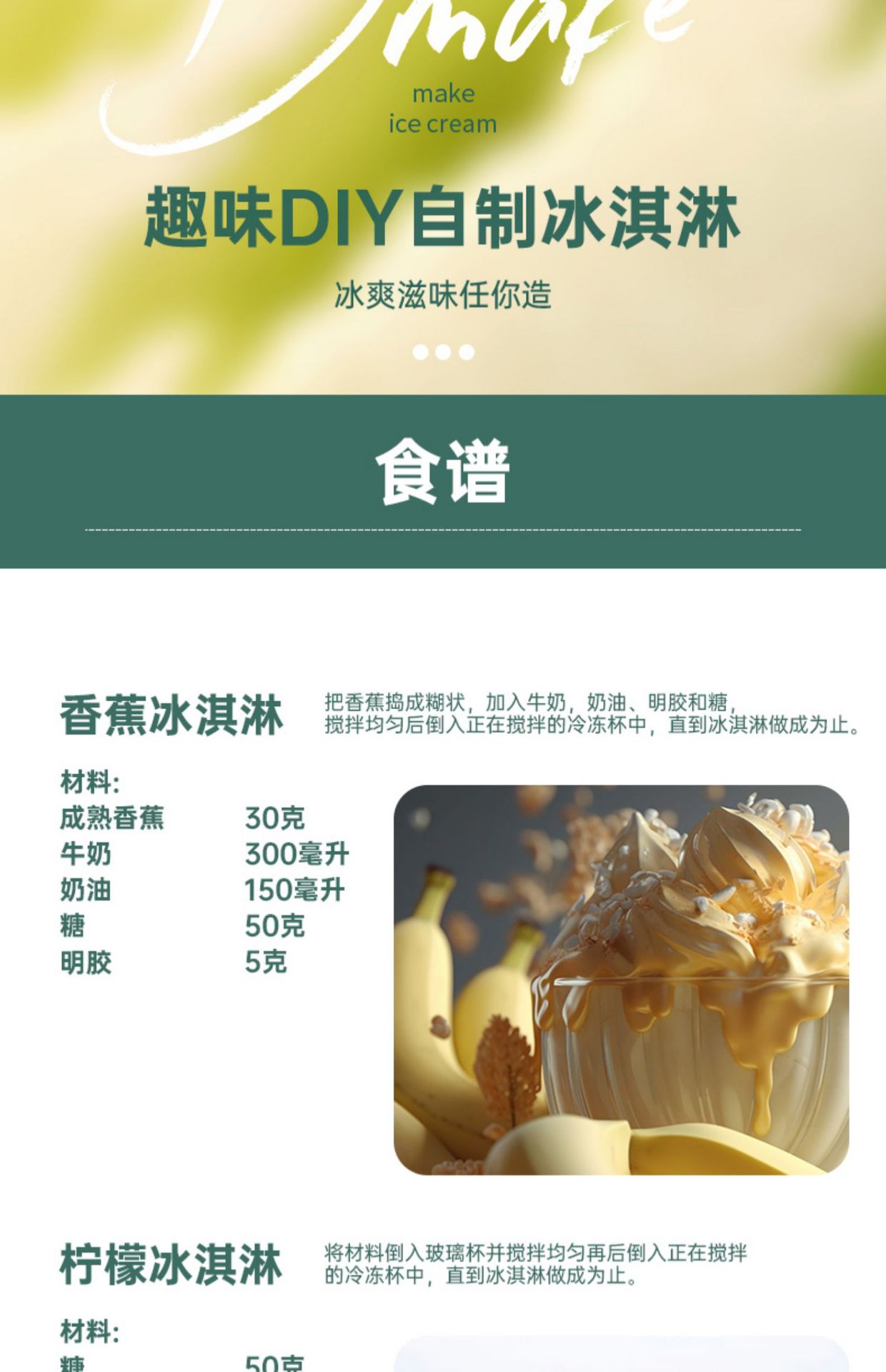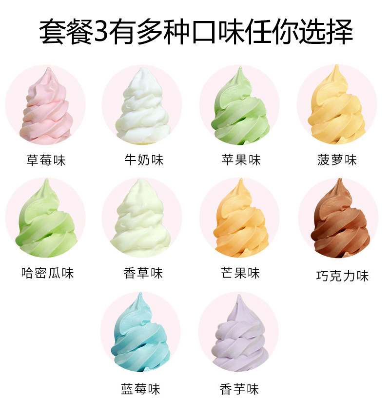 • 아이스크림 기계(패키지 3에는 아이스크림 가루 1KG가 포함되어 있으며 다양한 맛 중 하나를 선택할 수 있습니다)