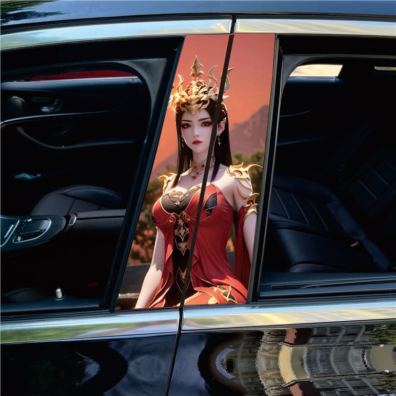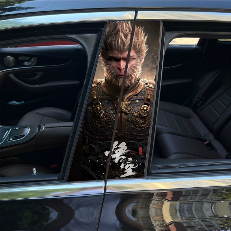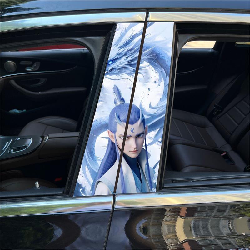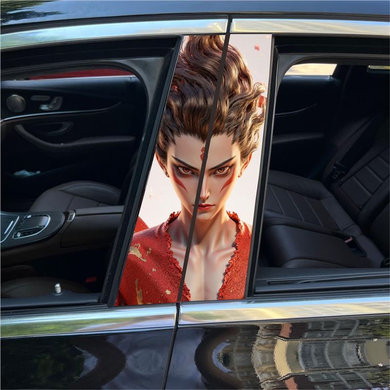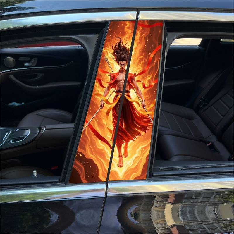 국경 간 자동차 중간 기둥 스티커 A 기둥 Nezha 2 광대 장식 스티커 자동차 창 B 기둥 보호 필름 페인트 메두