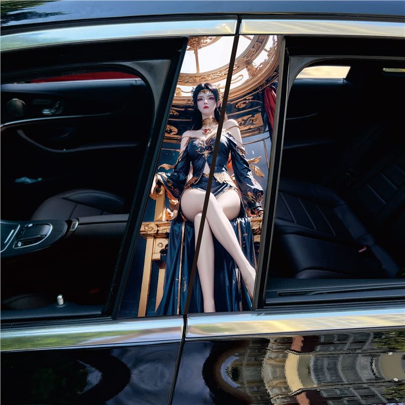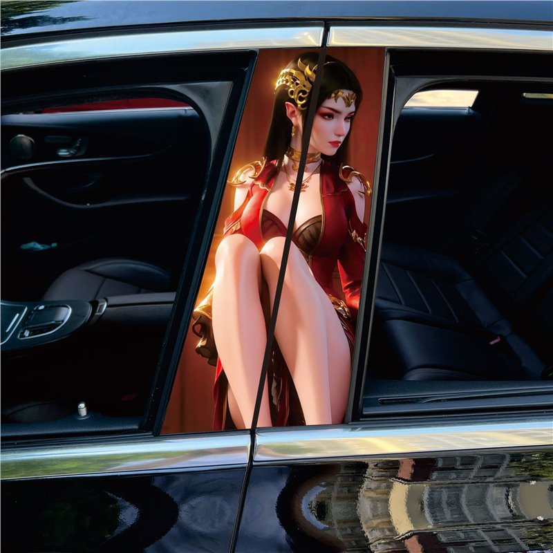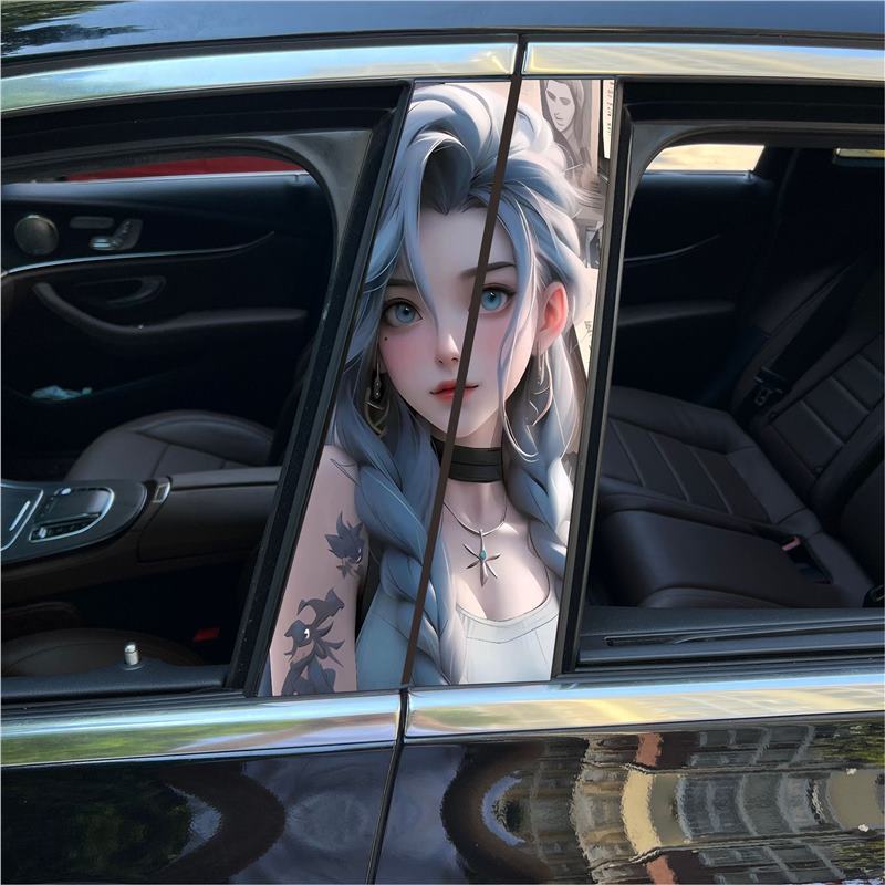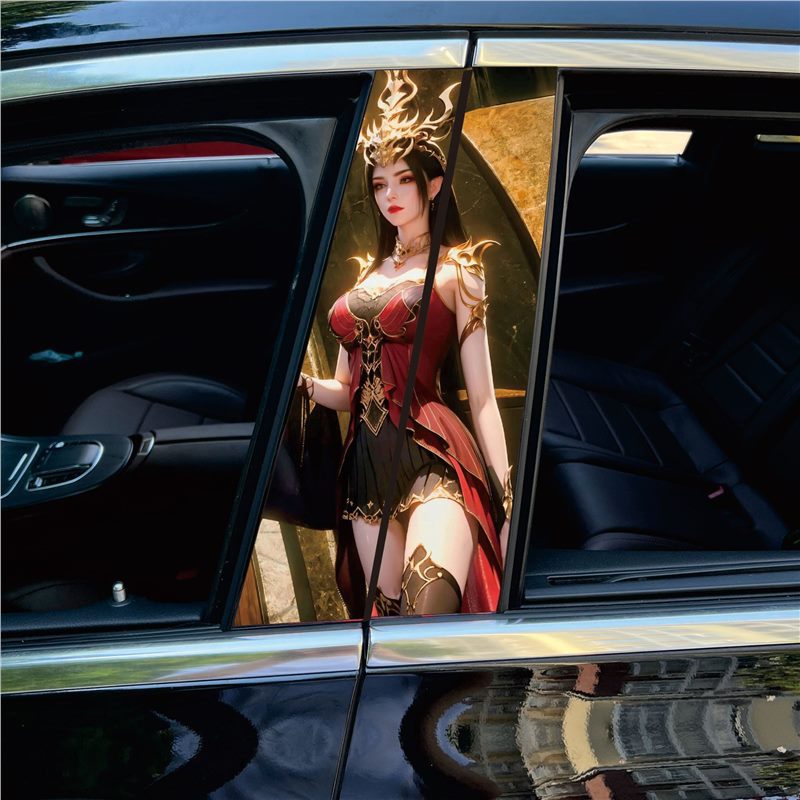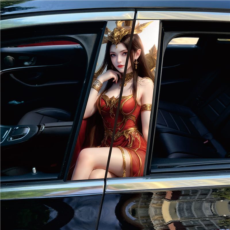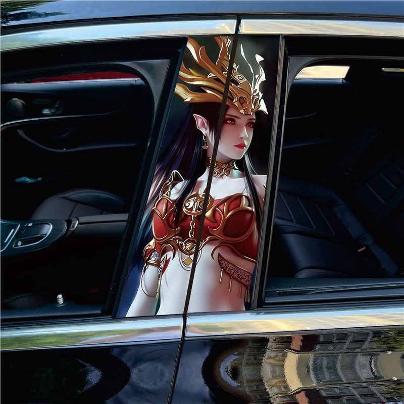 국경 간 자동차 중간 기둥 스티커 A 기둥 Nezha 2 광대 장식 스티커 자동차 창 B 기둥 보호 필름 페인트 메두