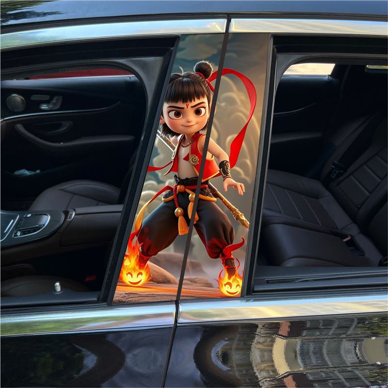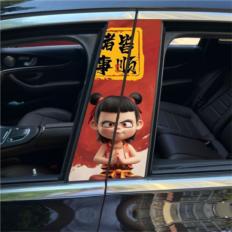 국경 간 자동차 중간 기둥 스티커 A 기둥 Nezha 2 광대 장식 스티커 자동차 창 B 기둥 보호 필름 페인트 메두스토어 가기