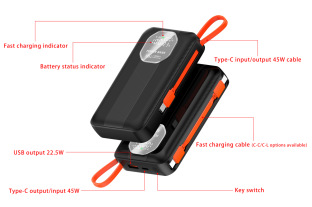 새로운 PD45W 양방향 초고속 충전 모바일 전원 공급 장치 20000mAh 디지털 디스플레이 휴대용 이중선 보조베터리 포함