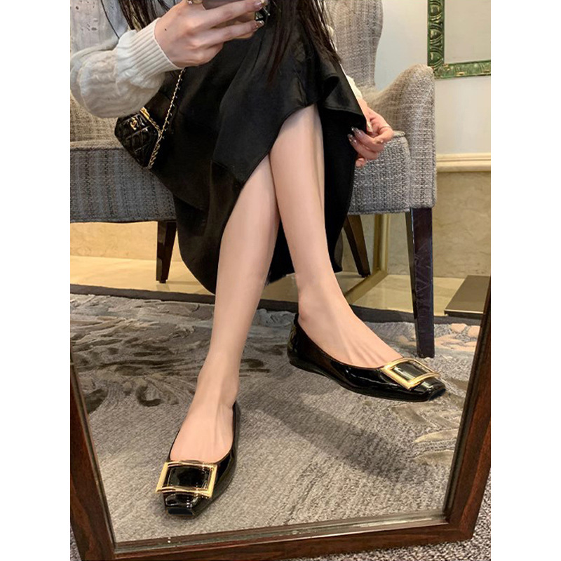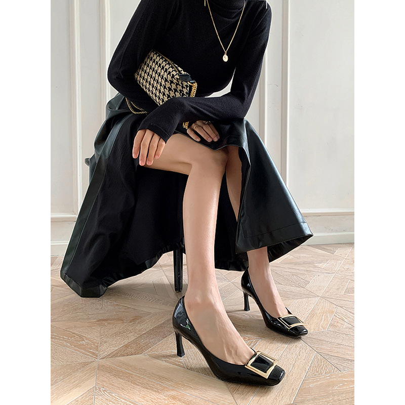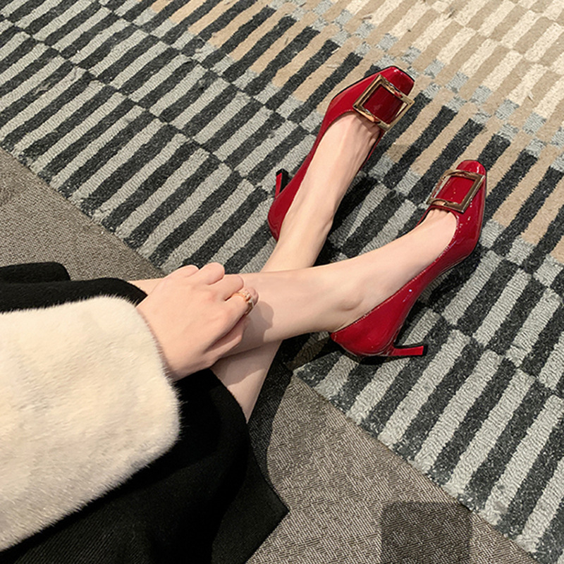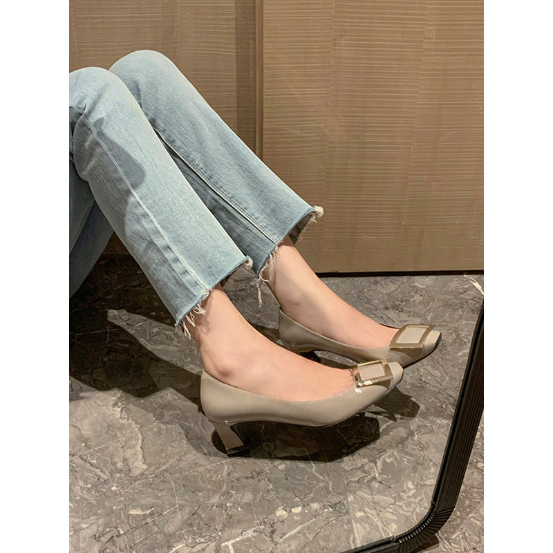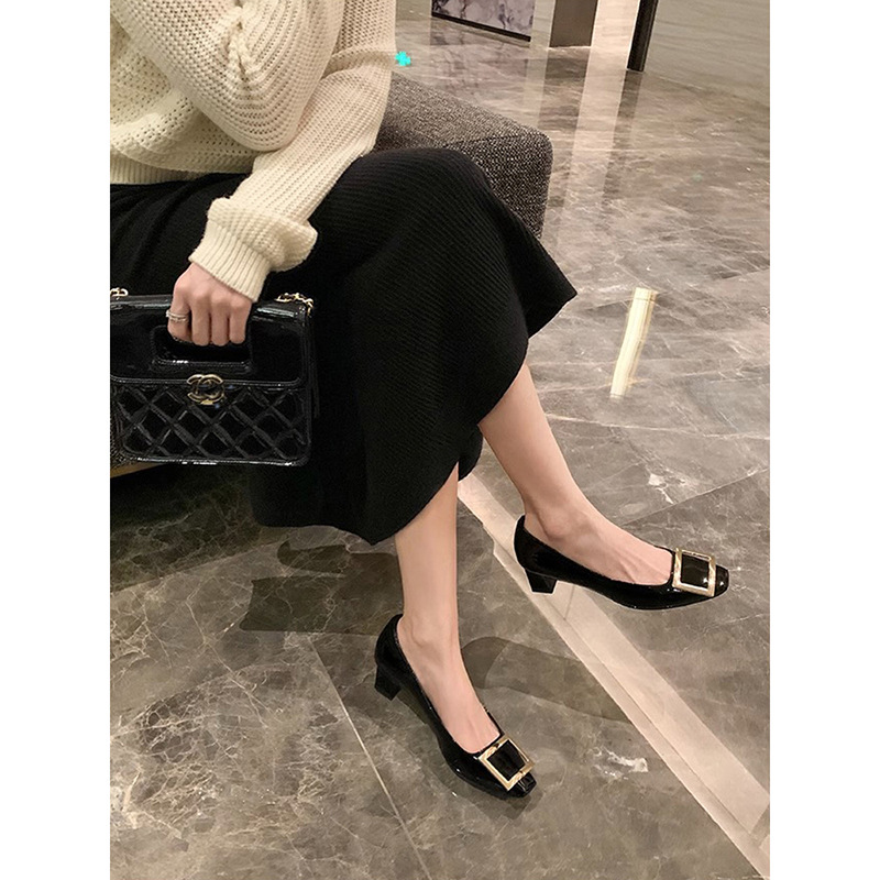 스퀘어 버클 싱글 레이어 신발 여성의 두꺼운 발 뒤꿈치 기질 스퀘어 코끼리 회색 하이 엔드 센스 특허 가죽 rv 하이힐 슈즈 전문 출퇴근스토어 가기
