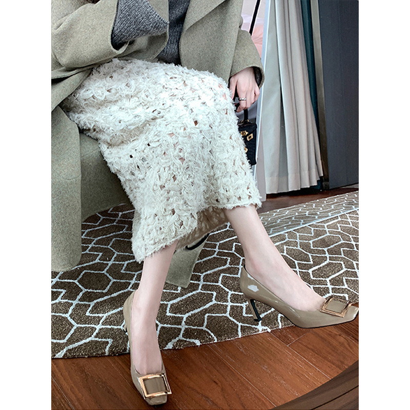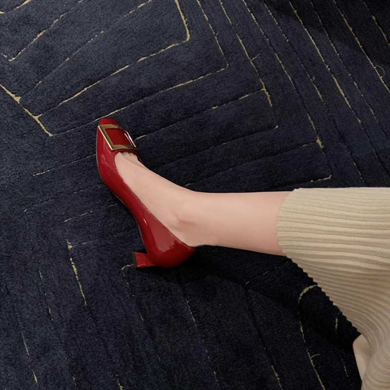 스퀘어 버클 싱글 레이어 신발 여성의 두꺼운 발 뒤꿈치 기질 스퀘어 코끼리 회색 하이 엔드 센스 특허 가죽 rv 하이힐 슈즈 전문 출퇴근
