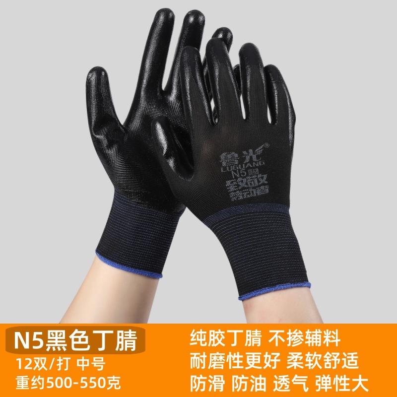 Luguang 검정색 N5 니트릴 접착제 코팅 원예 노동 보호 장갑 니트릴 함침 내마모성 작업 보호 고무 장갑