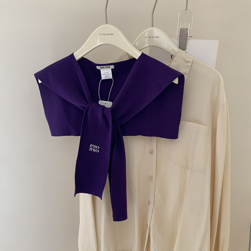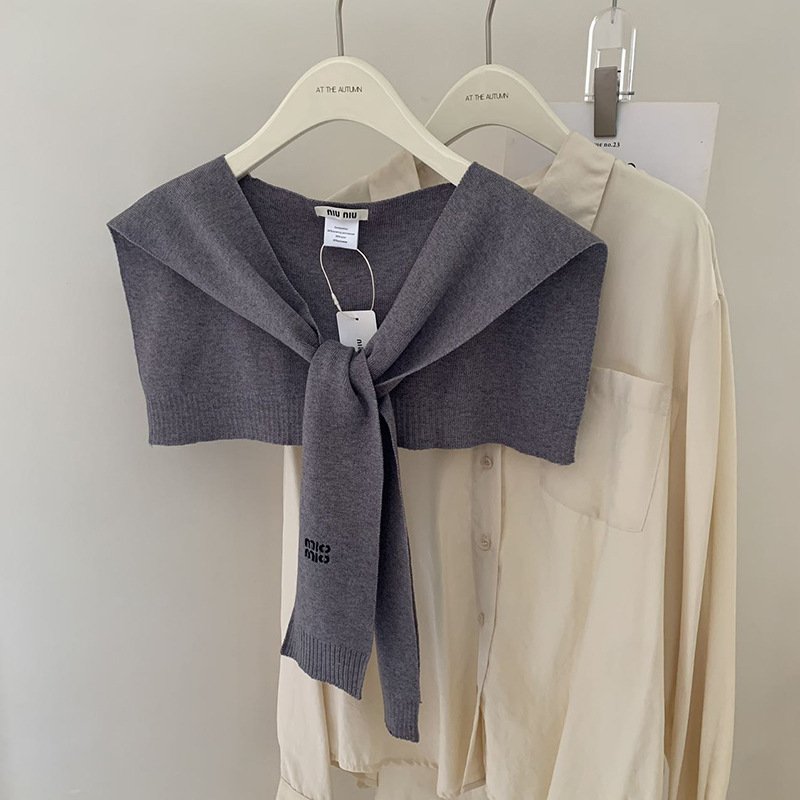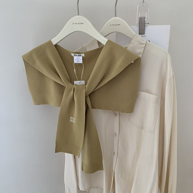 여성용 일본 및 한국 단색 자수 문자 니트 숄, 여름 및 가을 에어컨 룸 외부 조끼 및 가짜 칼라 장식스토어 가기