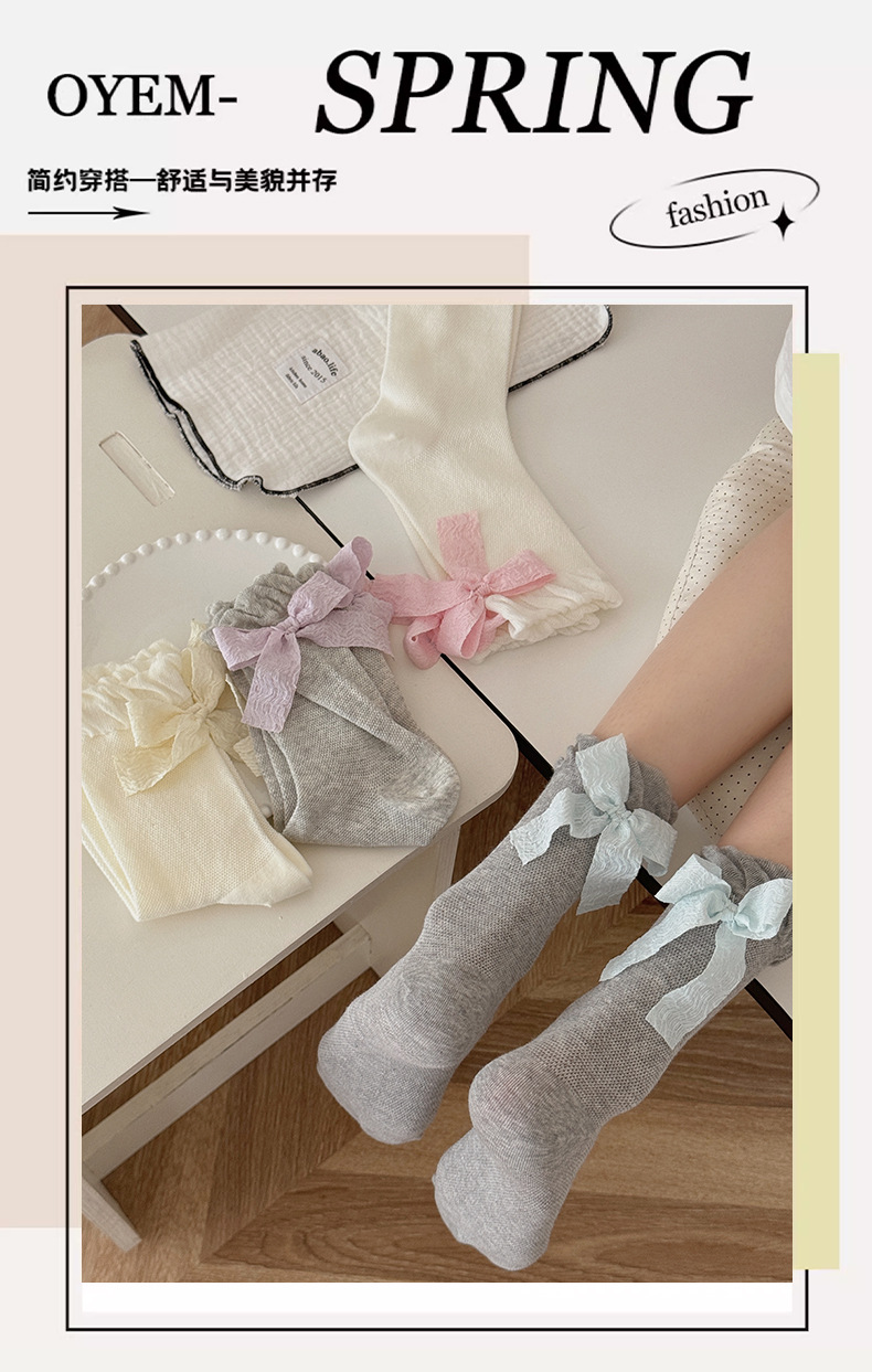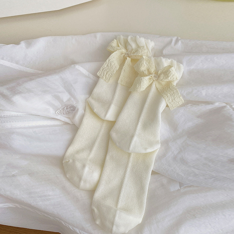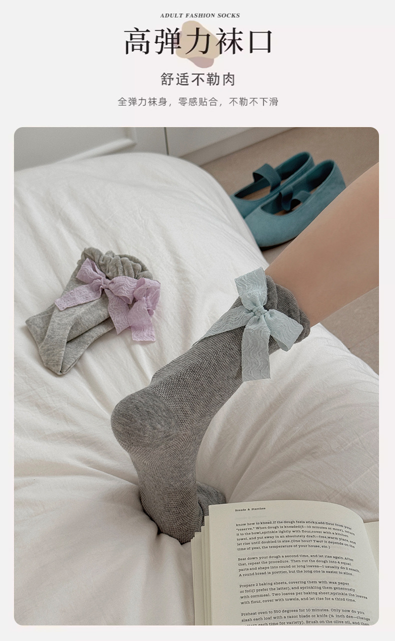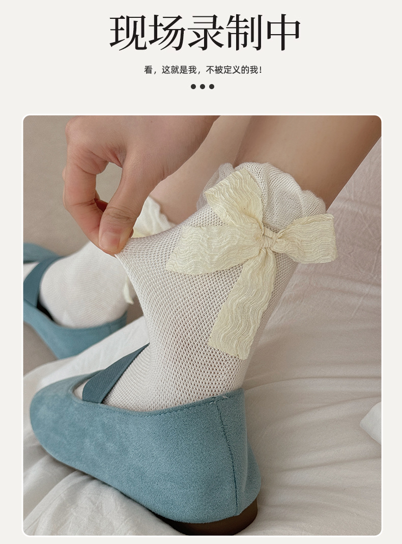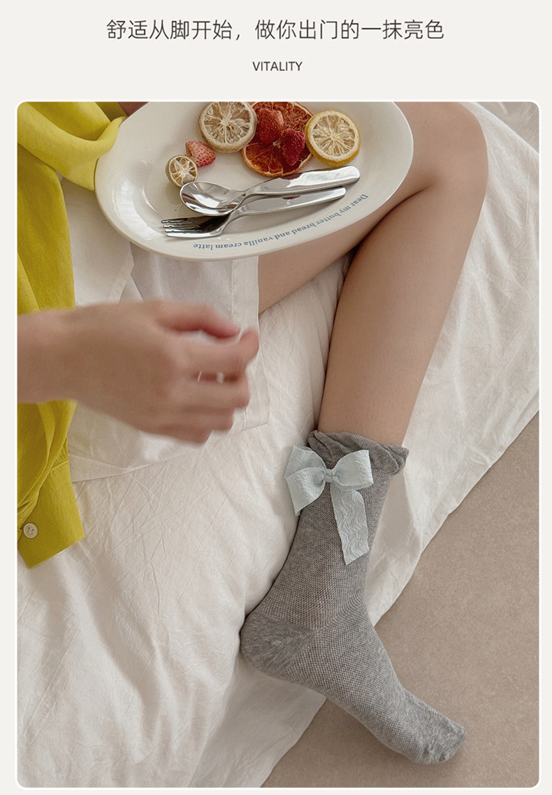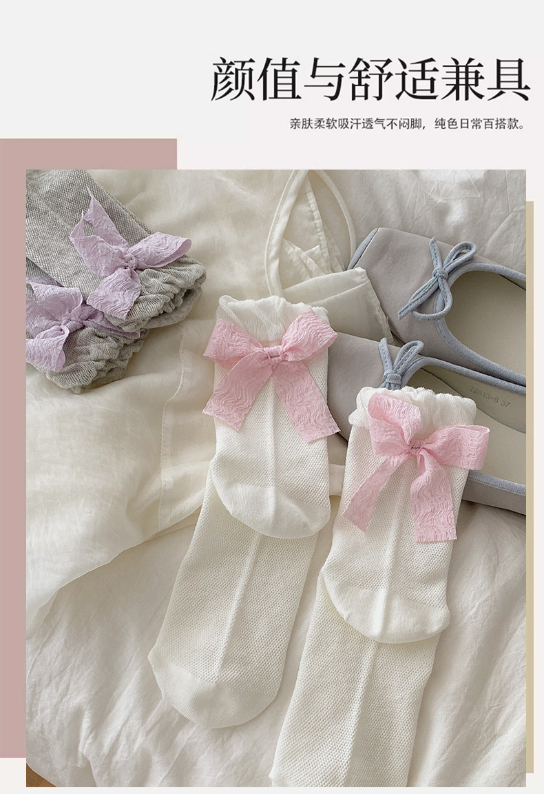 발 뒤꿈치 활 양말 여성의 여름 얇은 메쉬 중공 통기성 면 양말 달콤한 소녀 거품 입 미드 튜브 양말