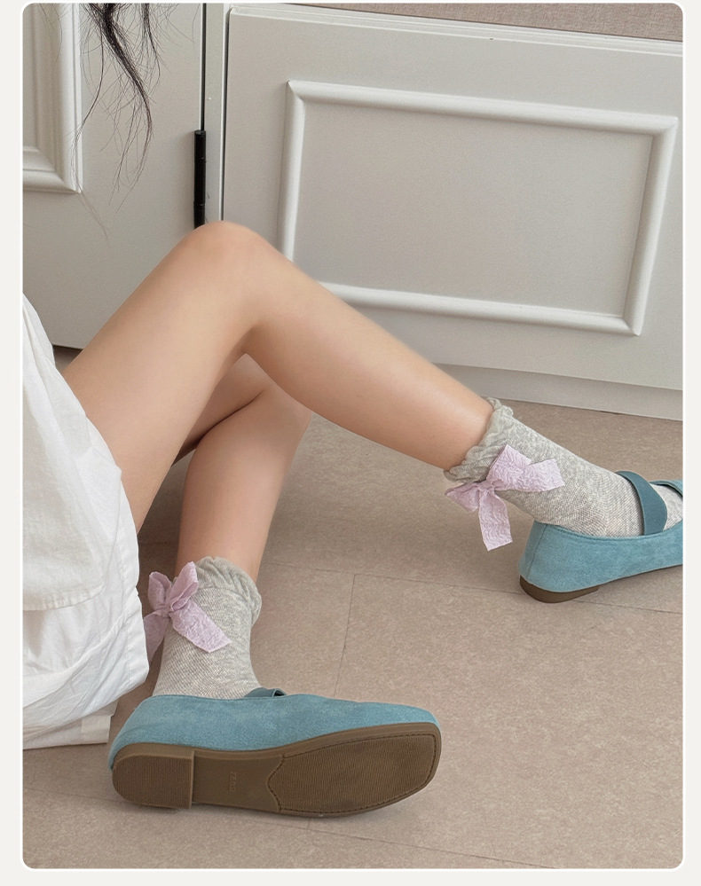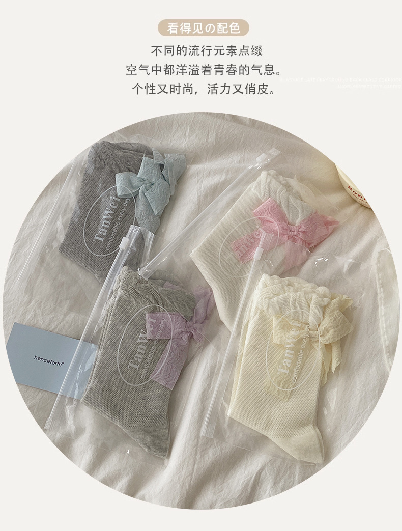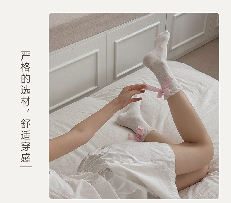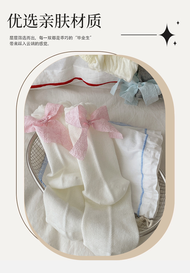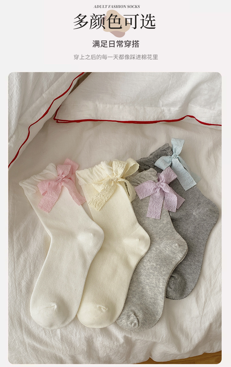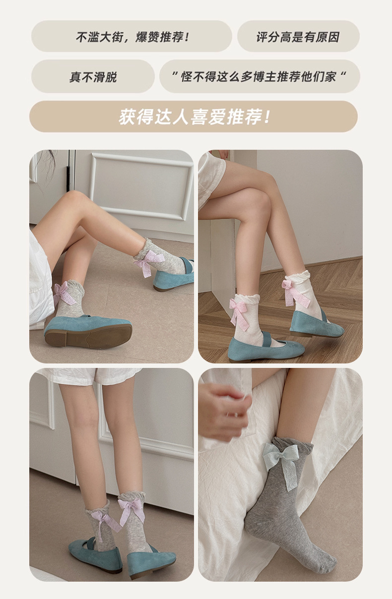 발 뒤꿈치 활 양말 여성의 여름 얇은 메쉬 중공 통기성 면 양말 달콤한 소녀 거품 입 미드 튜브 양말