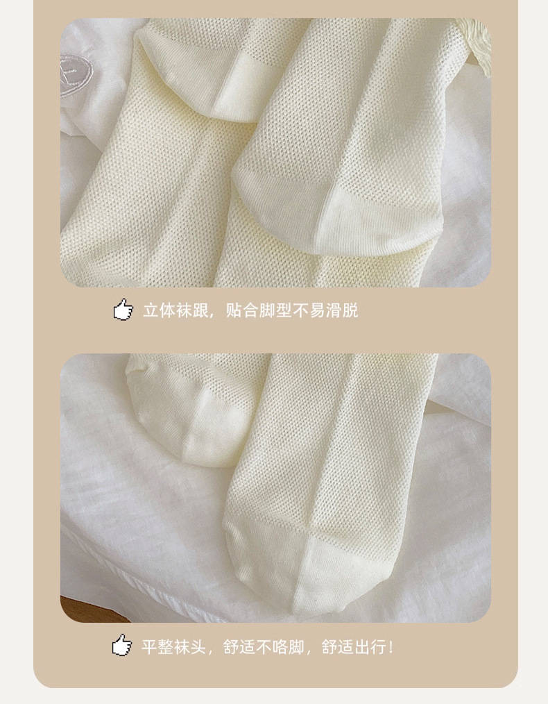 발 뒤꿈치 활 양말 여성의 여름 얇은 메쉬 중공 통기성 면 양말 달콤한 소녀 거품 입 미드 튜브 양말스토어 가기