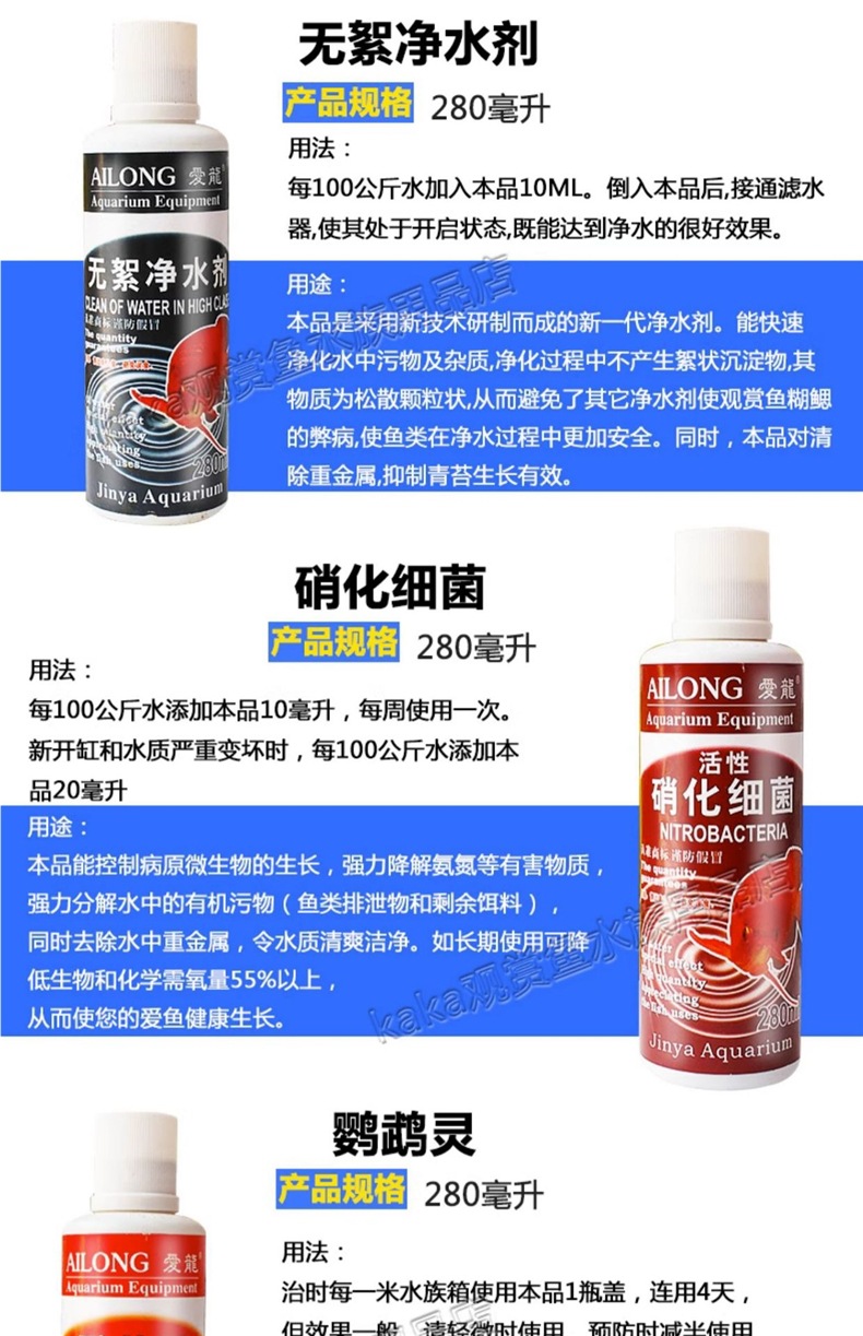 Ailong 한 방울의 청정제는 녹색 물고기 수조 정수기 정화제 수족관 살균 및 녹색 투명 물을 제거합니다.스토어 가기