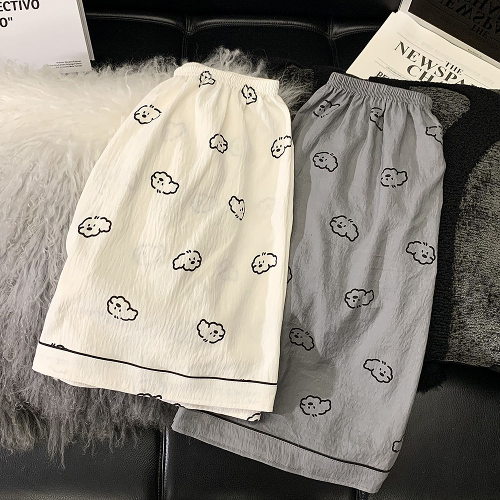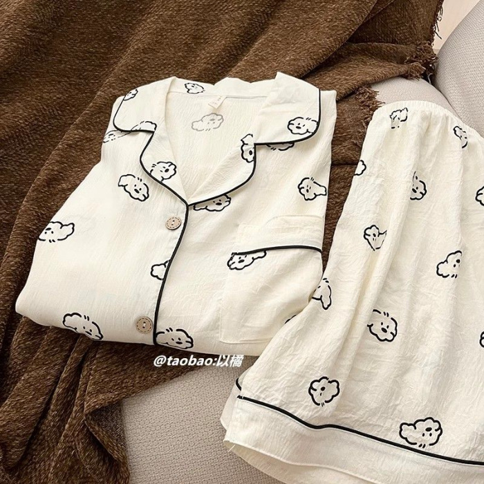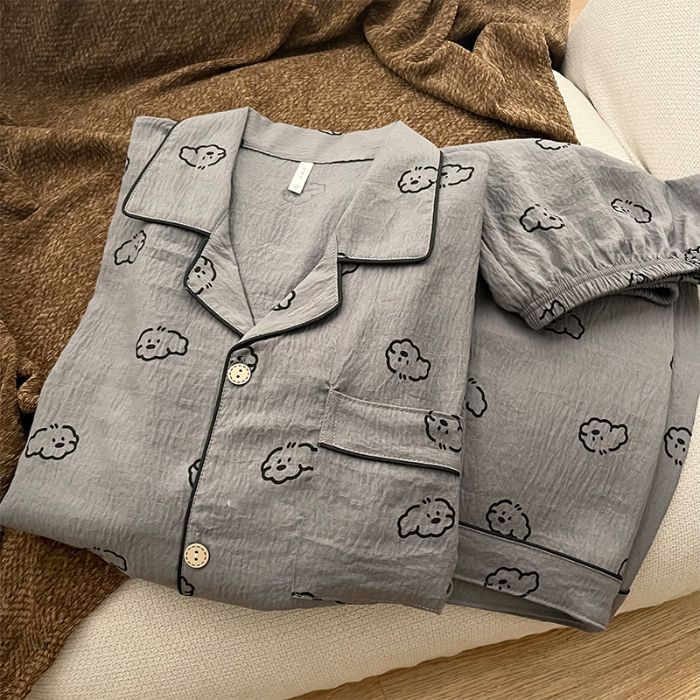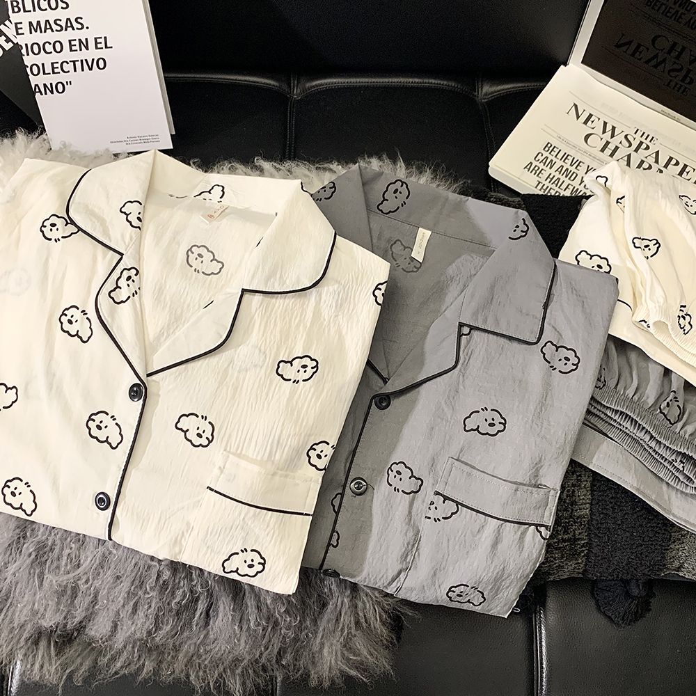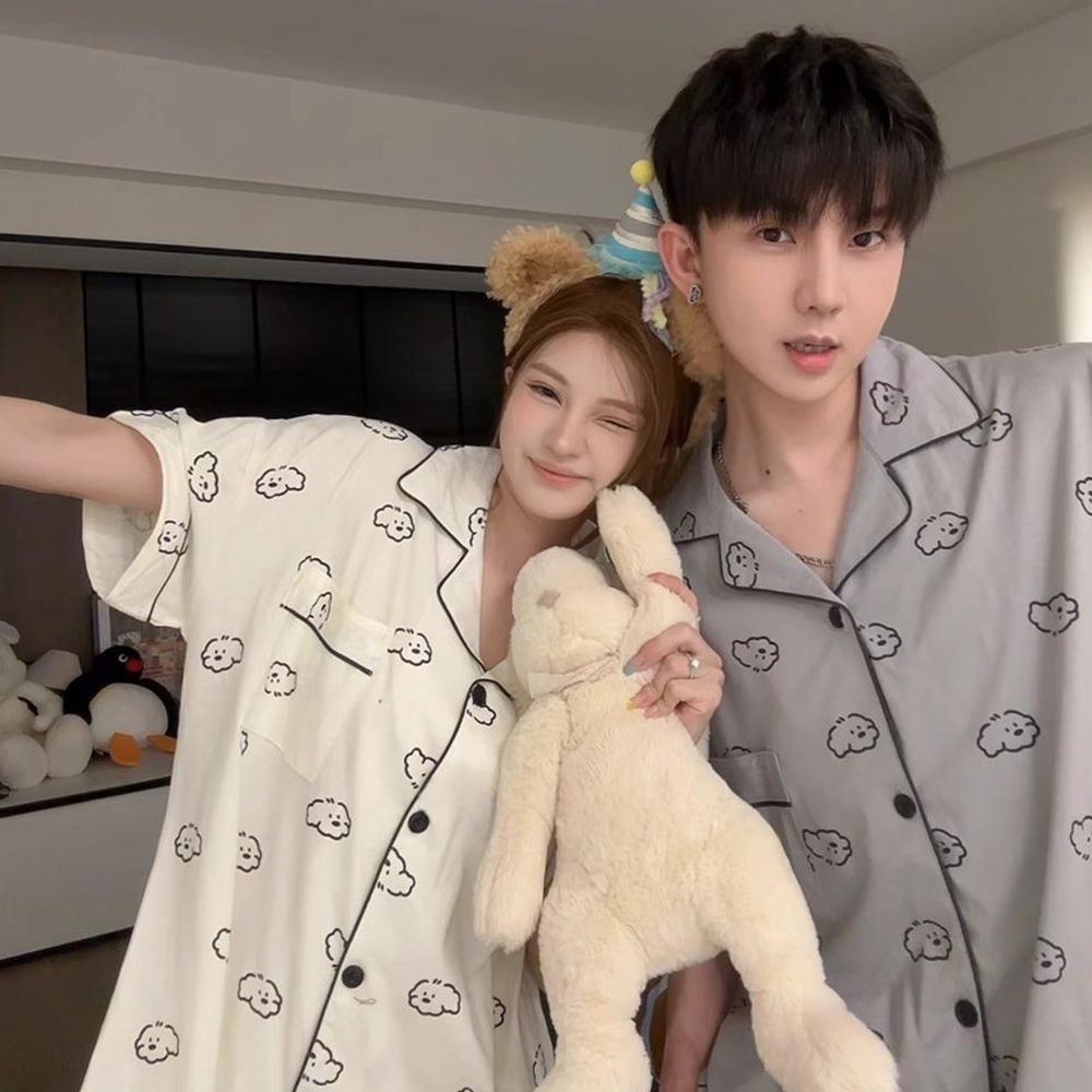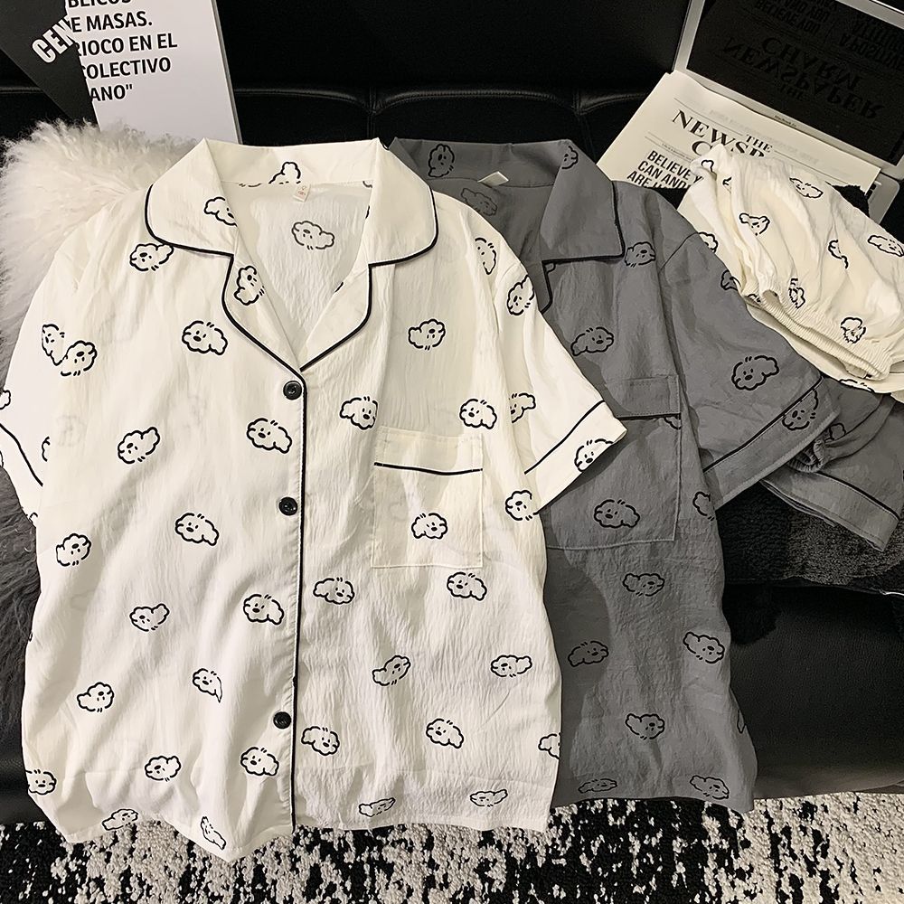 여성을위한 한국어 스타일 귀여운 만화 강아지 커플 잠옷 여름 순수 코튼 반팔 반바지 남성 캐주얼 홈웨어 세트