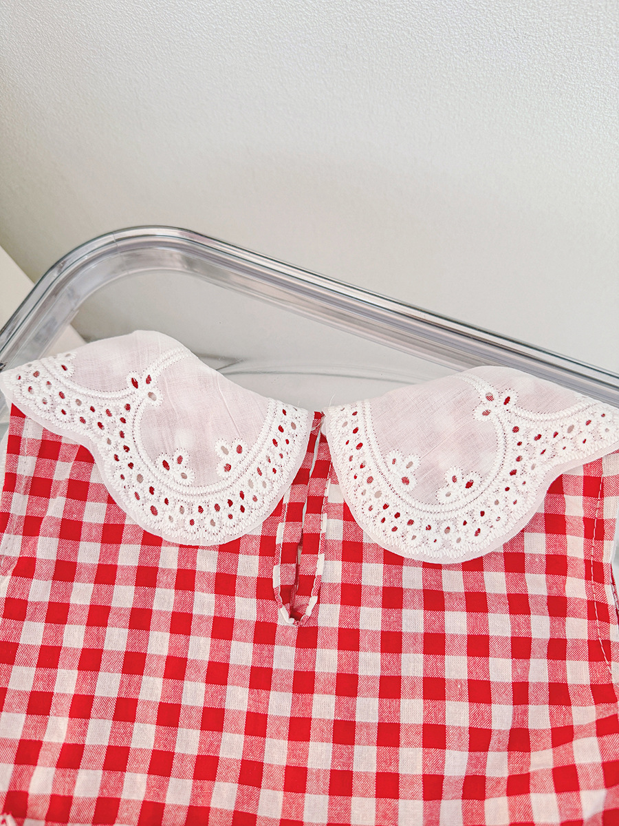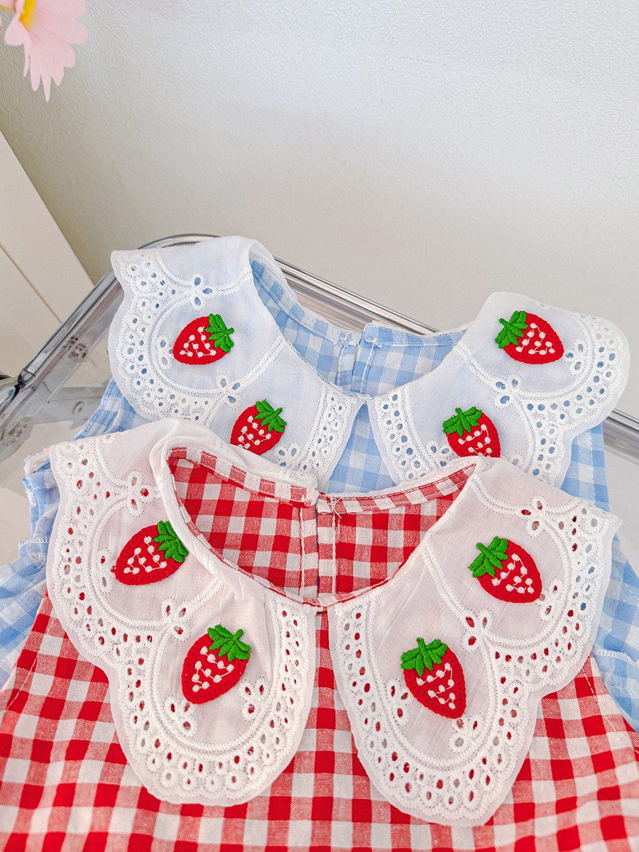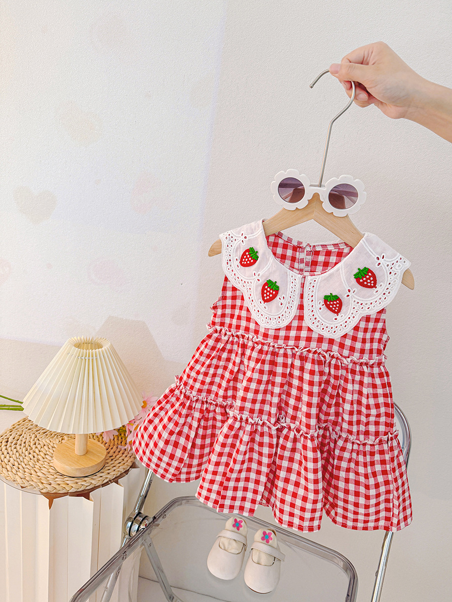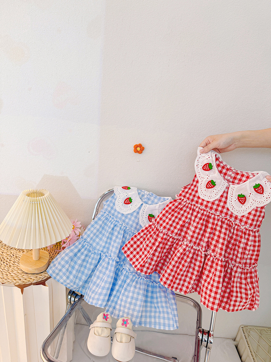 한국 스타일 원피스 2025 여자 아기 소녀 봄 가을 여름 원피스 공주 원피스 스타일 민소매 격자 인형 칼라 원피스스토어 가기