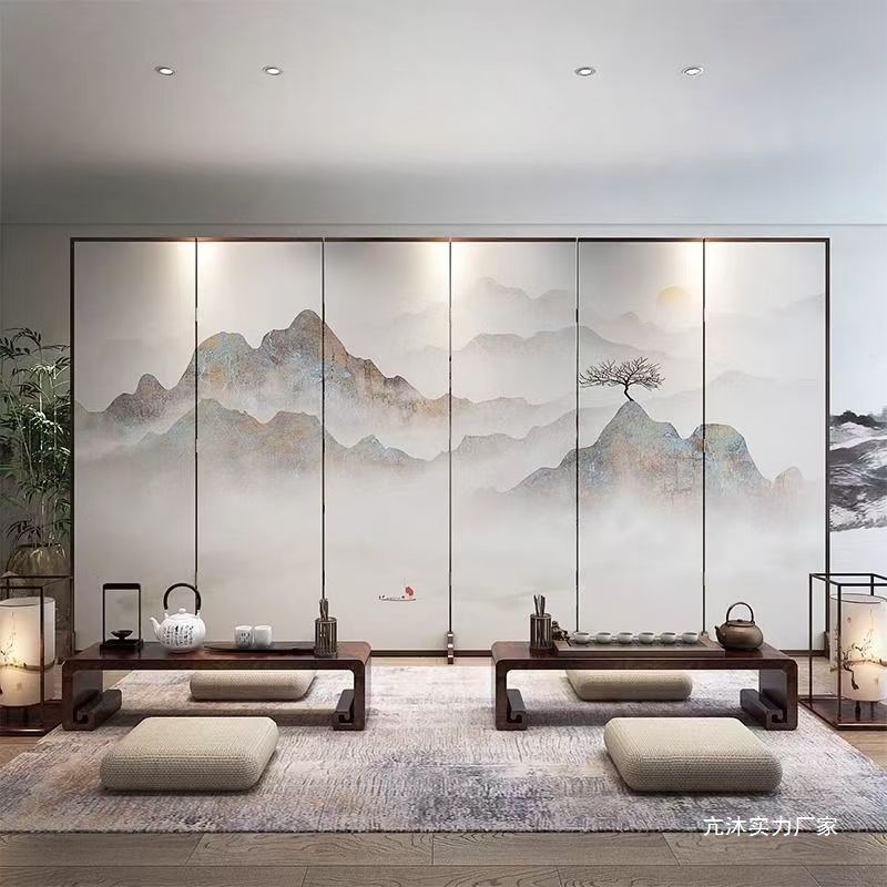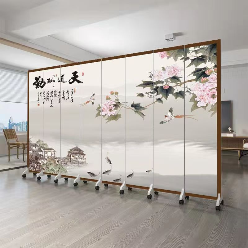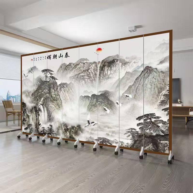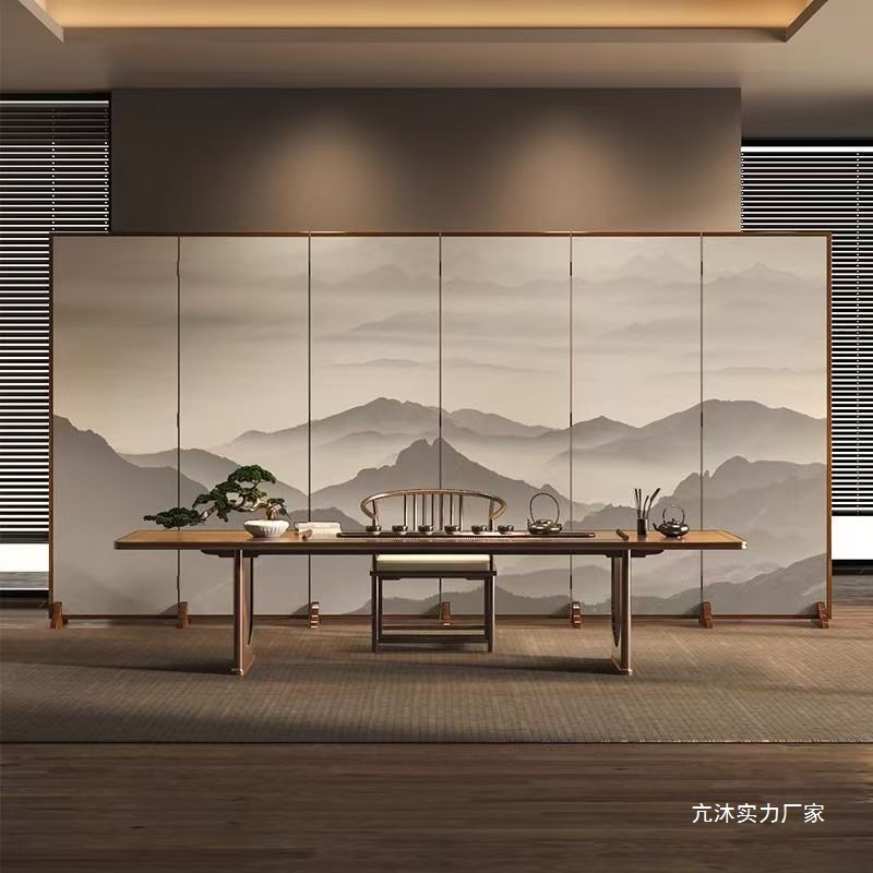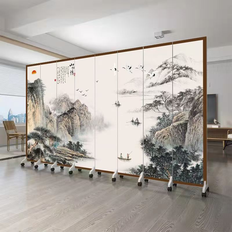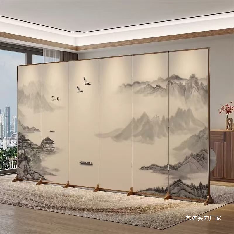 새로운 중국 스타일 개폐식 화면 파티션 거실 그늘 접이식 벽 사무실 조경 그림 접이식 화면 따뜻한 대형 화면