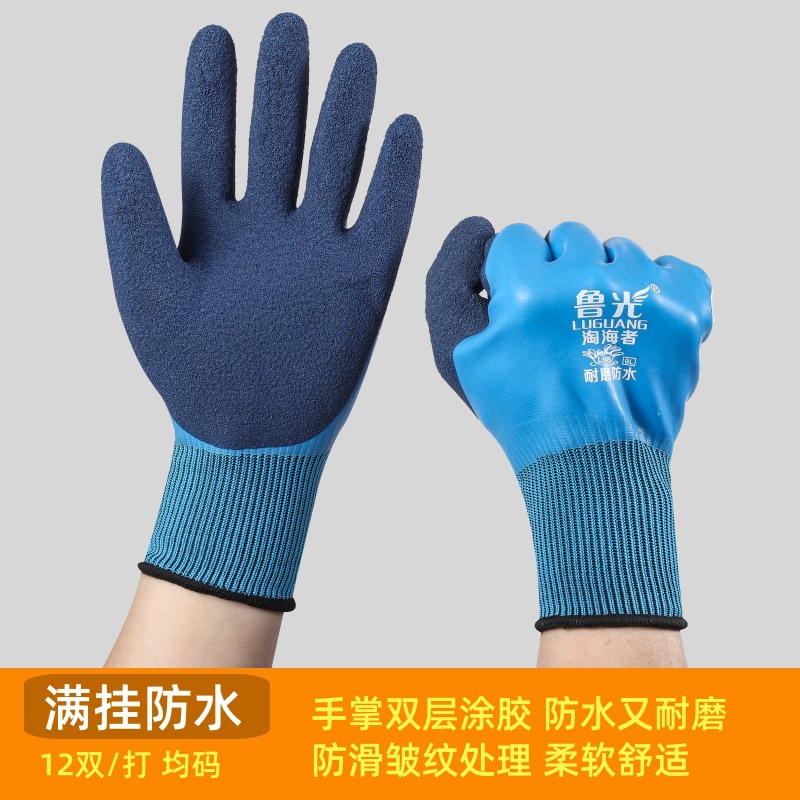 Luguang Taohai자리 방수 및 미끄럼 방지 장갑, 이중층 고무 처리, 내마모성 노동 보호 건설 현장 필름 장갑