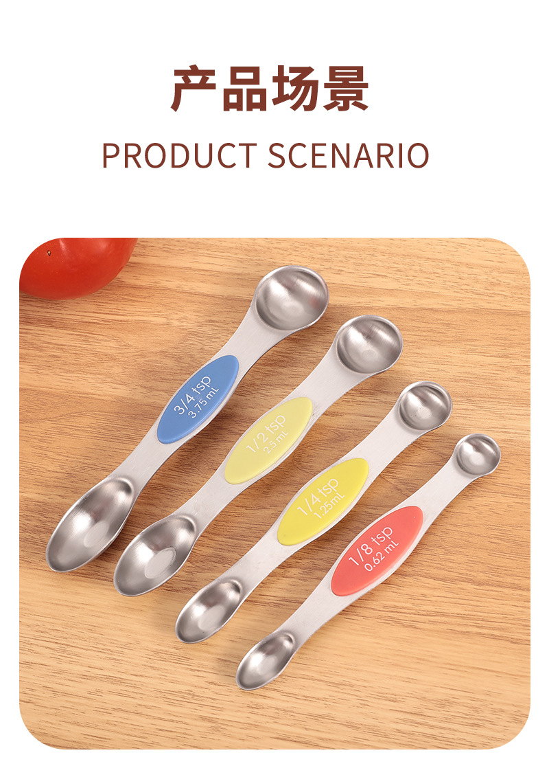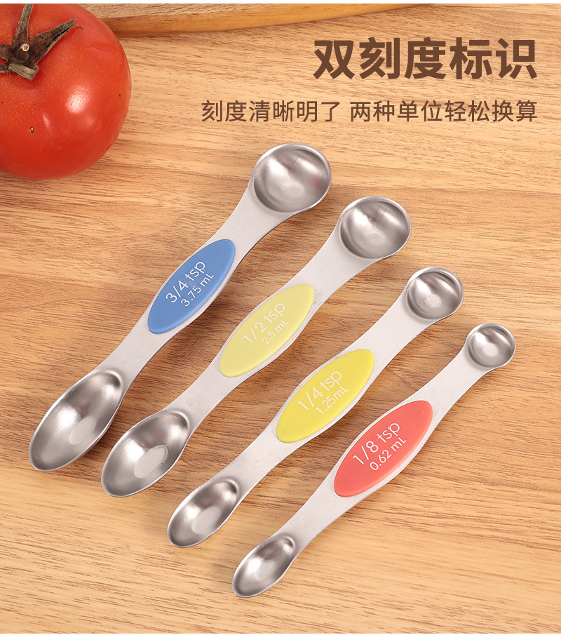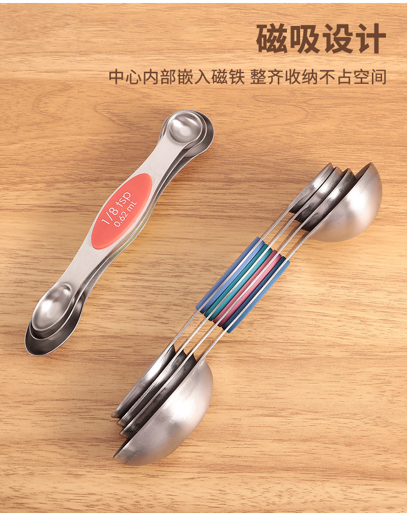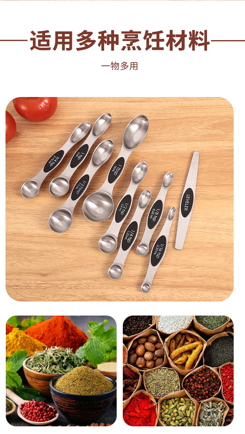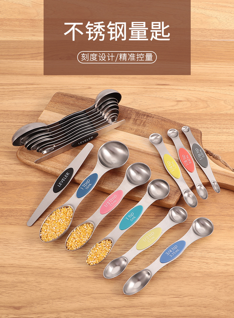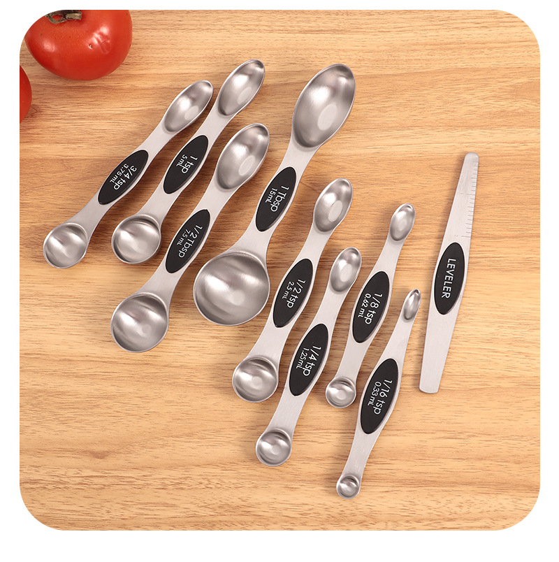 공장 재고 마그네틱 더블 헤드 측정 스푼 9 피스 세트 아마존 스테인레스 스틸 베이킹 가정용 주방 측정 조미료 스푼스토어 가기