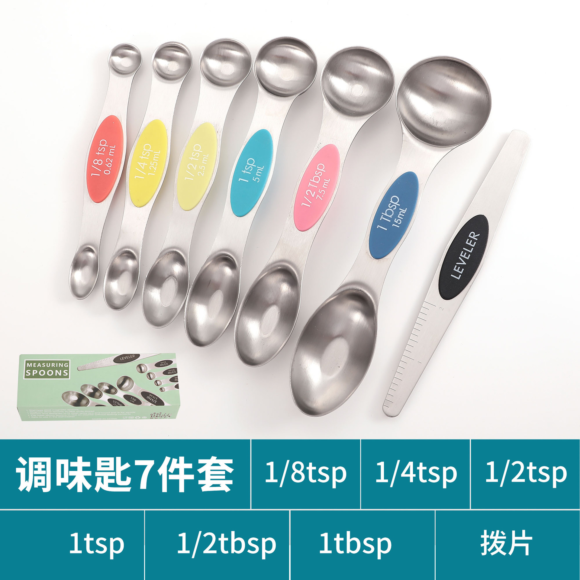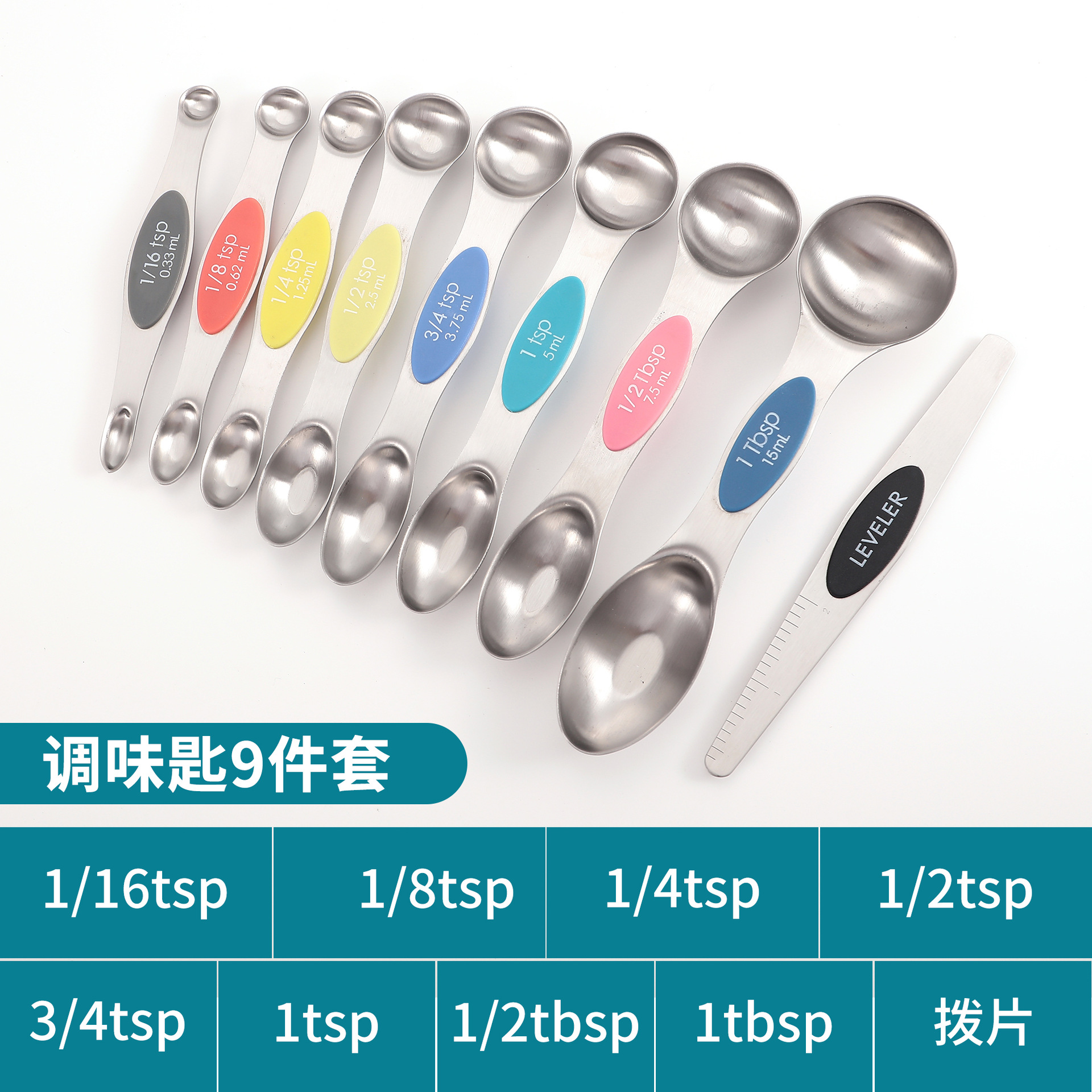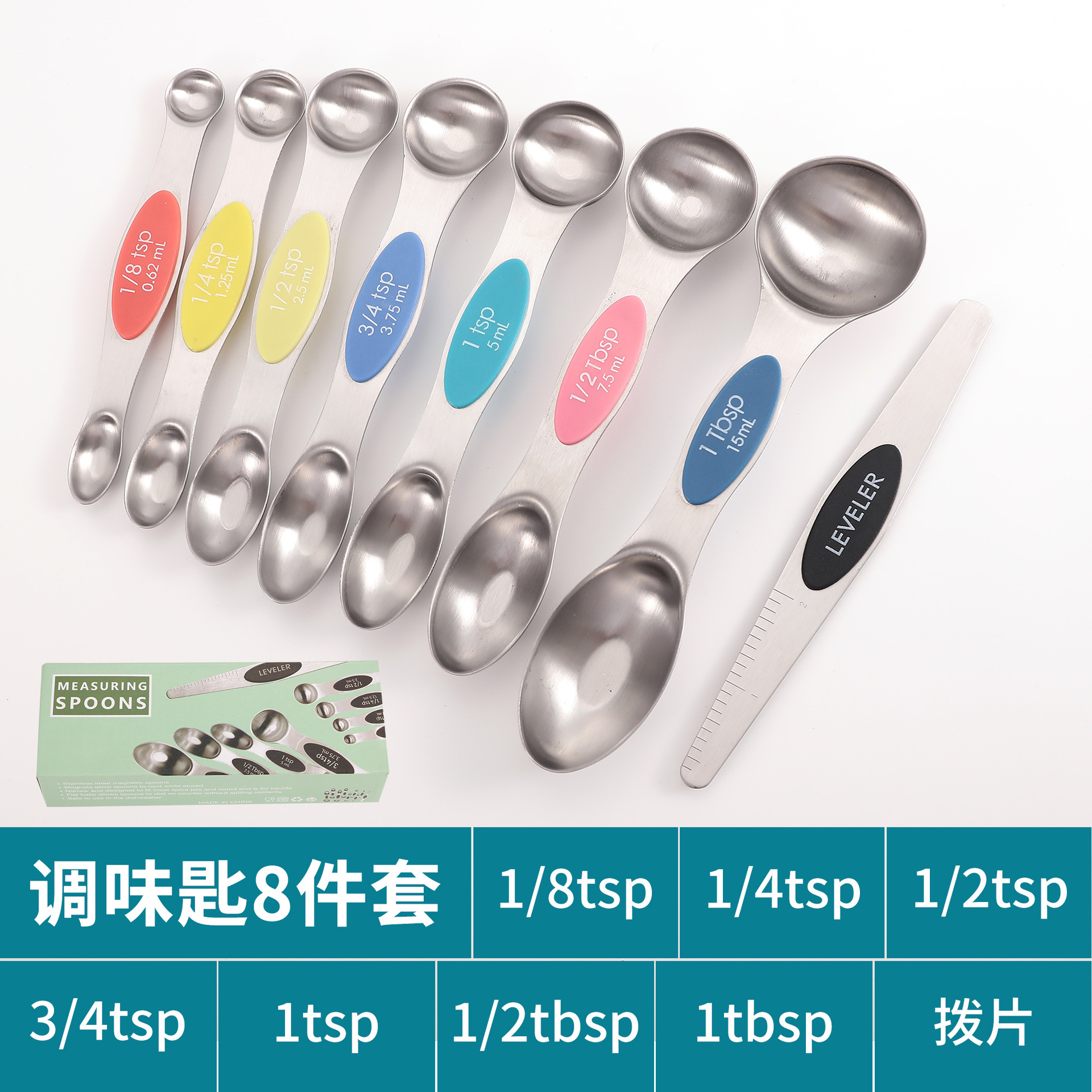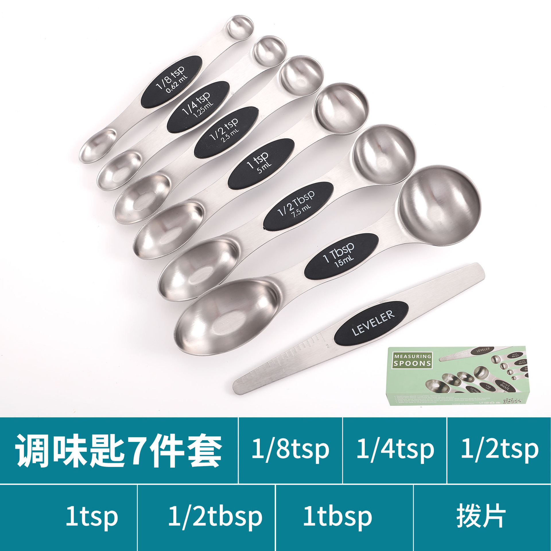 공장 재고 마그네틱 더블 헤드 측정 스푼 9 피스 세트 아마존 스테인레스 스틸 베이킹 가정용 주방 측정 조미료 스푼스토어 가기