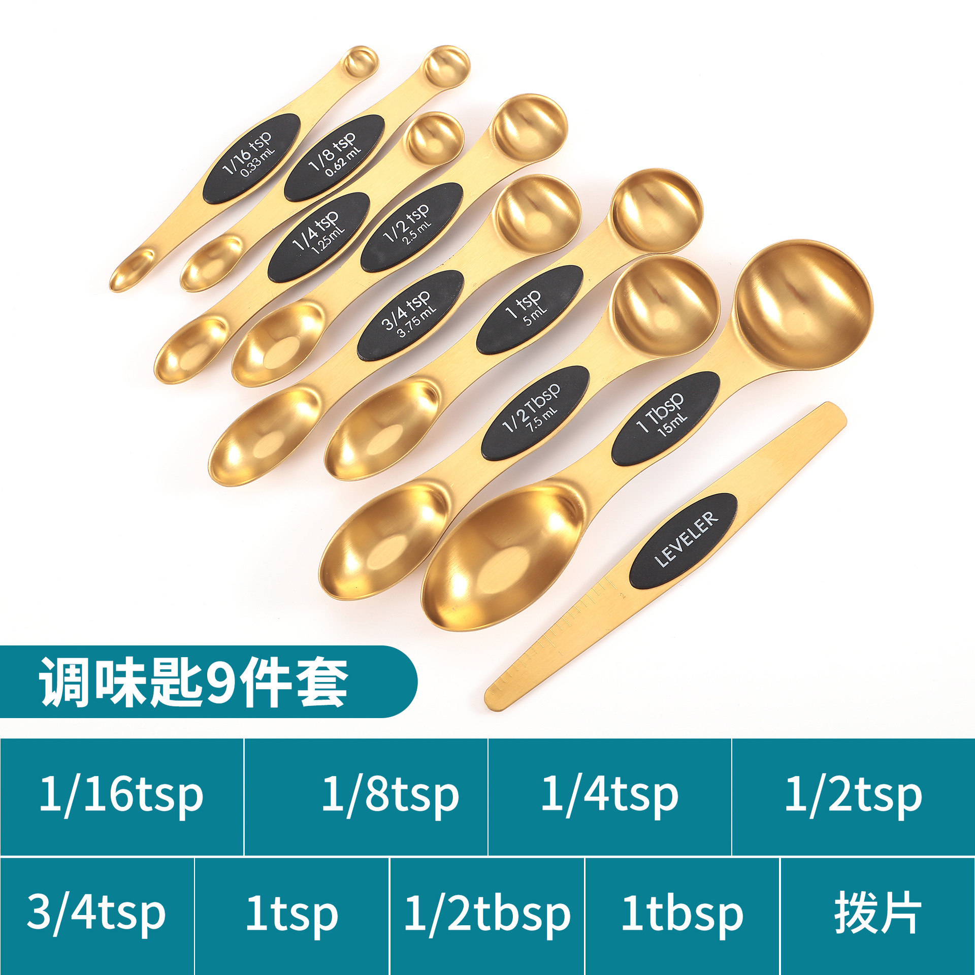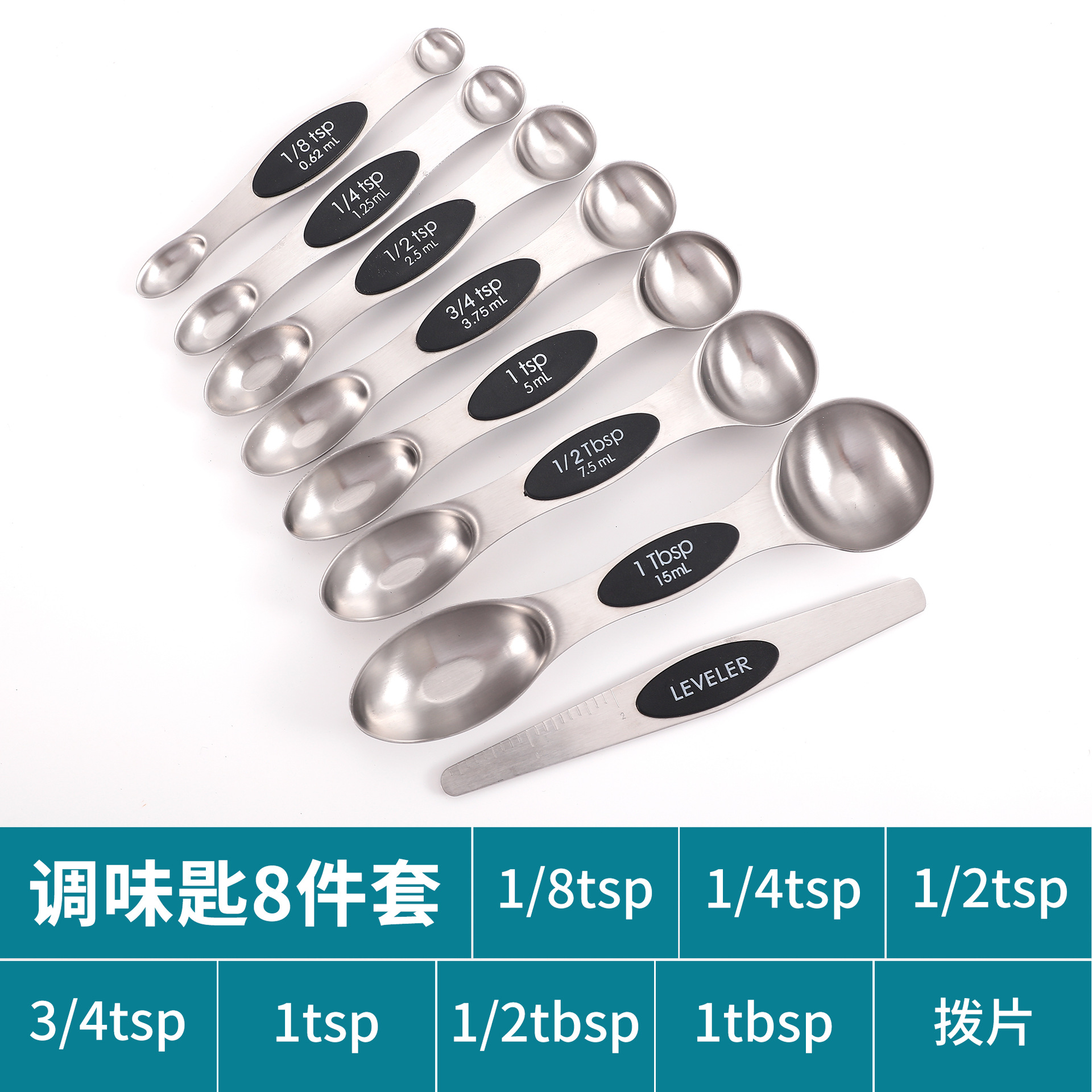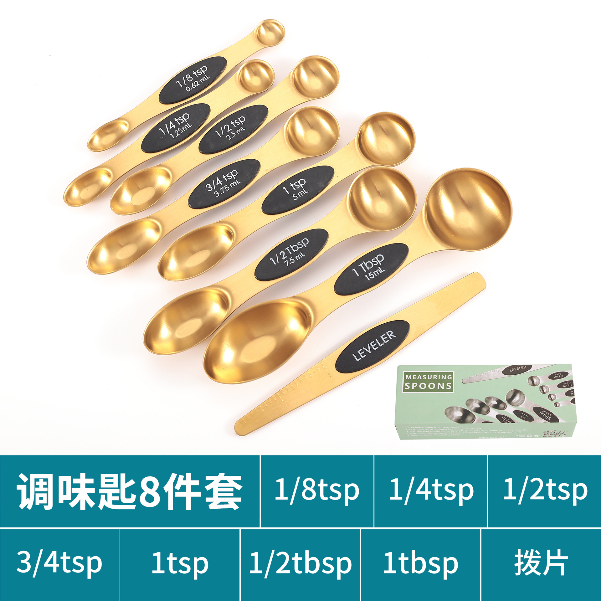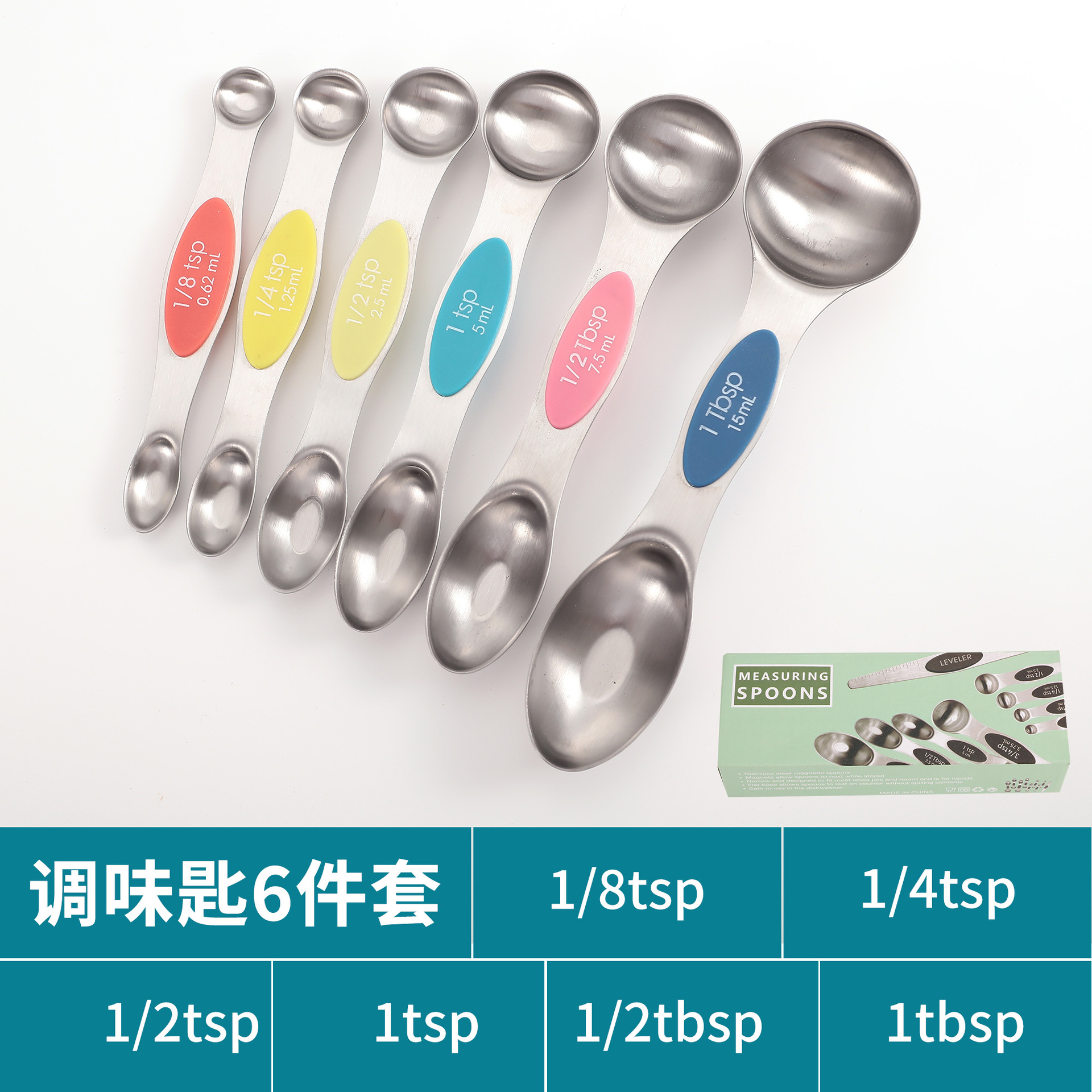 공장 재고 마그네틱 더블 헤드 측정 스푼 9 피스 세트 아마존 스테인레스 스틸 베이킹 가정용 주방 측정 조미료 스푼스토어 가기