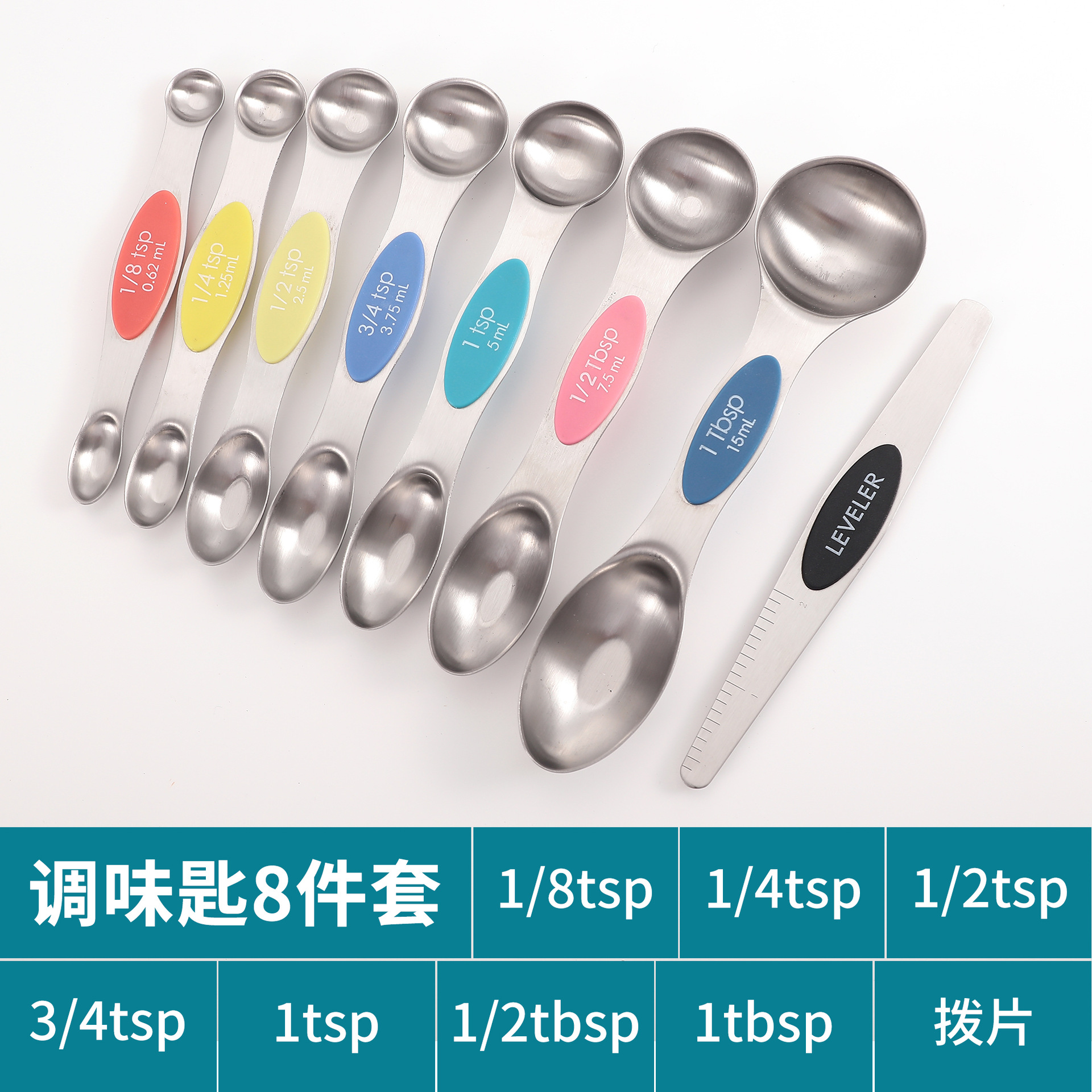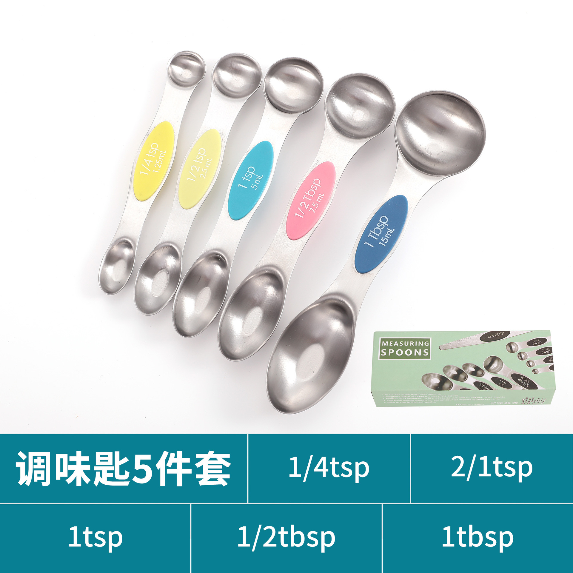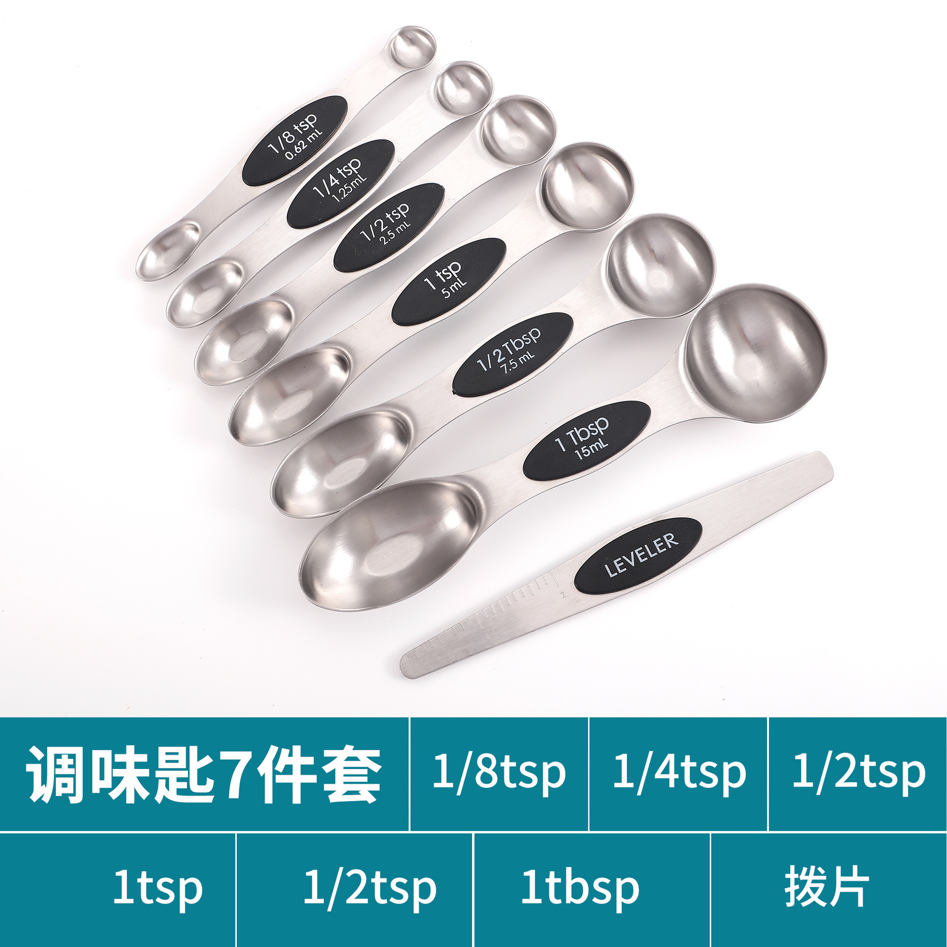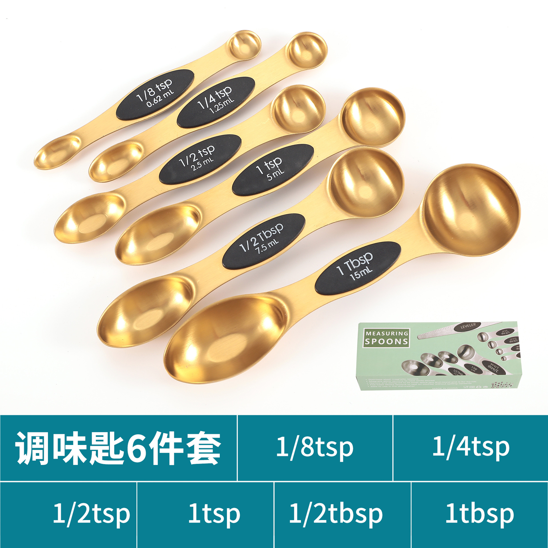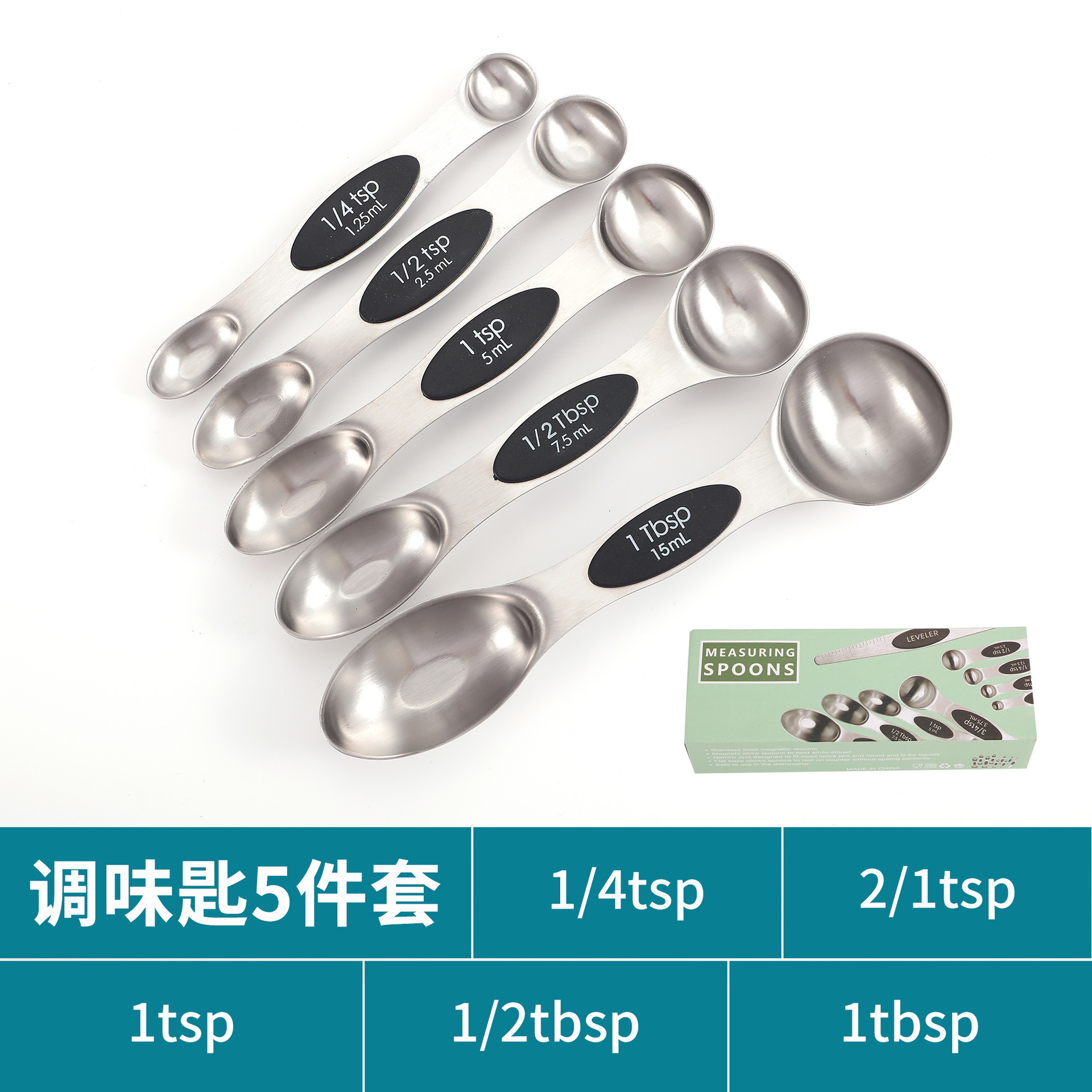 공장 재고 마그네틱 더블 헤드 측정 스푼 9 피스 세트 아마존 스테인레스 스틸 베이킹 가정용 주방 측정 조미료 스푼스토어 가기