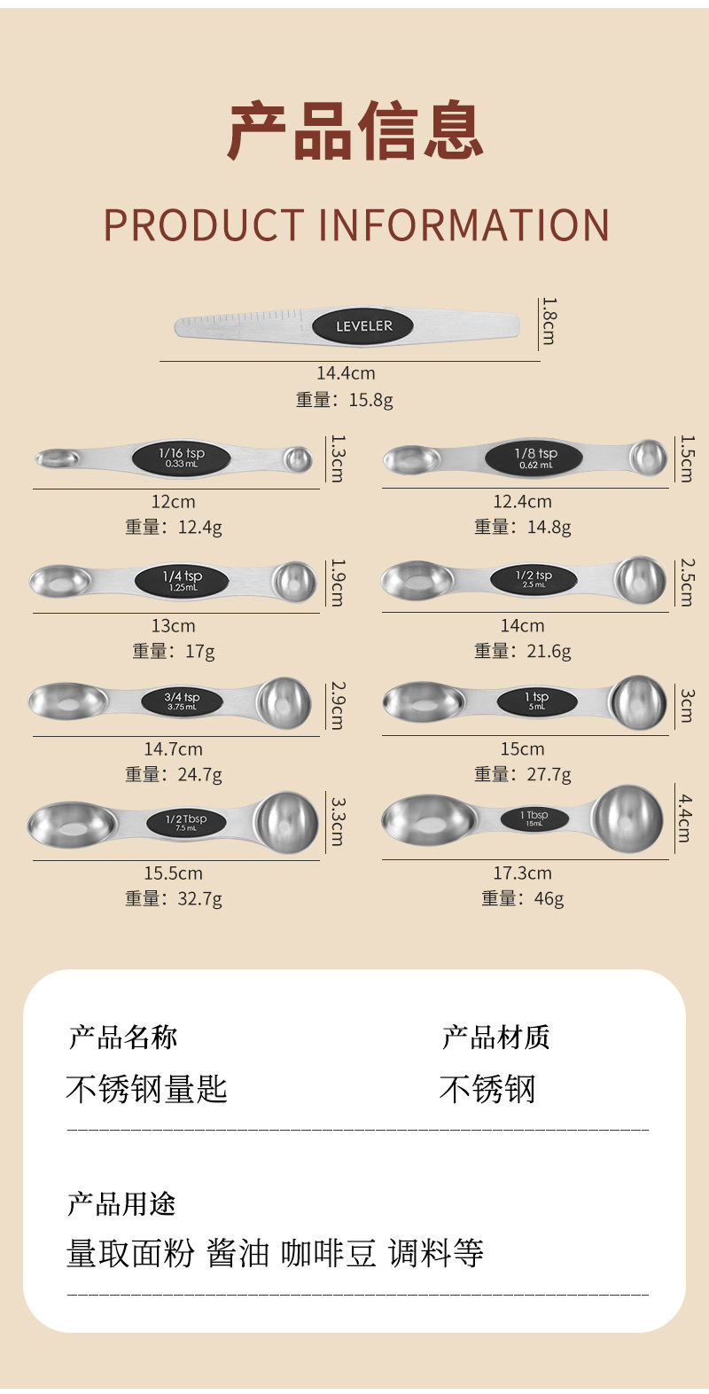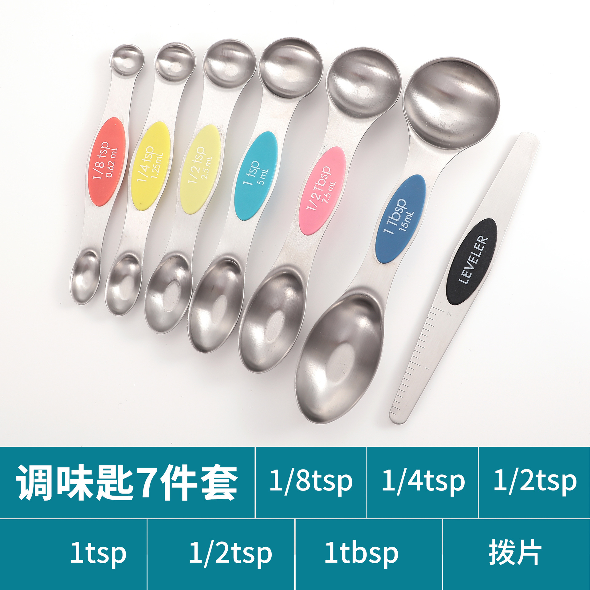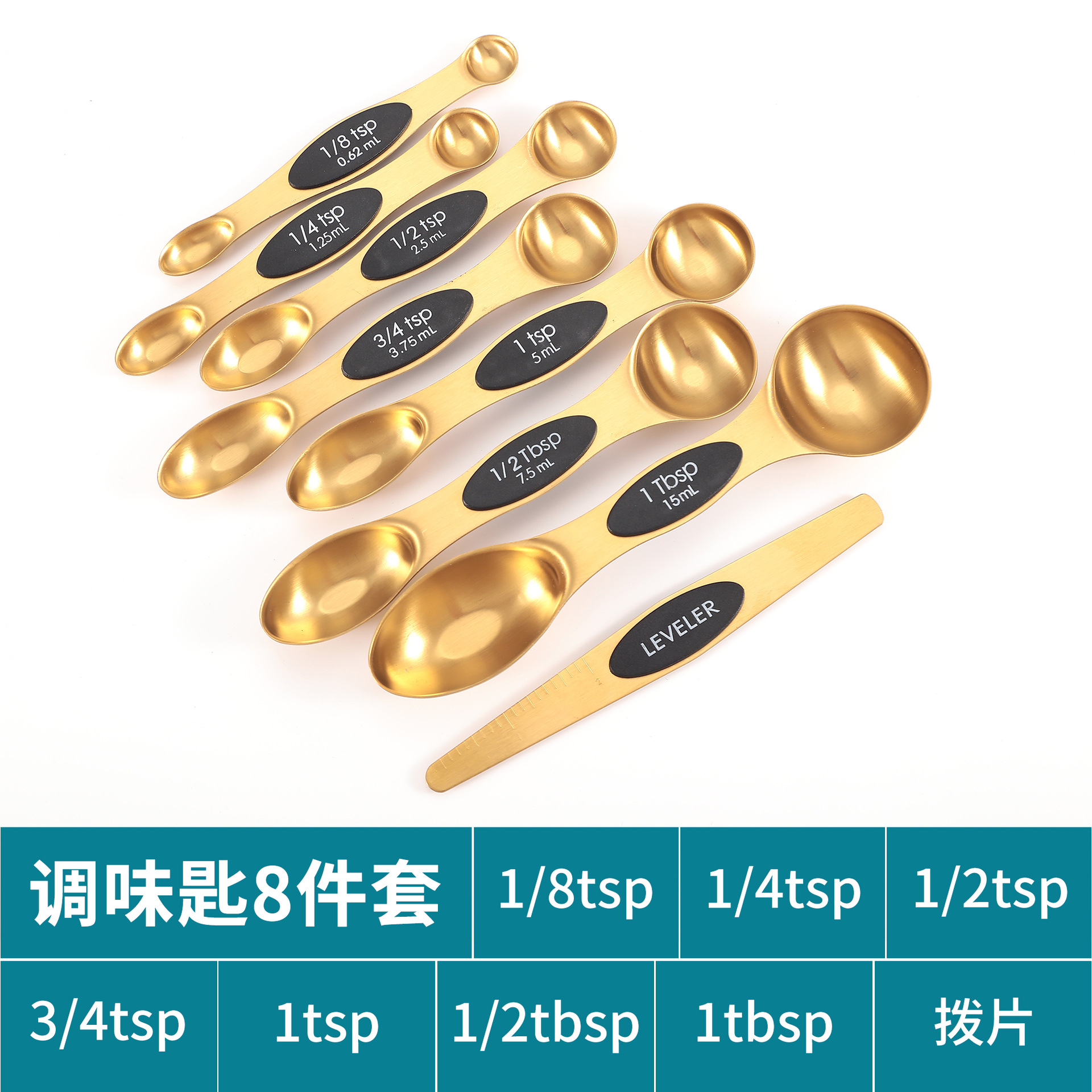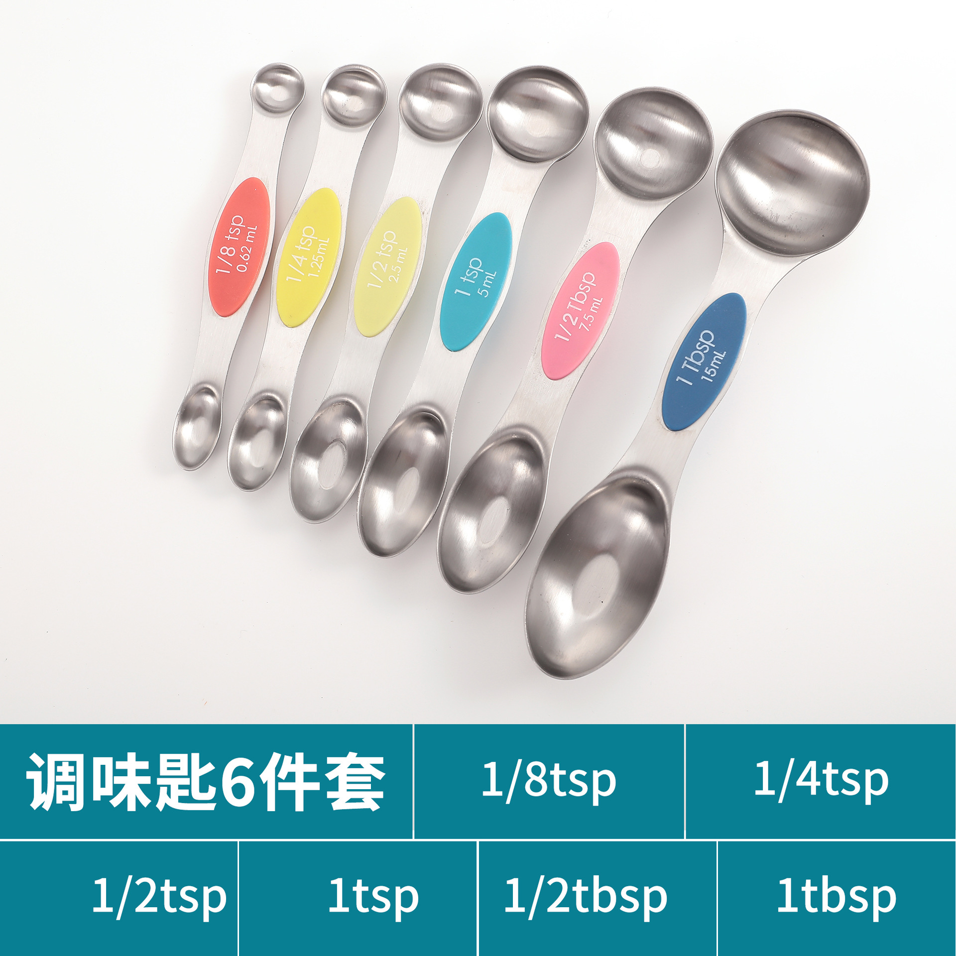 공장 재고 마그네틱 더블 헤드 측정 스푼 9 피스 세트 아마존 스테인레스 스틸 베이킹 가정용 주방 측정 조미료 스푼스토어 가기