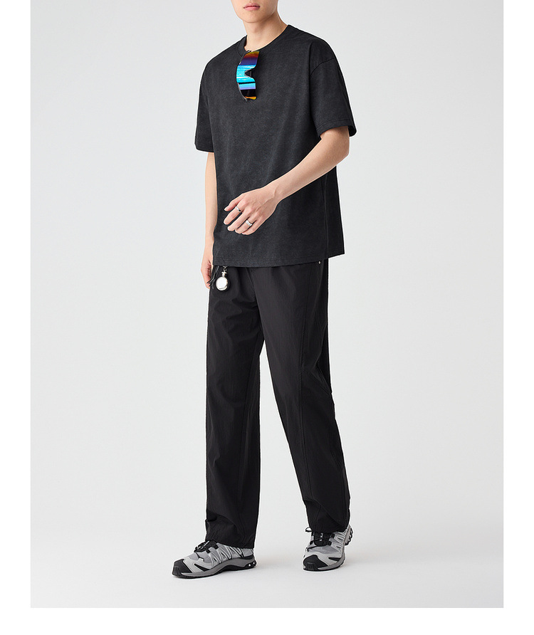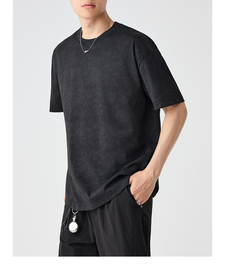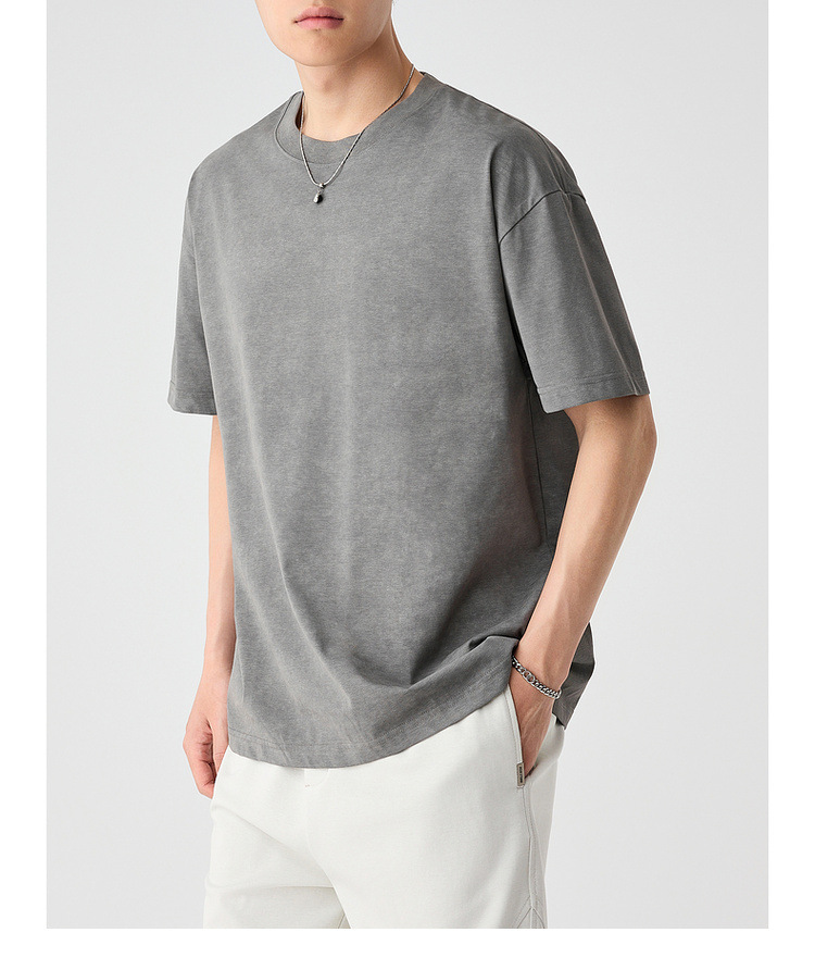 Momo Maike 아메리칸 레트로 워싱 반팔 티셔츠 남성 2025 여름 신작 라운드 넥 루즈 남성 티셔츠 71909.