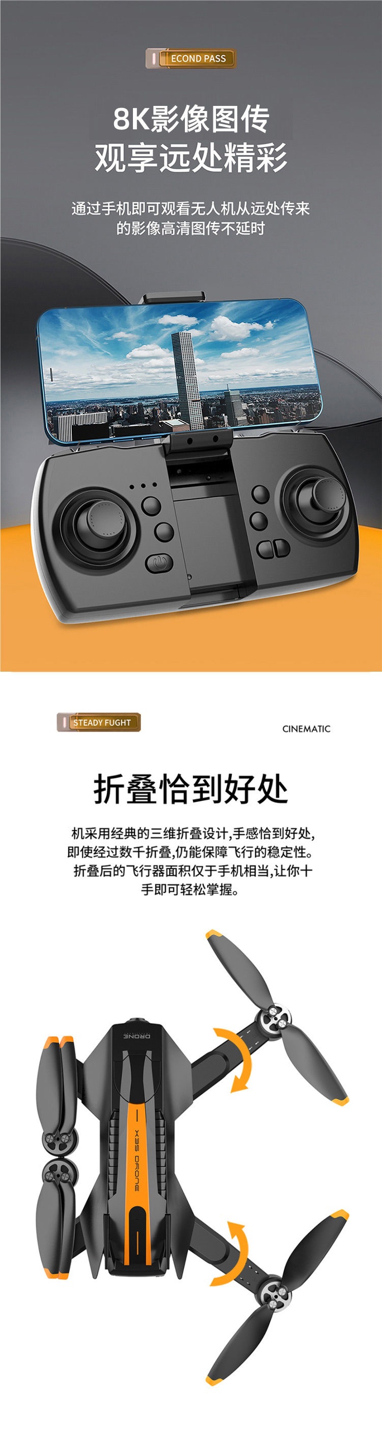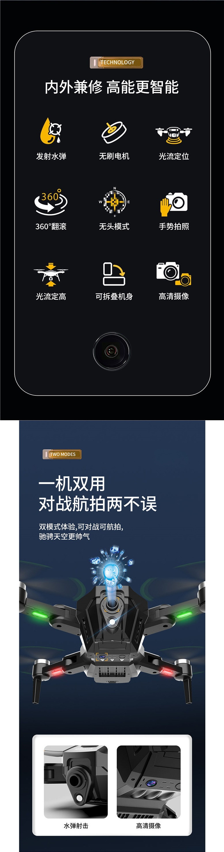 • 맞춤형 주황색 [브러시리스] 물폭탄 발사 + 고정 높이 호버링