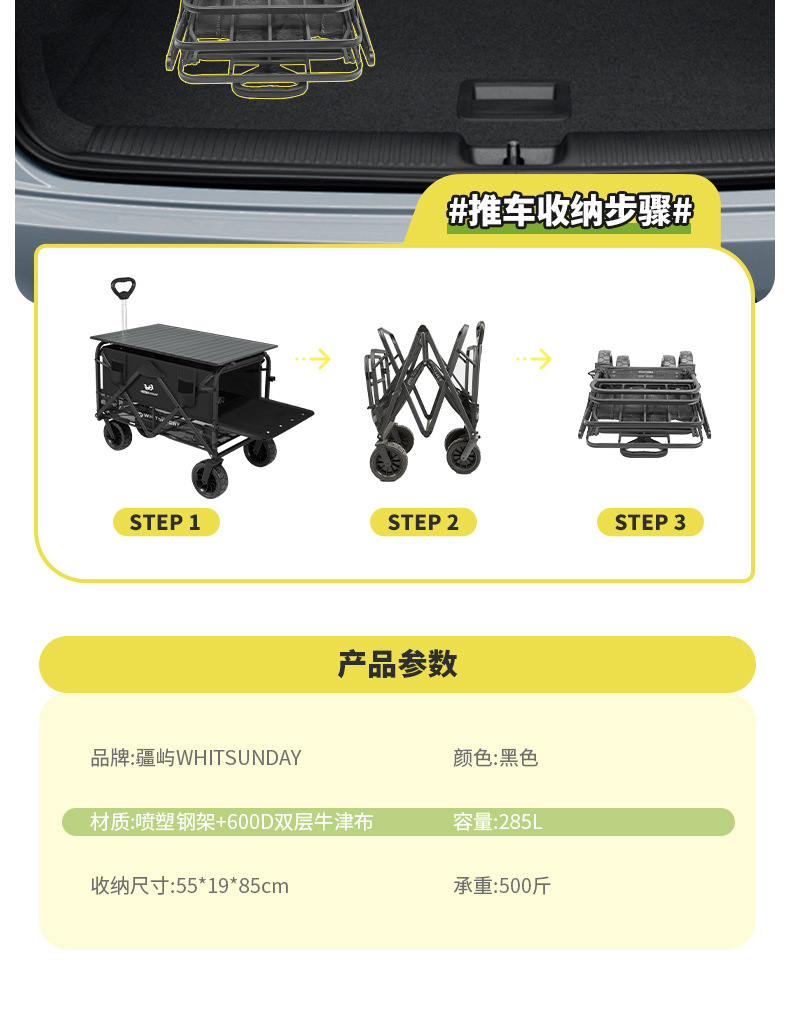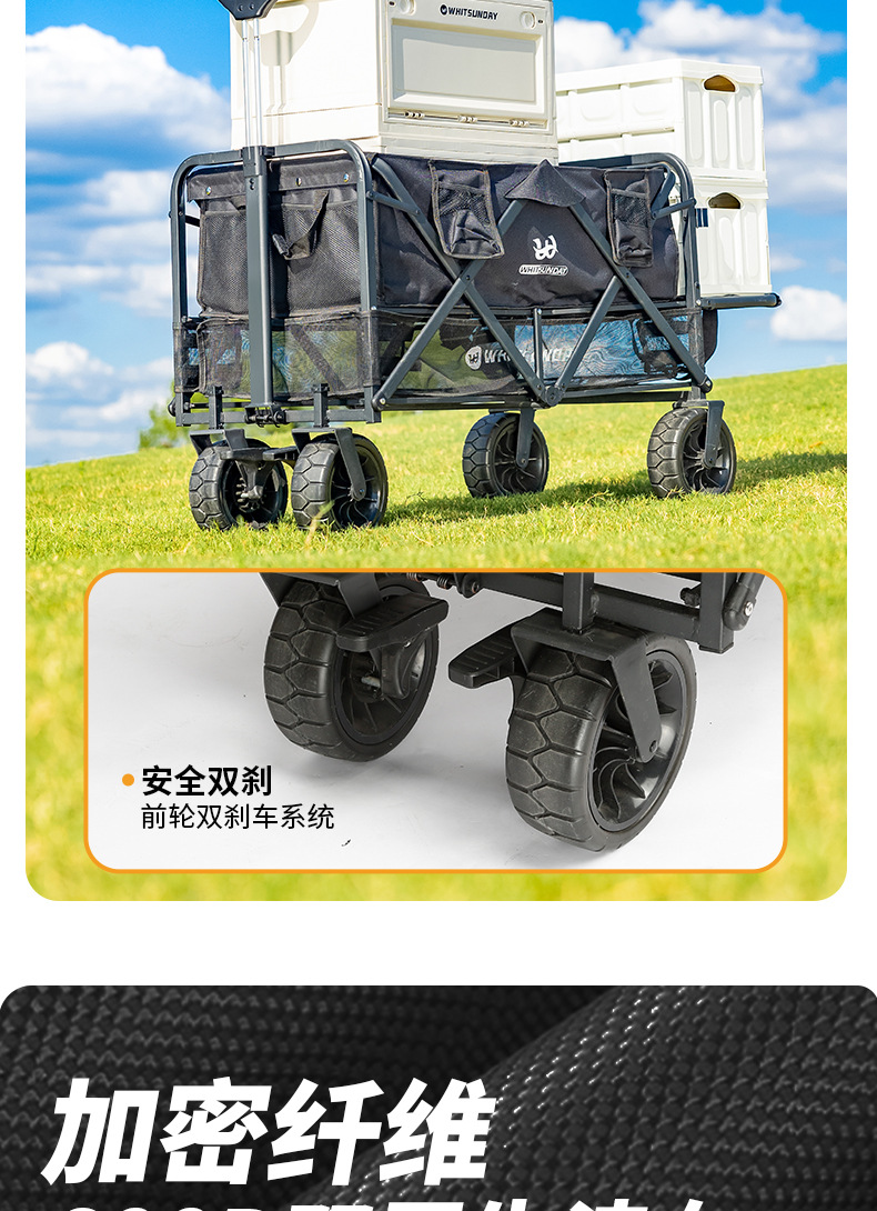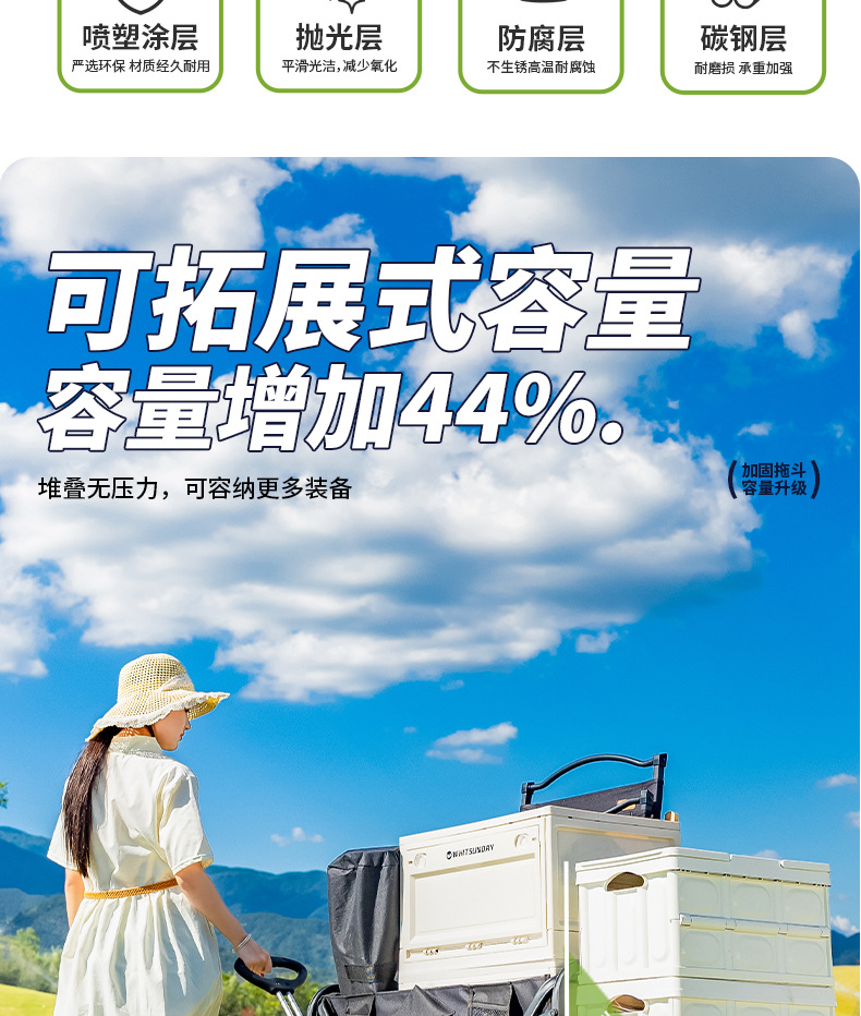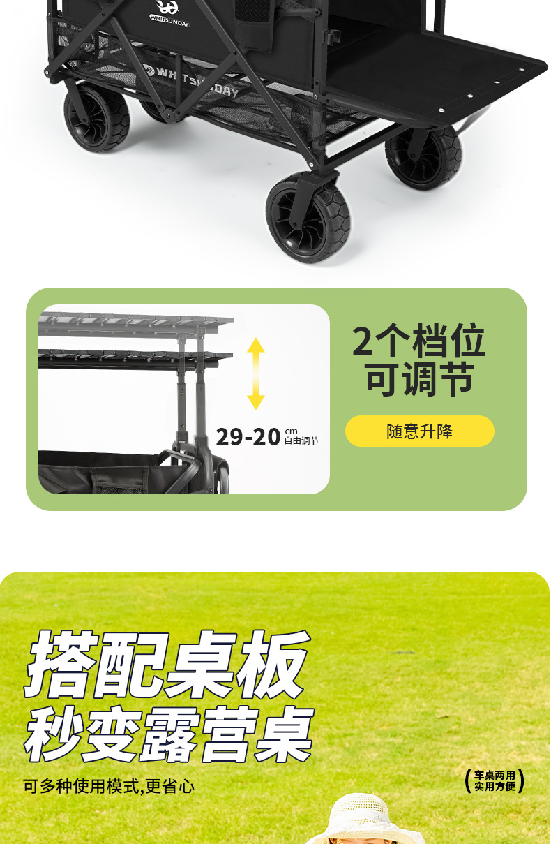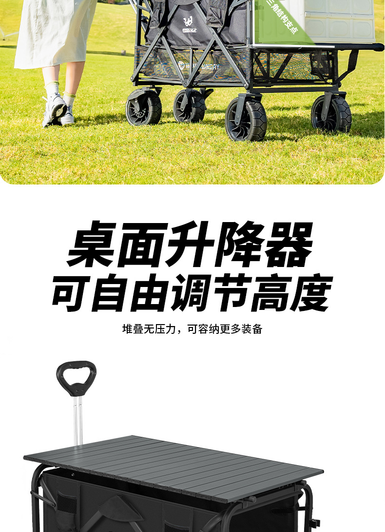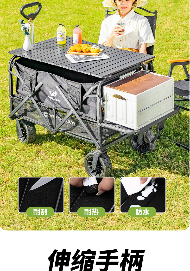 Jiangyu 접이식 스톨 캠핑카 테이블 야외 캠핑 트레일러 더블 레이어 핸드 풀 피크닉 캠핑카 트롤리스토어 가기
