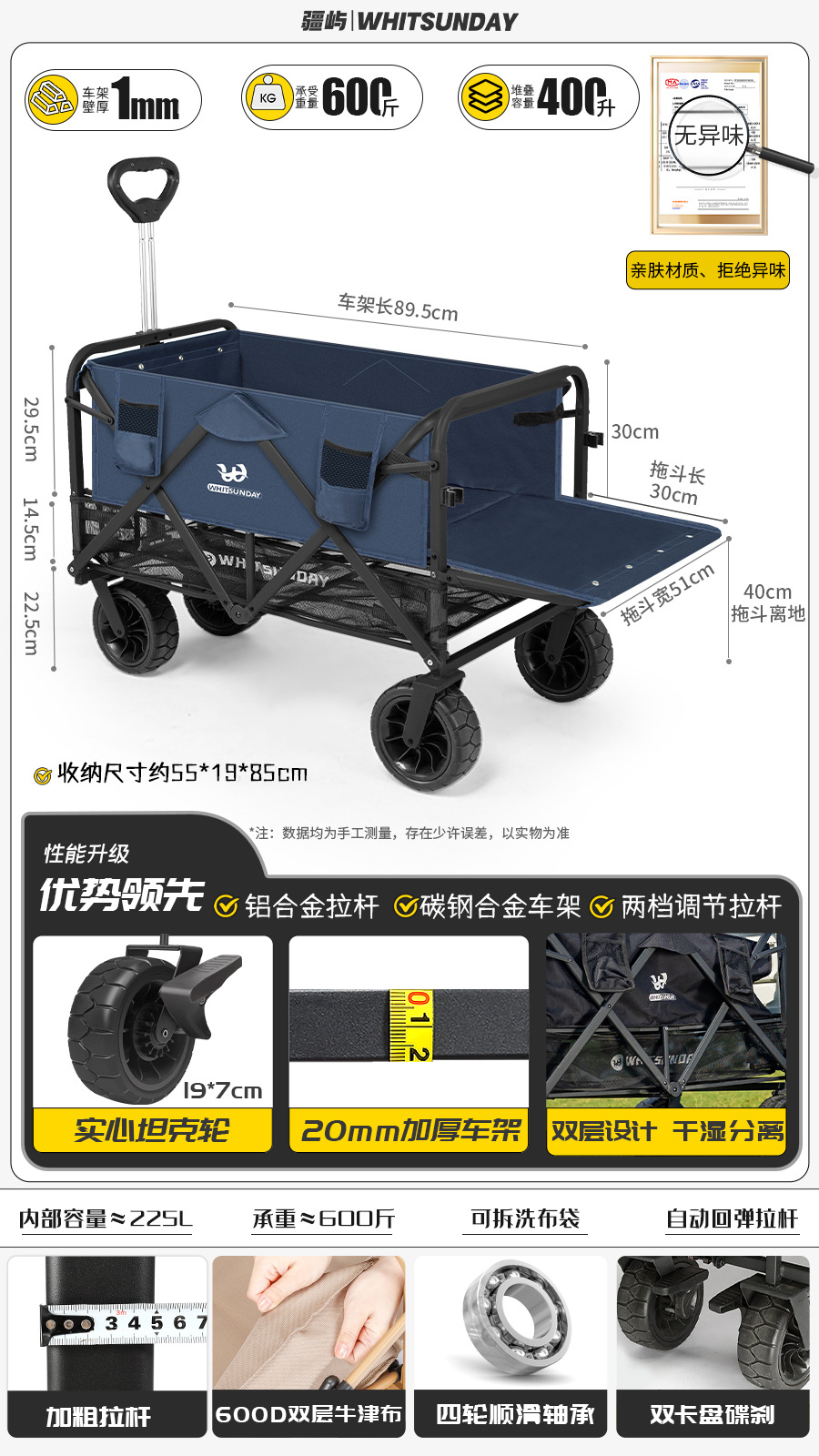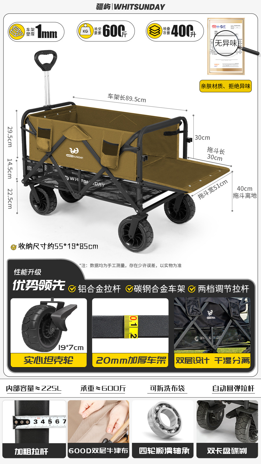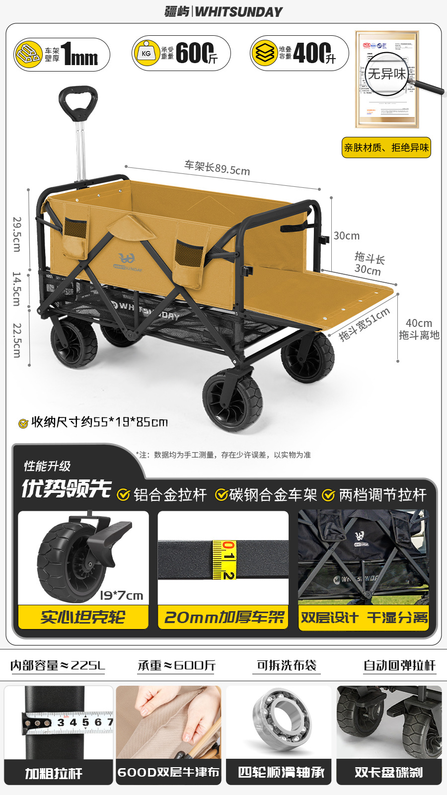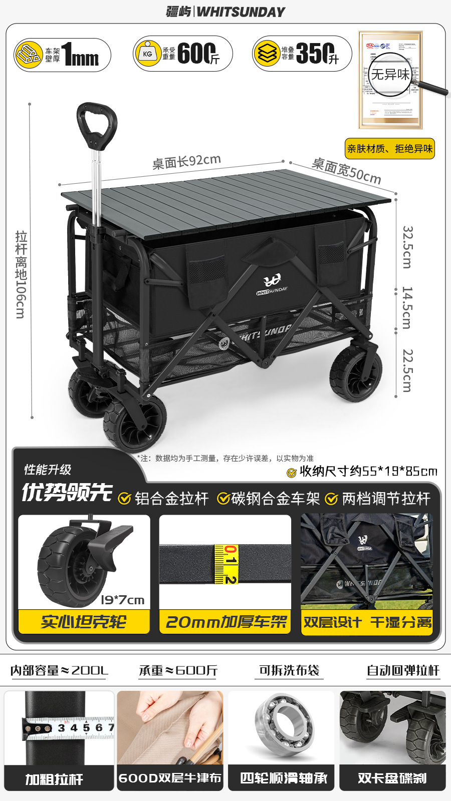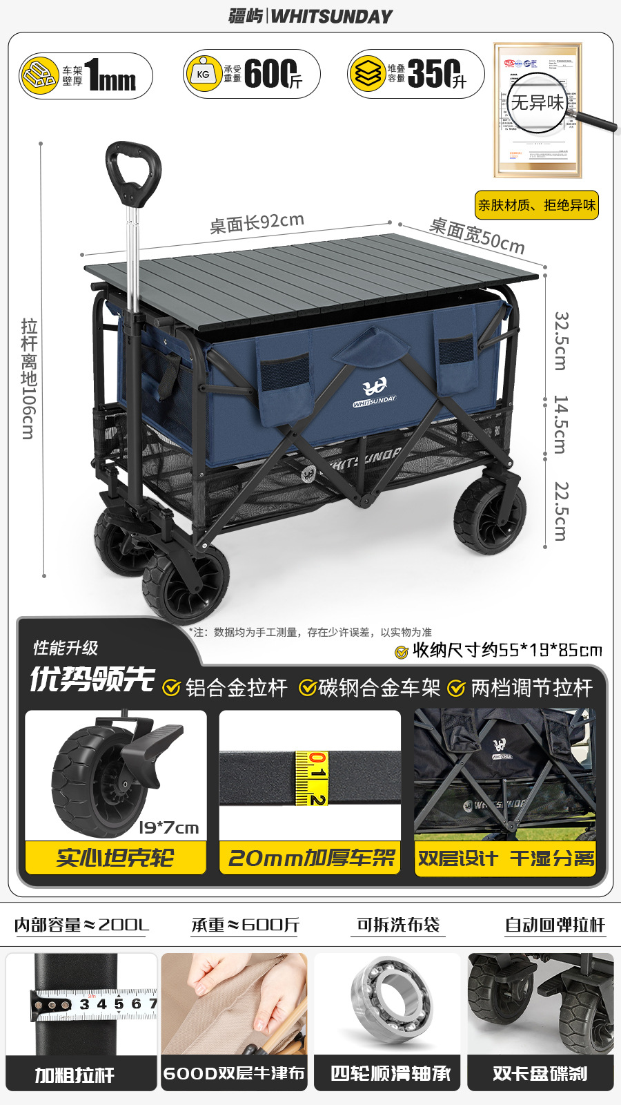 Jiangyu 접이식 스톨 캠핑카 테이블 야외 캠핑 트레일러 더블 레이어 핸드 풀 피크닉 캠핑카 트롤리스토어 가기