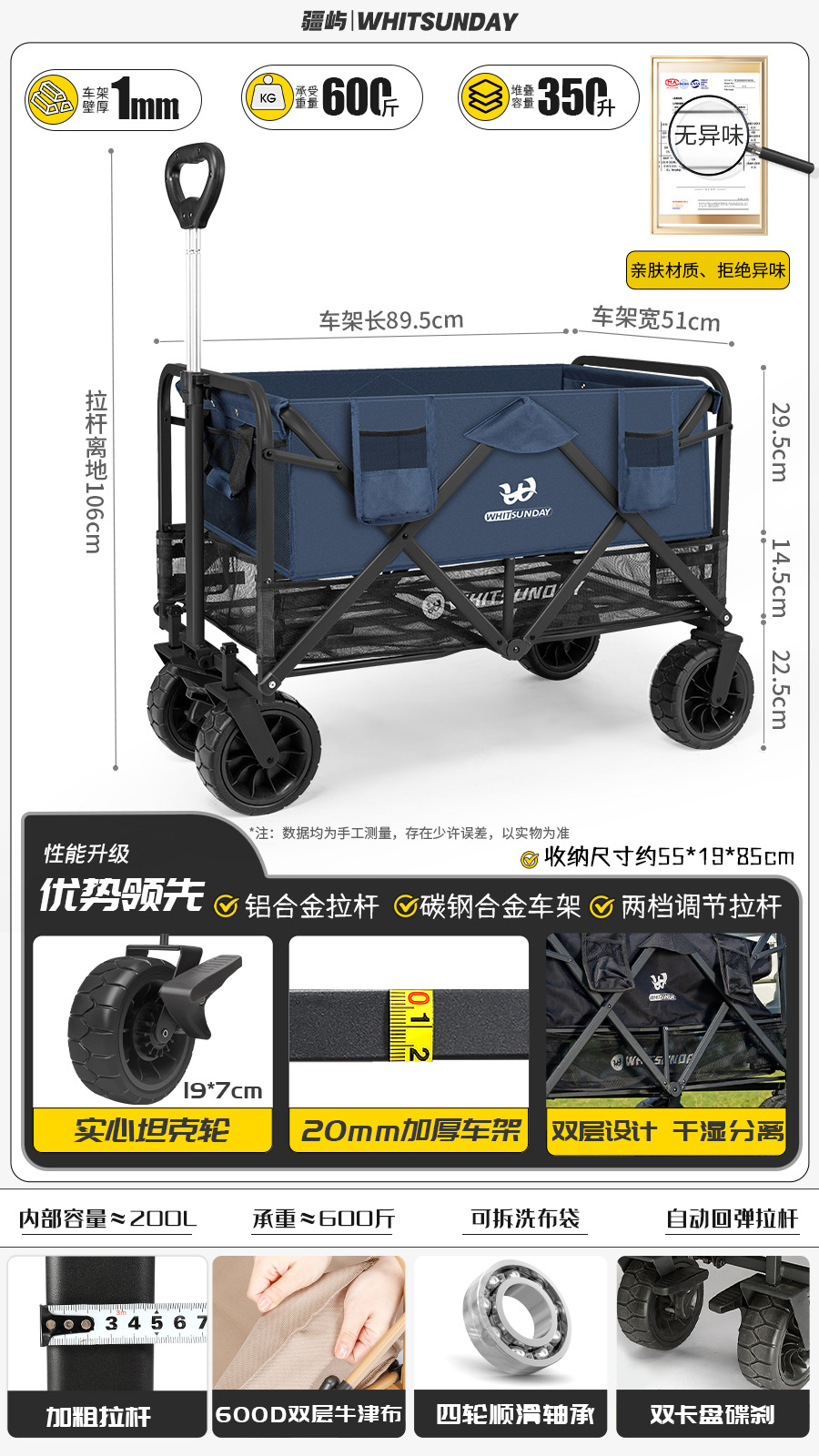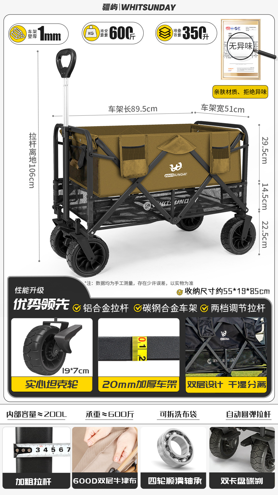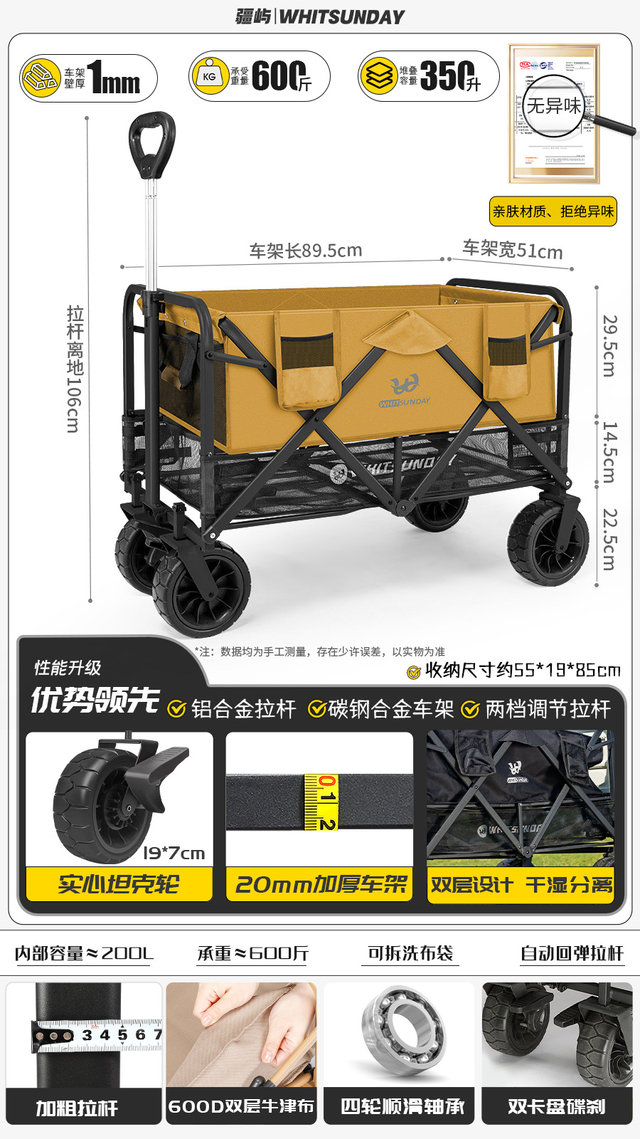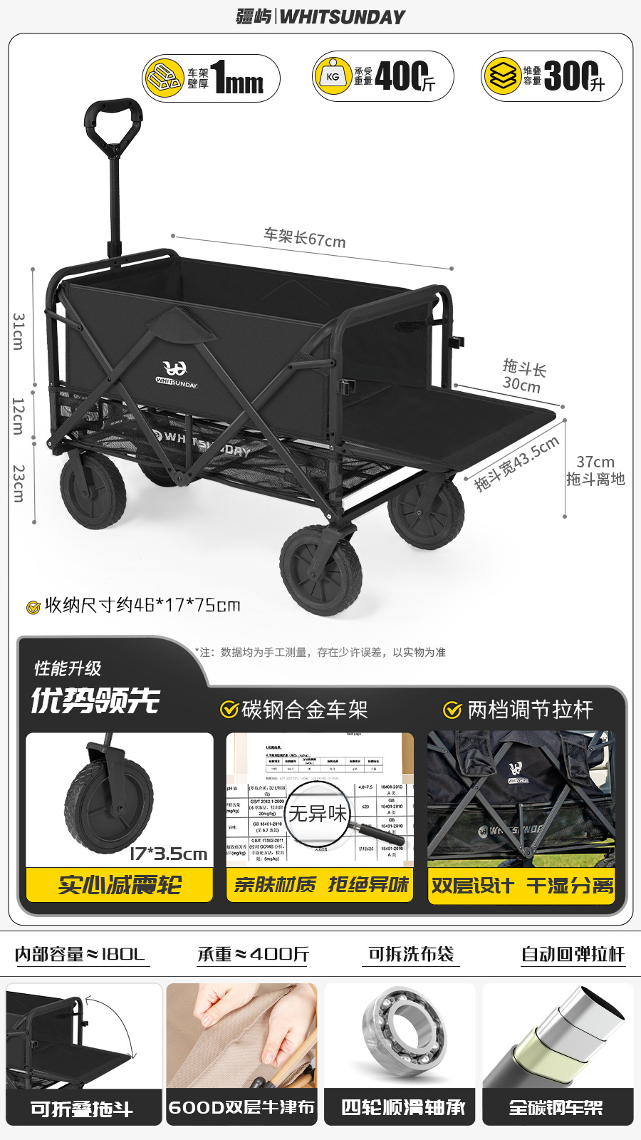 Jiangyu 접이식 스톨 캠핑카 테이블 야외 캠핑 트레일러 더블 레이어 핸드 풀 피크닉 캠핑카 트롤리스토어 가기