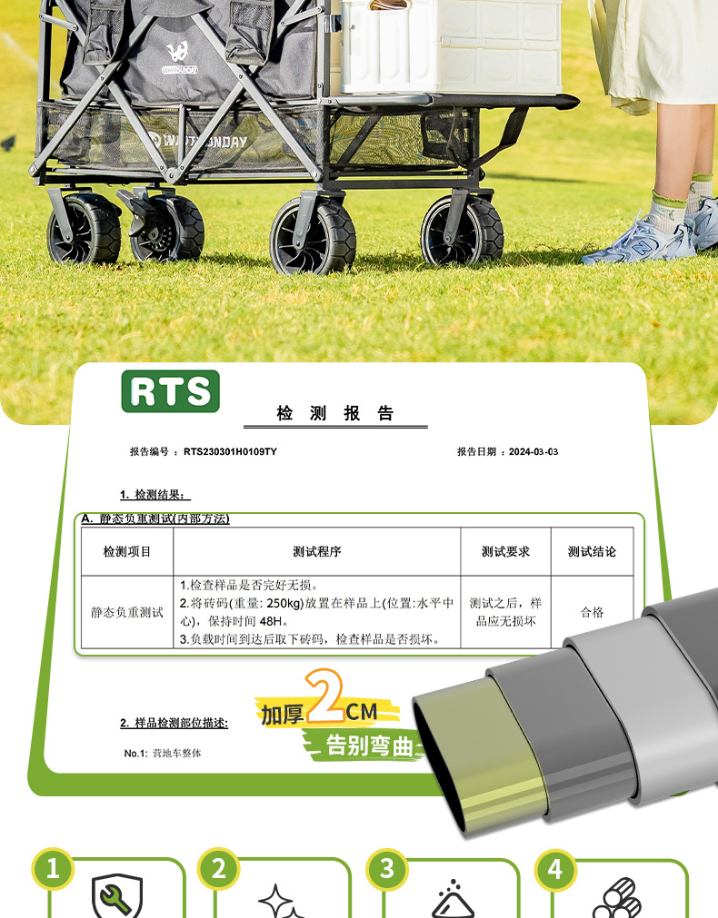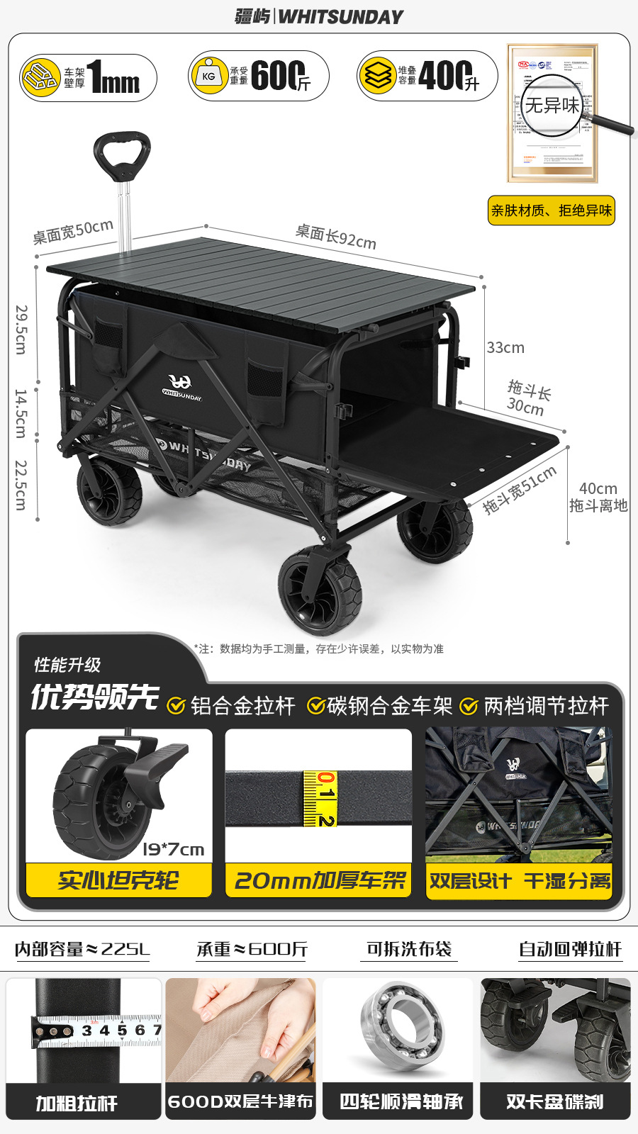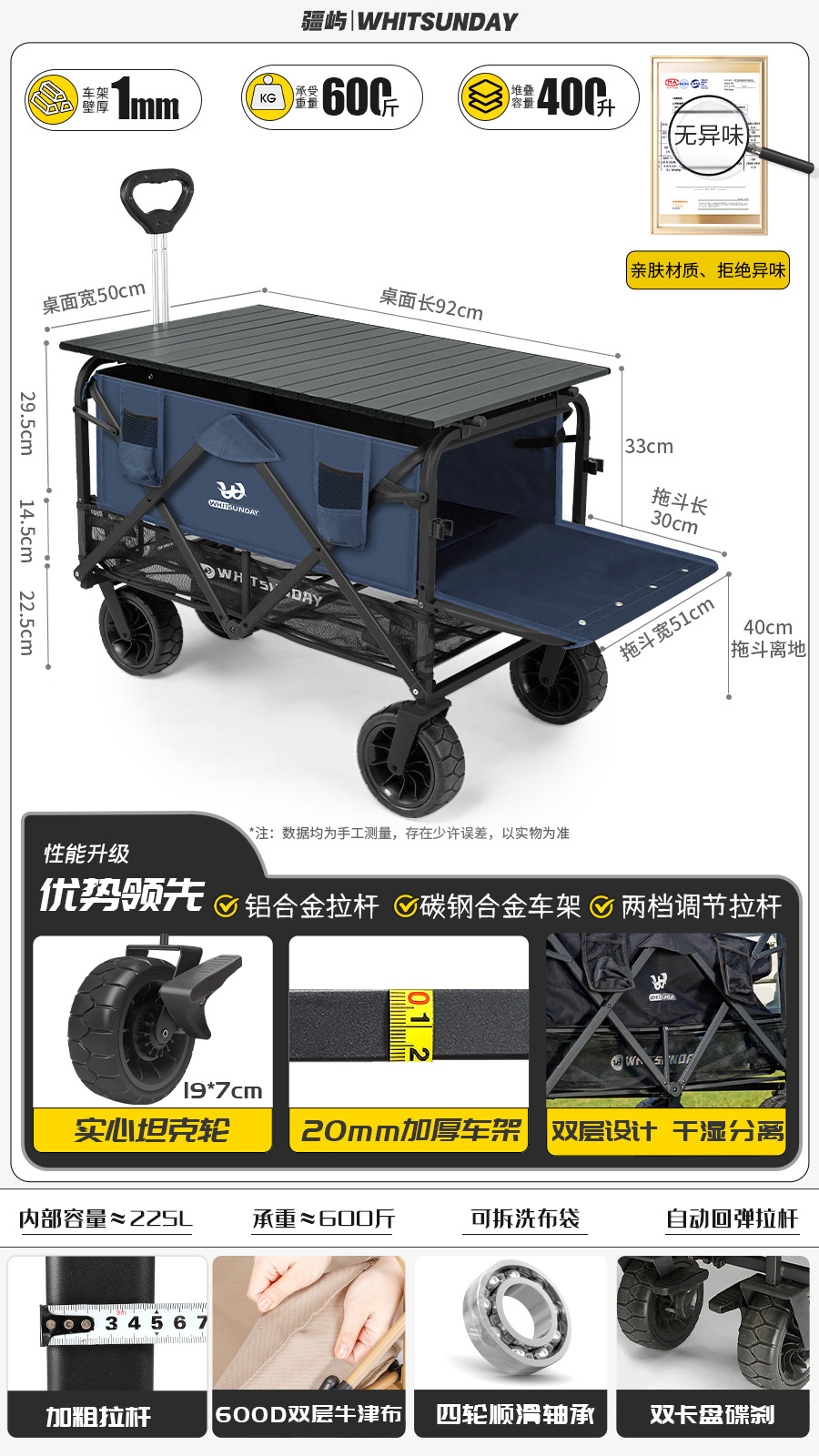 Jiangyu 접이식 스톨 캠핑카 테이블 야외 캠핑 트레일러 더블 레이어 핸드 풀 피크닉 캠핑카 트롤리