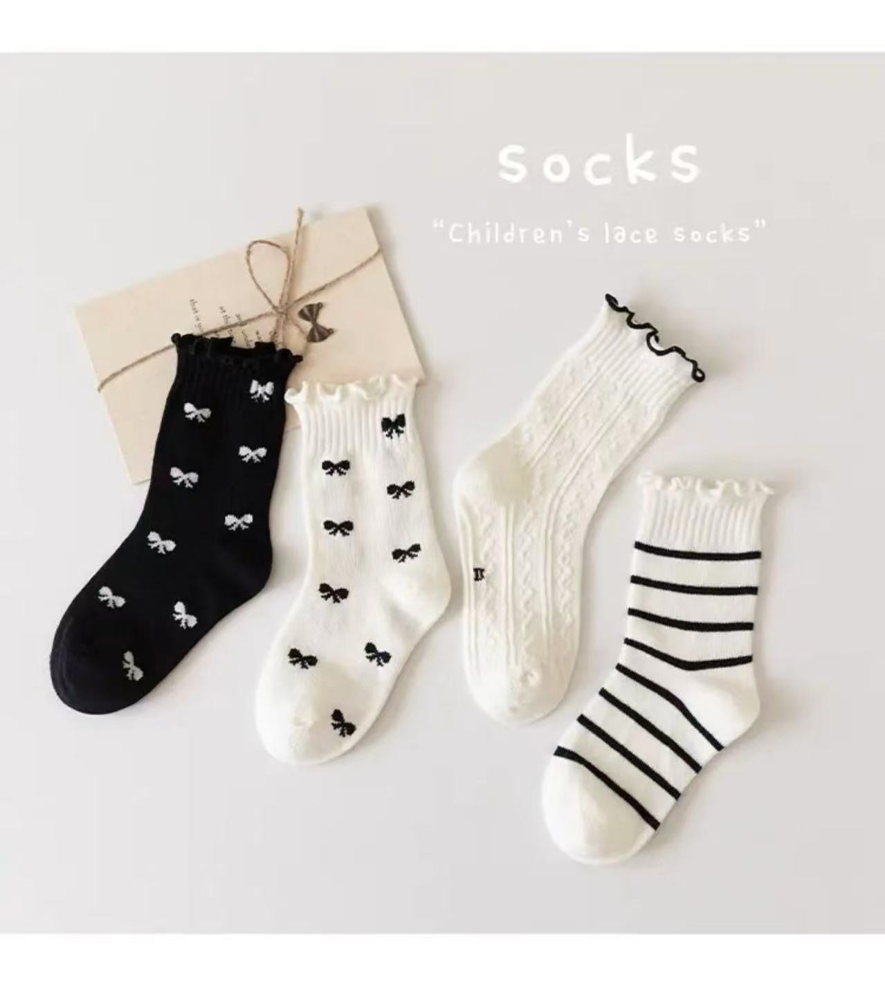 여아 양말 봄 가을 얇은 레이스 중간 길이 양말 어린이 양말 통기성 리본 화이트 공주 양말