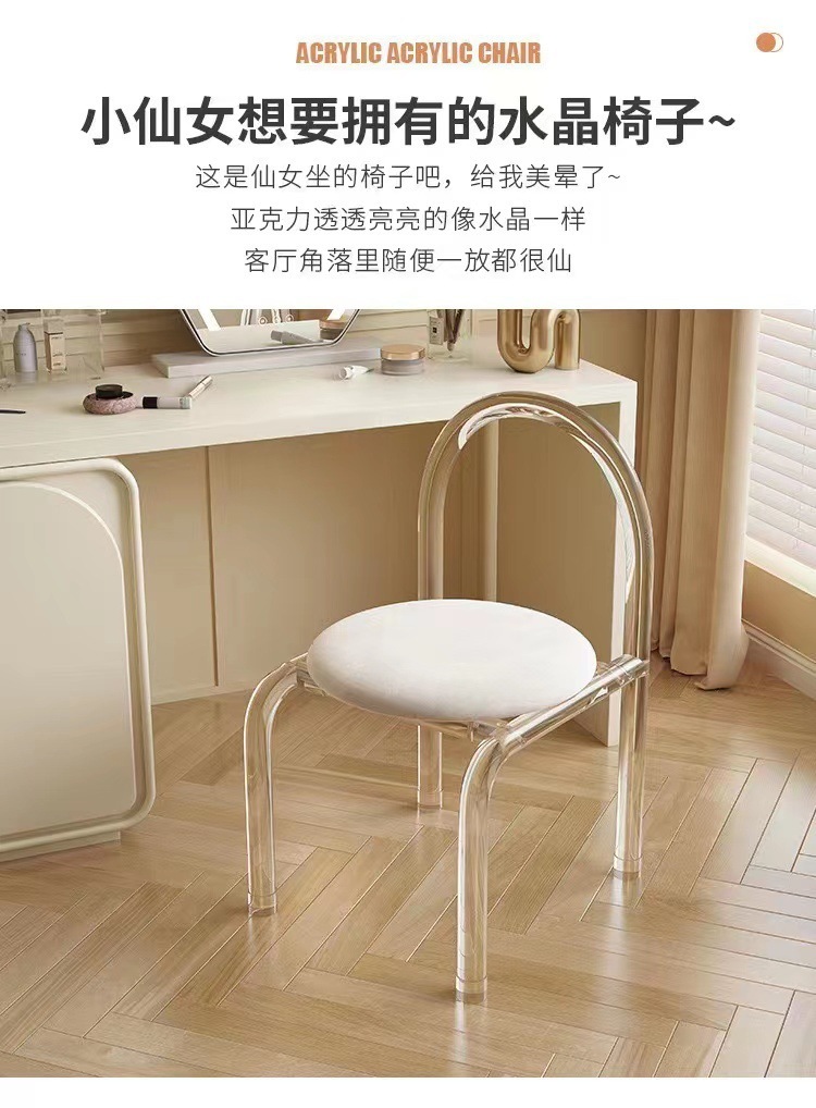 인터넷 연예인 화장대 메이크업 의자 아크릴 투명 의자 침실 발코니 요정 의자 Xiaohongshu 추천 식당 의자스토어 가기