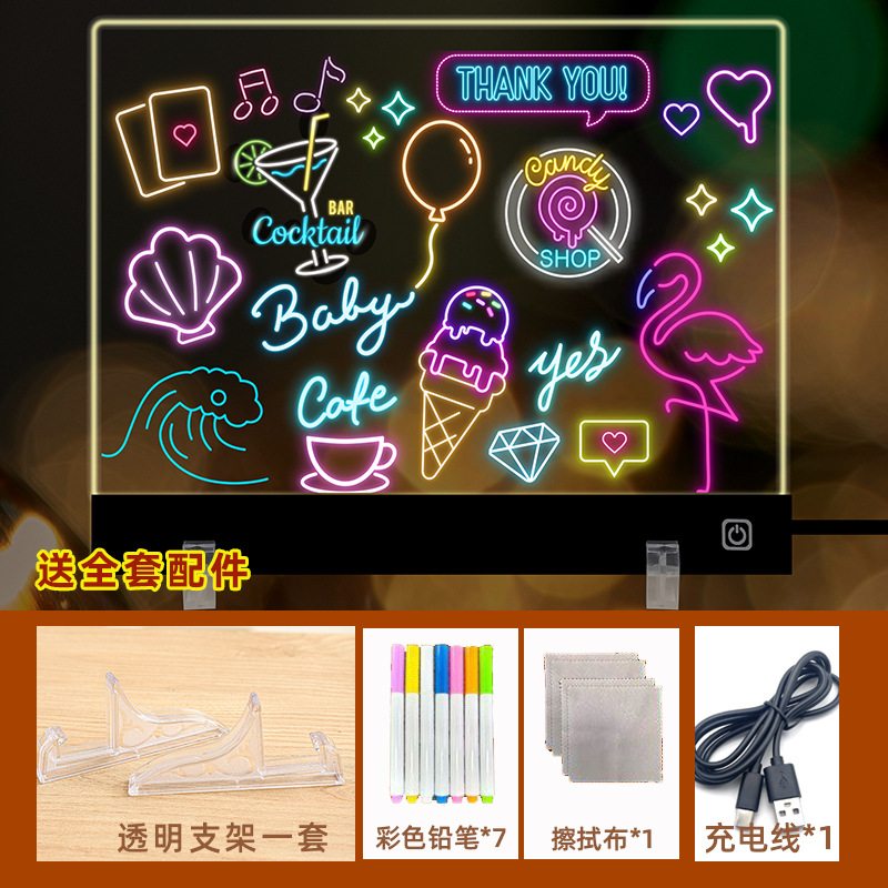 어린이 DIY 발광 드로잉 보드 아크릴 투명 쓰기 보드 메시지 보드는 발광 그림 쓰기 스톨 디스플레이 가능